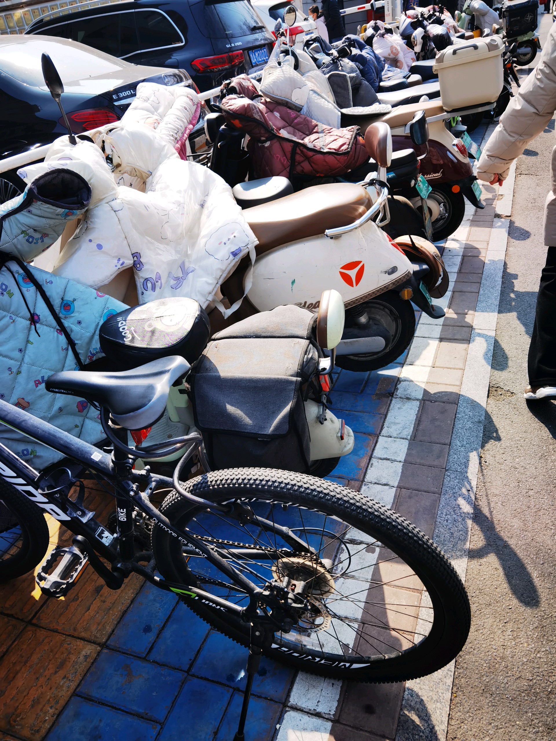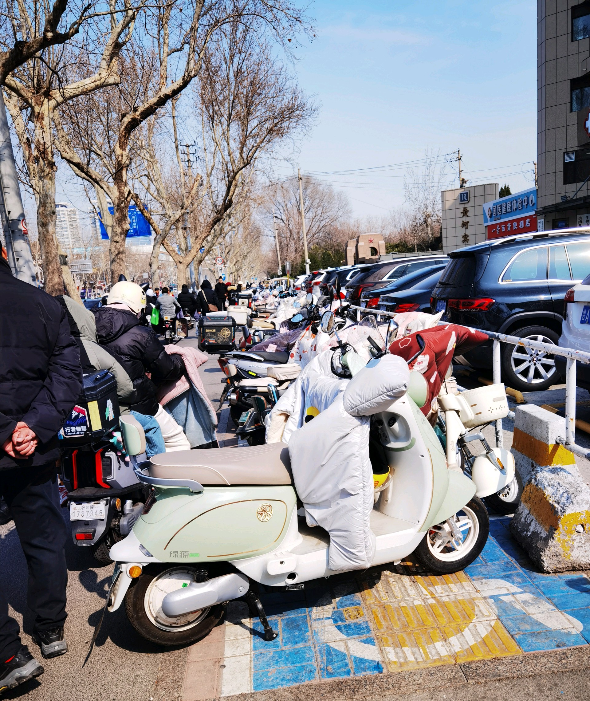 #共创美好随手拍#济南这里人行道、盲道停满各种车辆,阻碍通行盼清理3月8日,在济南市市中区英雄山路黄河宾门口人行道、盲道上,停满电动自行车、自行车等各种车辆,严重阻碍市民通行,导致行人与机动车抢道,险象环生,安全隐患极大,希望有关部门及时处理。