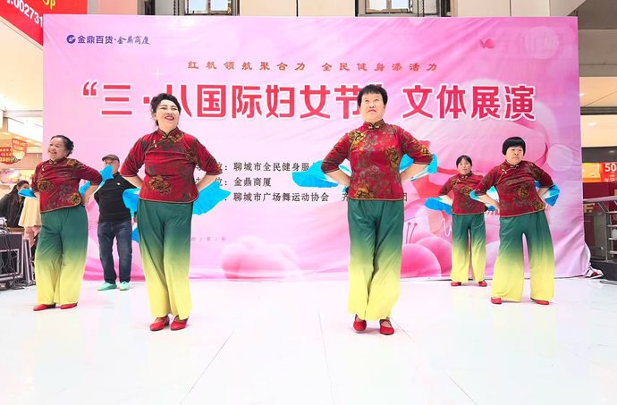 春风送暖,芳华绽放。3月8日,聊城市广场舞协会庆祝“三八”国际妇女节文艺展演活动在聊城金鼎购物中心广场精彩上演。来自全市各广场舞队伍的文艺爱好者欢聚一堂,以舞蹈、健身操、歌曲等多样形式,献礼第116个“三八”国际妇女节,展现水城女性健康向上、自信昂扬的精神风貌。展演现场气氛热烈、掌声不断。参演队员们身着靓丽整齐的服装,精神饱满、神采飞扬。一支支动感欢快的广场舞轮番登场,舞步轻盈、队形多变,将活力与美感完美融合;节奏明快的健身操刚柔并济,尽显健康活力;悠扬动听的歌曲深情唱响,传递对生活的热爱与对节日的美好祝福。节目内容积极向上、贴近群众,既有传统韵味,又富时代气息,充分展现了聊城妇女群众多姿多彩的文化生活与团结奋进的良好风采。此次展演由聊城市广场舞协会精心组织,为广大女性文艺爱好者搭建了展示自我、交流互动的平台,既丰富了市民精神文化生活,也营造了喜庆祥和、温馨美好的节日氛围。活动以文艺为纽带,凝聚巾帼力量,彰显“她风采”,传递正能量,进一步推动我市群众文化与全民健身事业蓬勃发展。