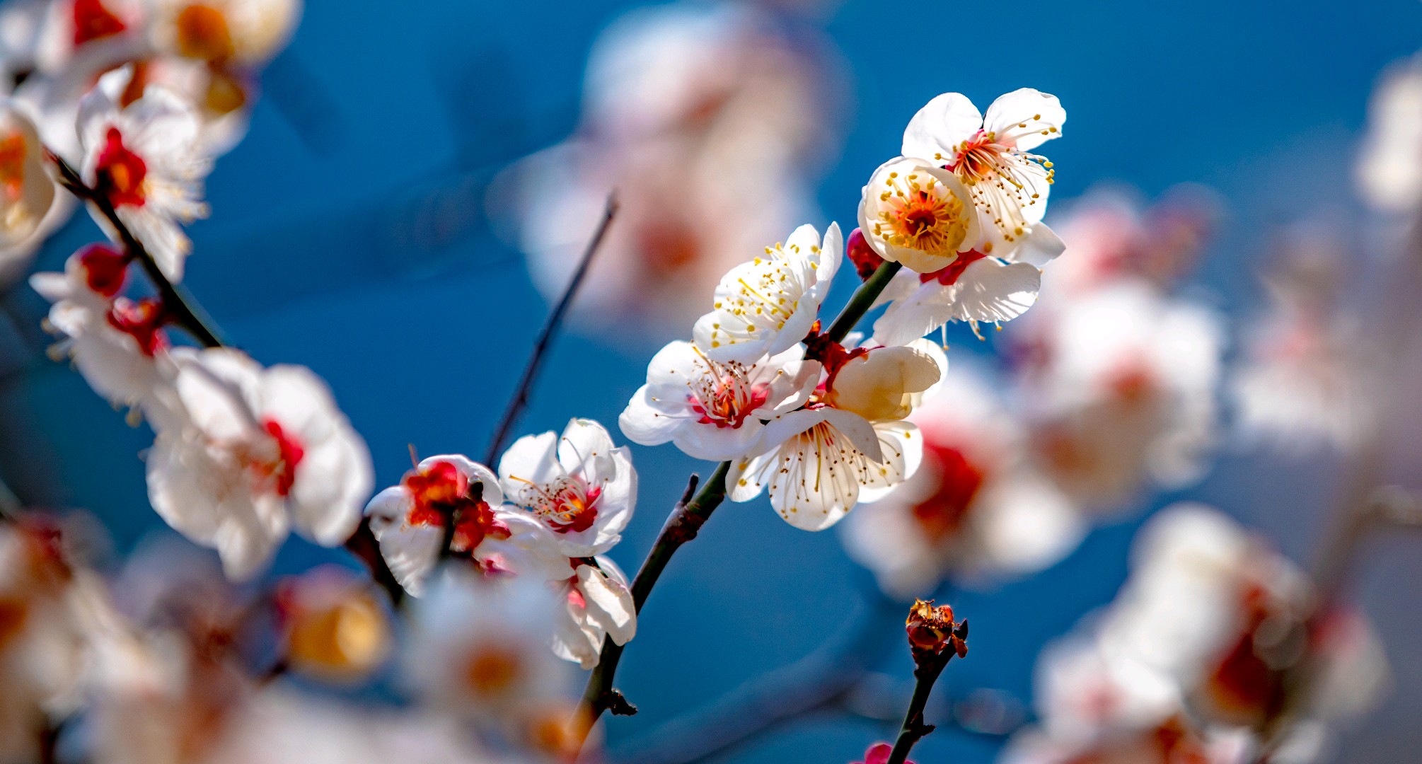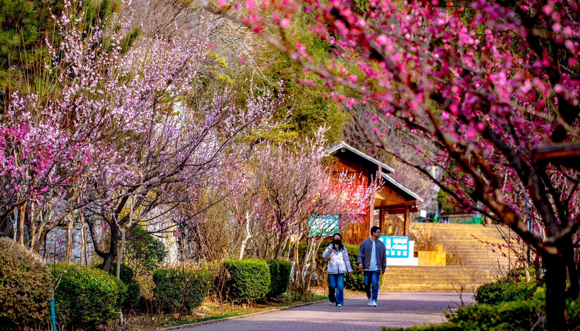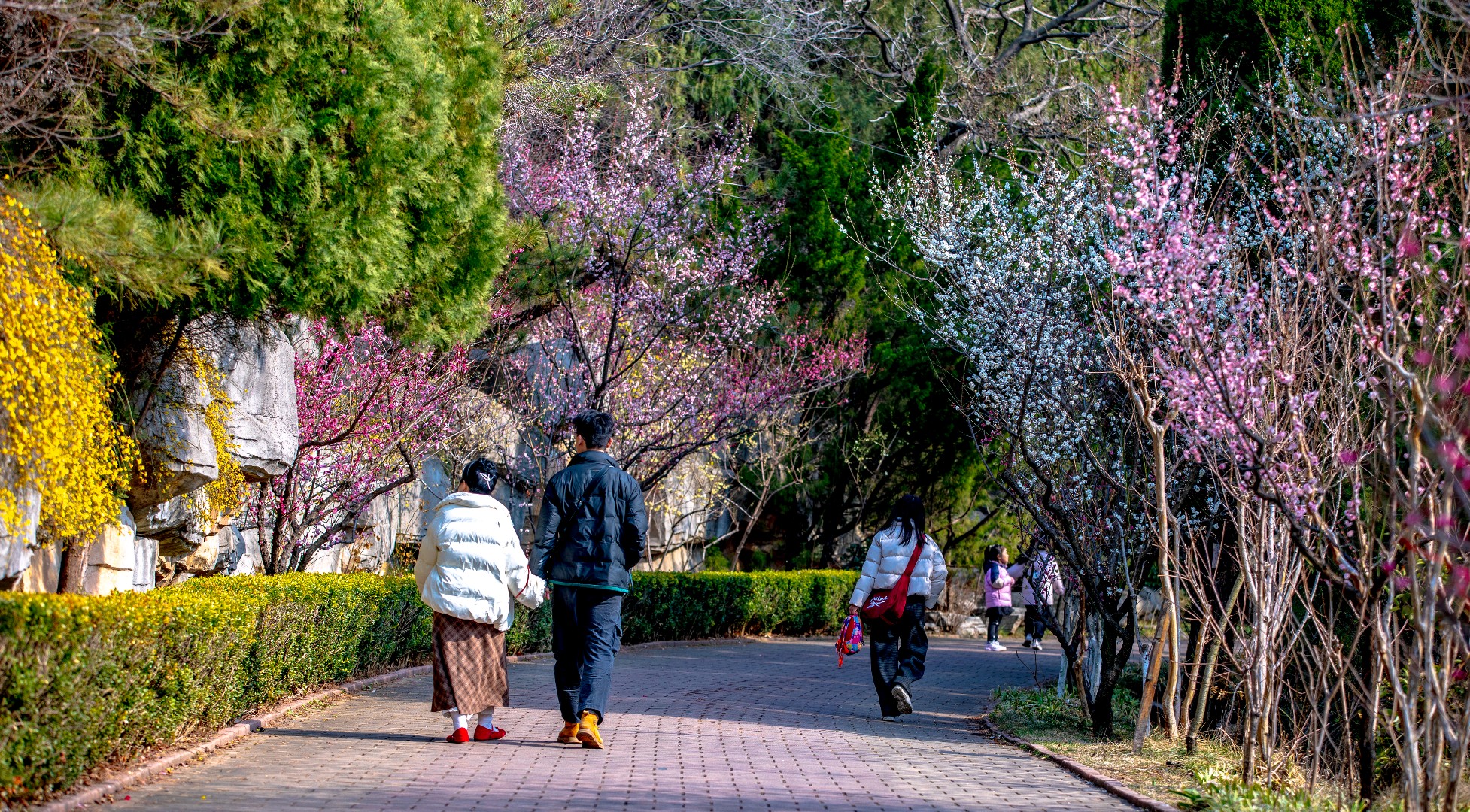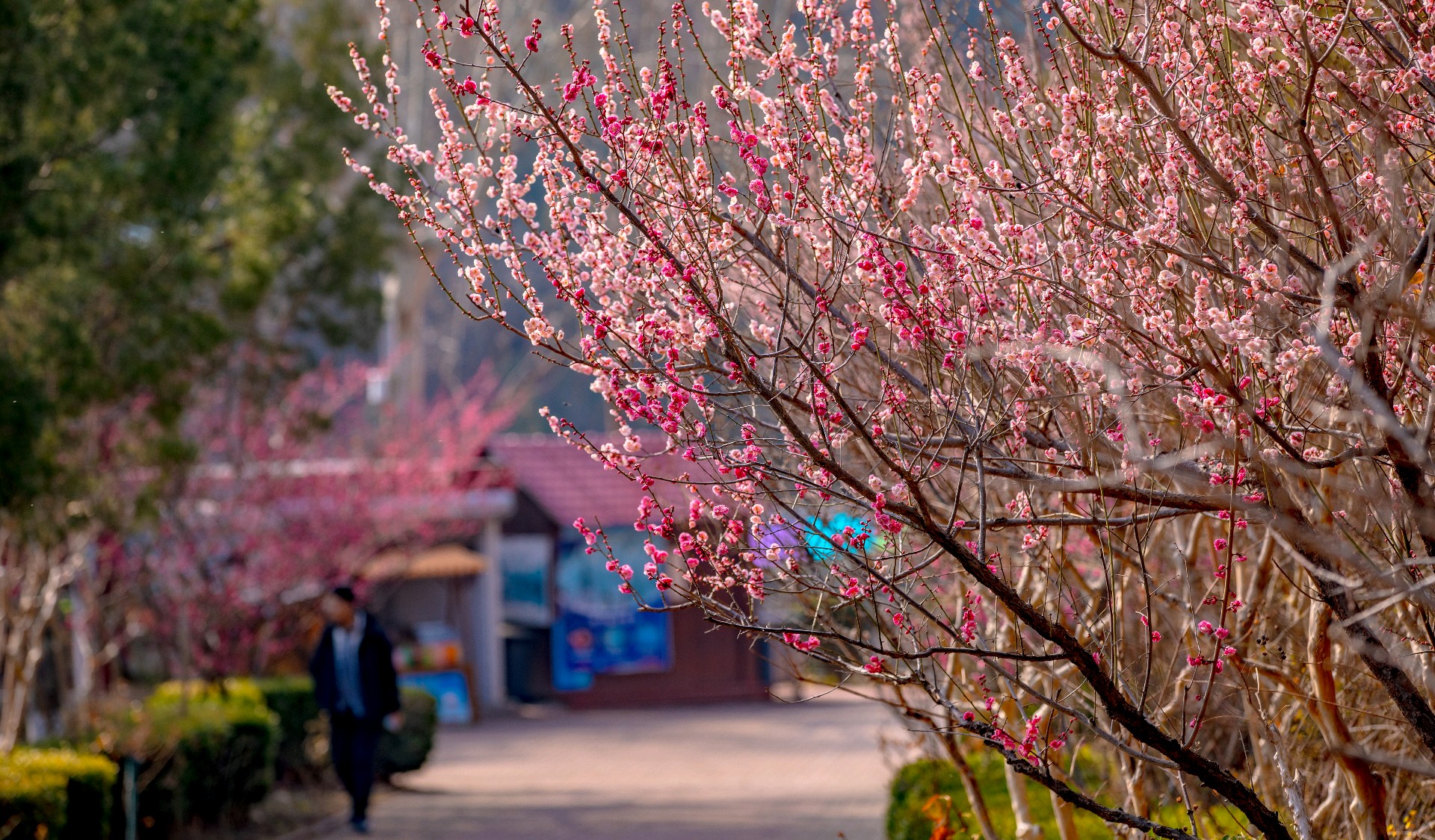 红叶谷梅花节正火热开展,万株梅花漫山绽放,暗香浮动。红梅热烈、宫粉淡雅、白梅清丽、腊梅馨香,各色梅花争奇斗艳,将山谷装点成诗意花海。春风和煦,游人漫步花间,赏梅留影,沉醉在春日限定的烂漫景致中,尽享踏春寻梅的悠然惬意。