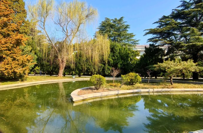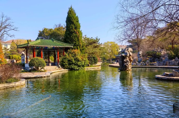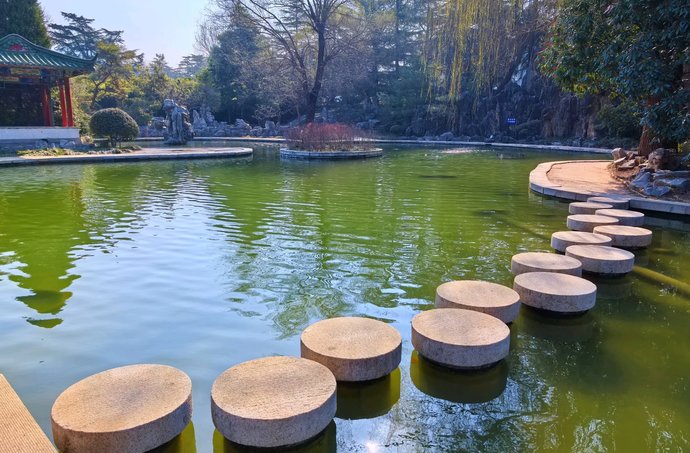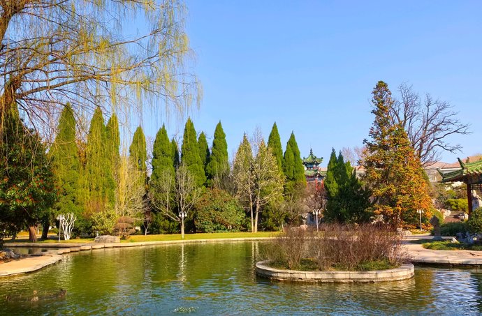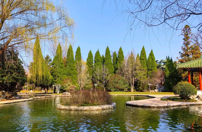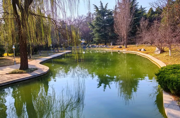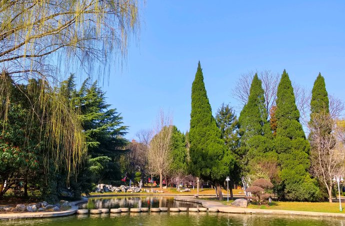 一池碧色,几缕新黄,亭台与山石相映,树影与水波共生,春日的美,是这般清润又鲜活。阳光漫过湖面,把春色揉成碎金;新柳垂丝,在风里轻摇着温柔,这景致,美得让人忘了时光流转。