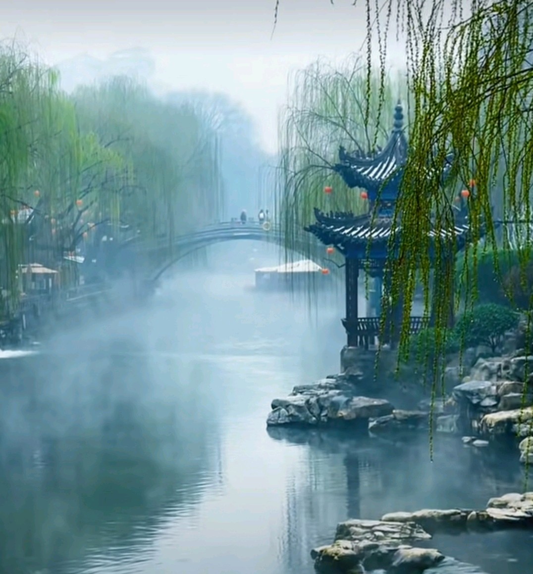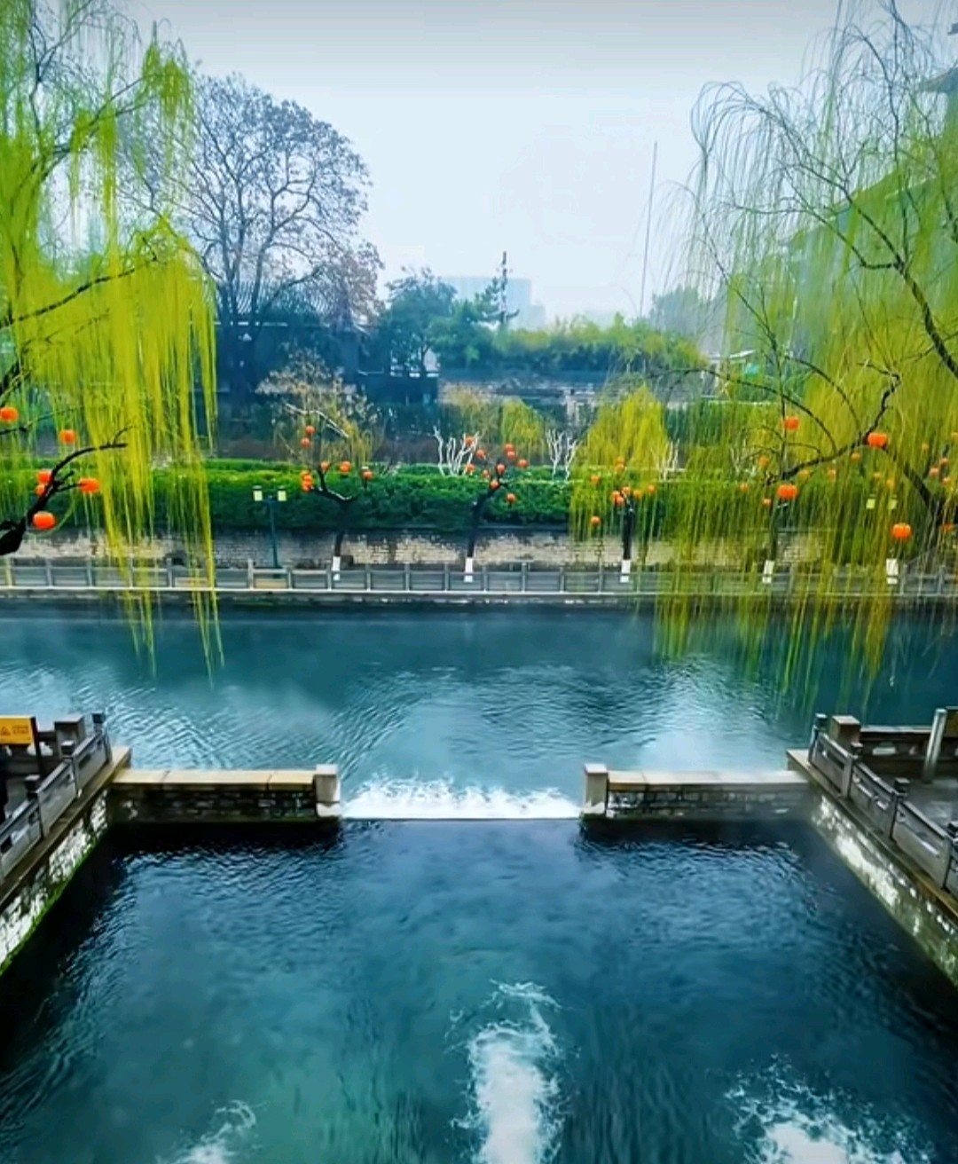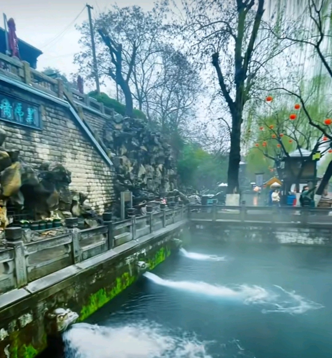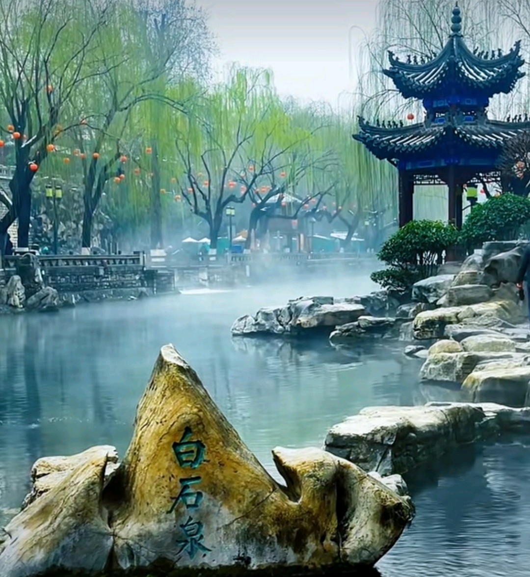 漫步围城河畔,泉水潺潺,雾气缭绕,仿佛置身仙境。