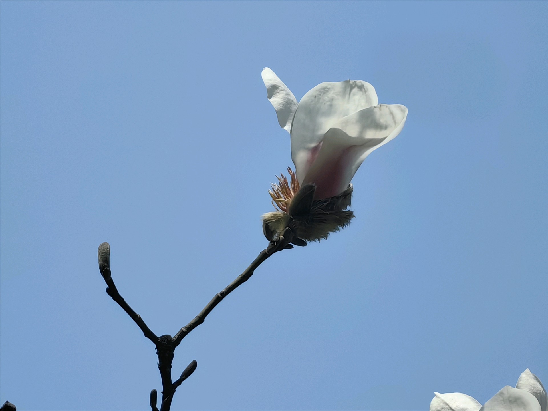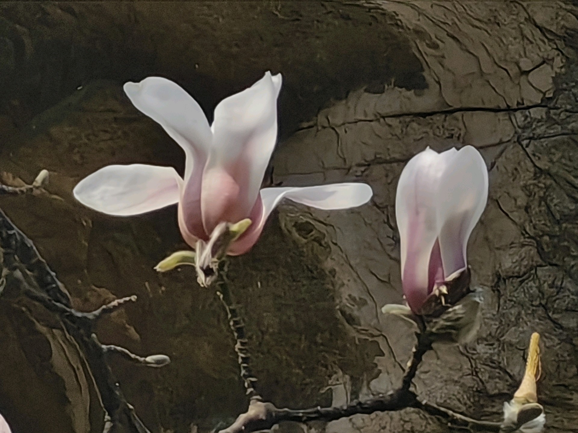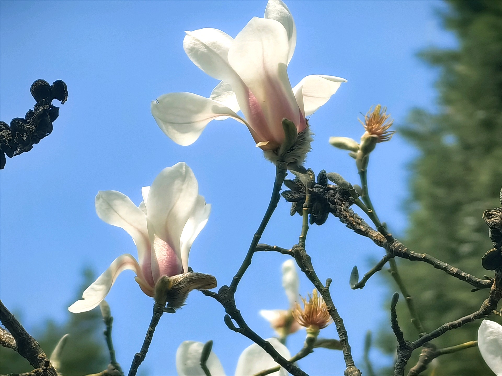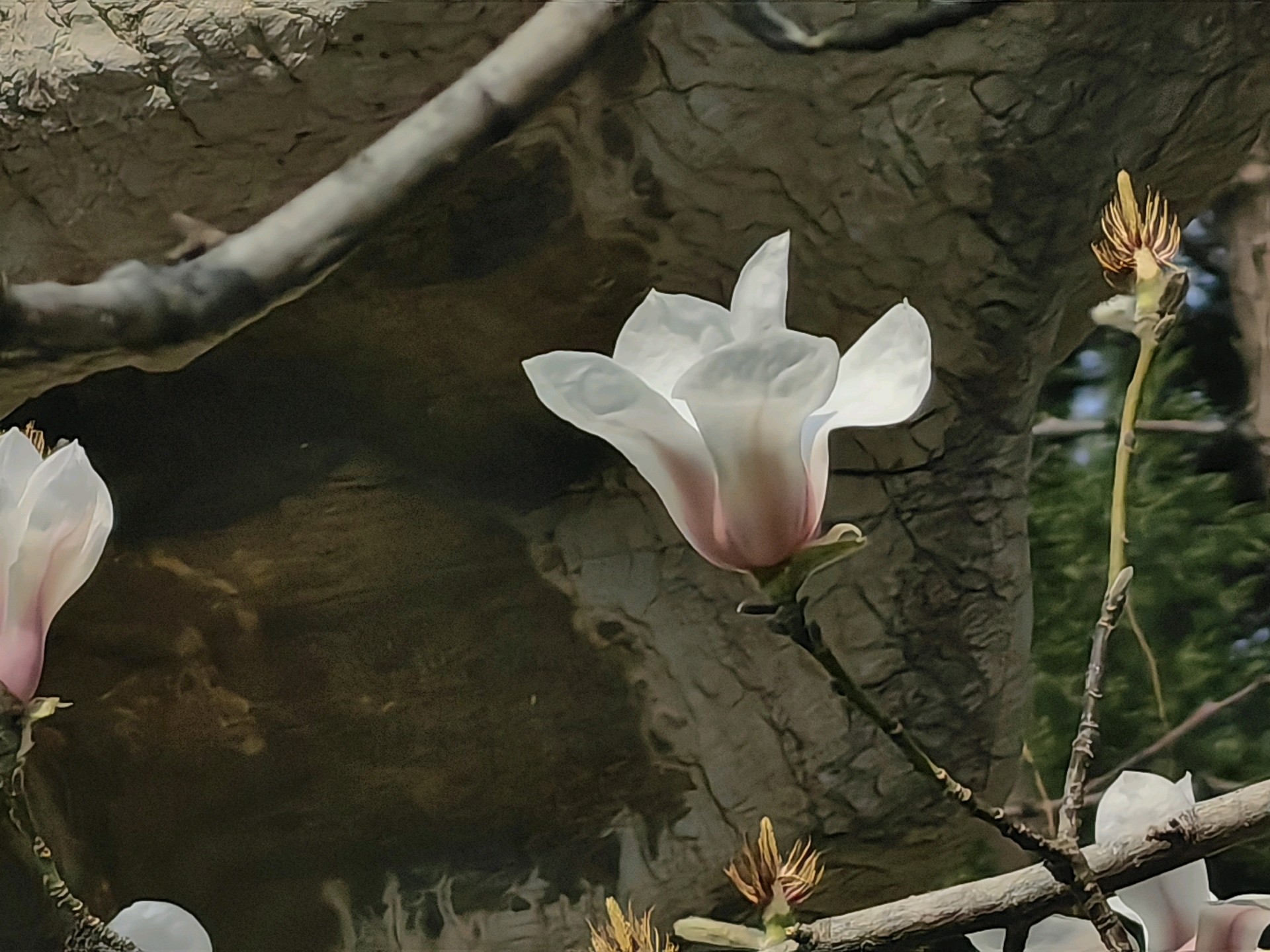百花公园玉兰花开,阳光透过树枝洒下,为大地增添了生机。人们用手机记录下这美好的瞬间。