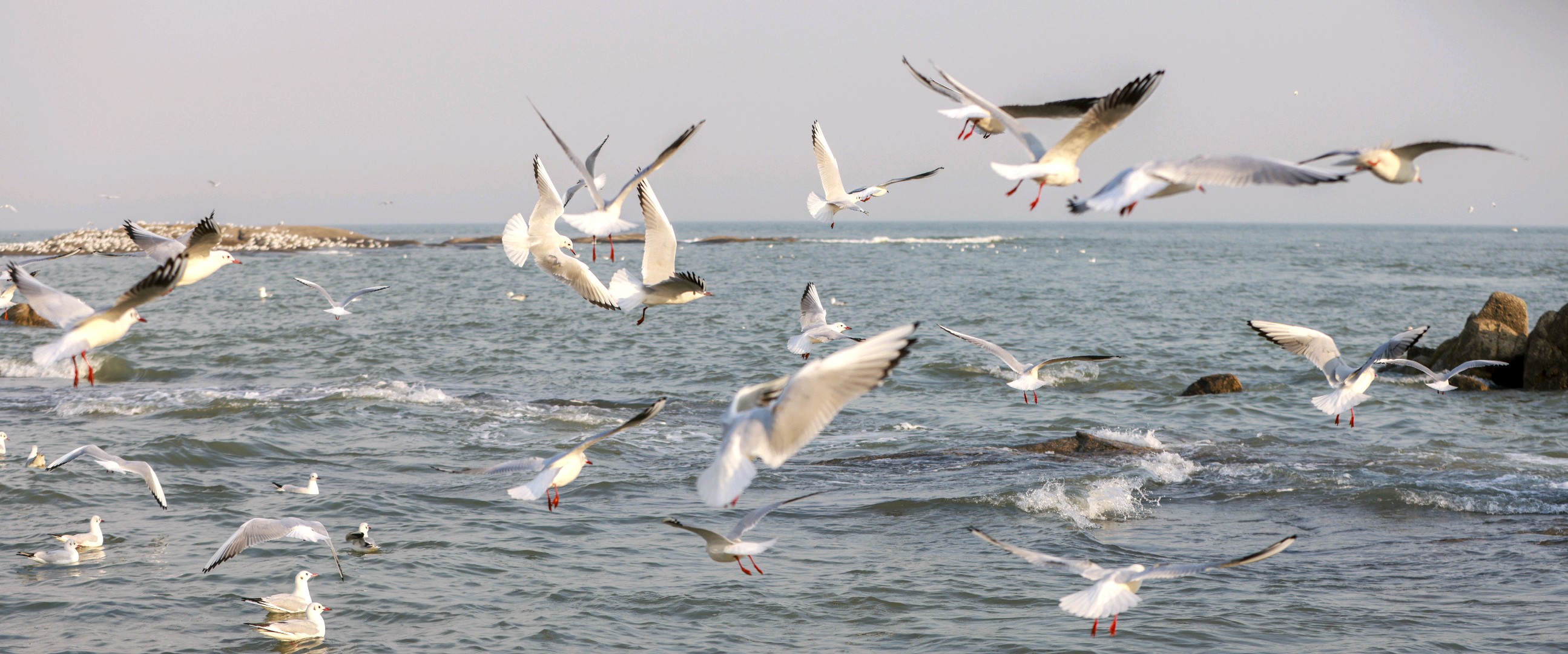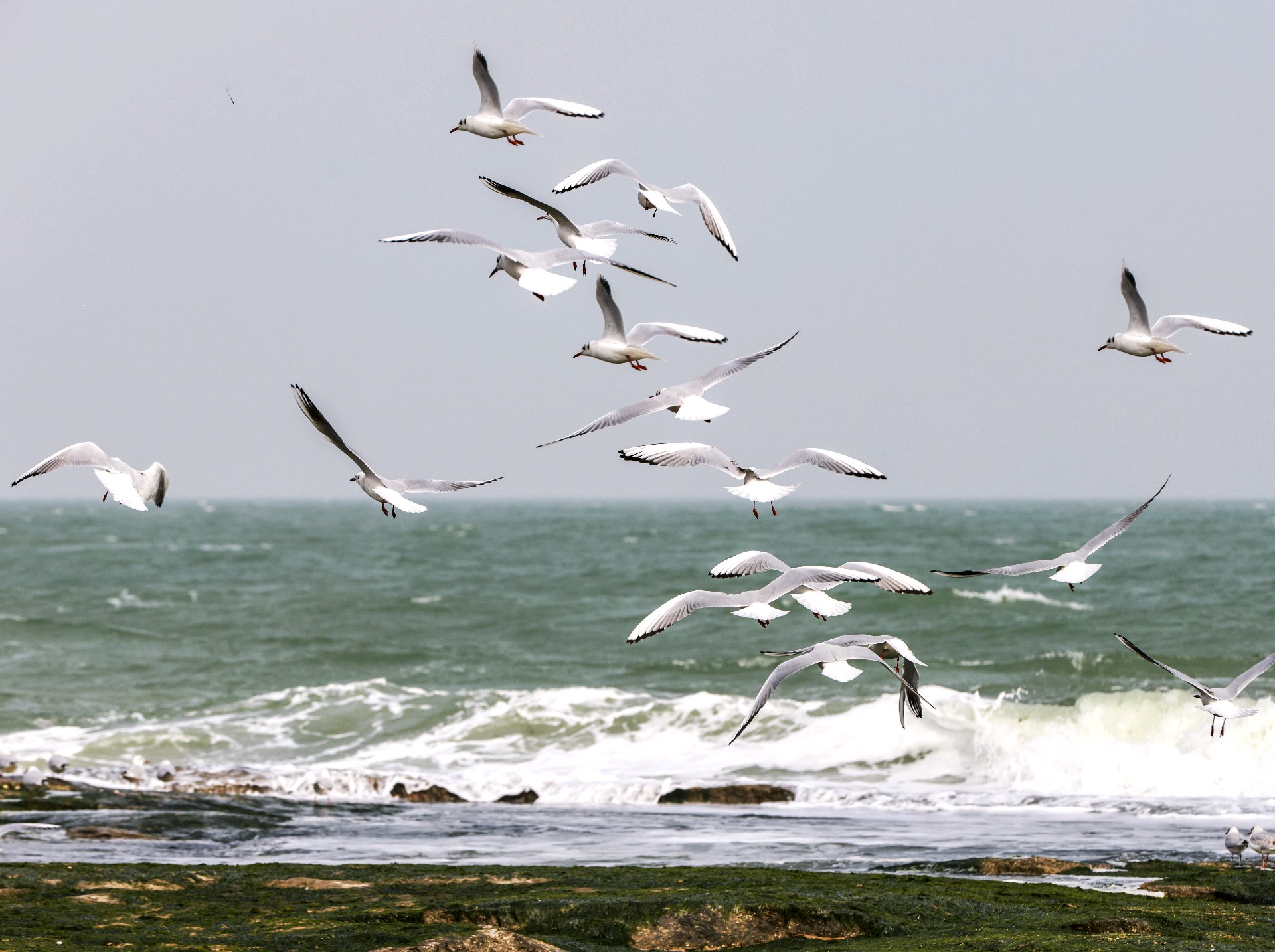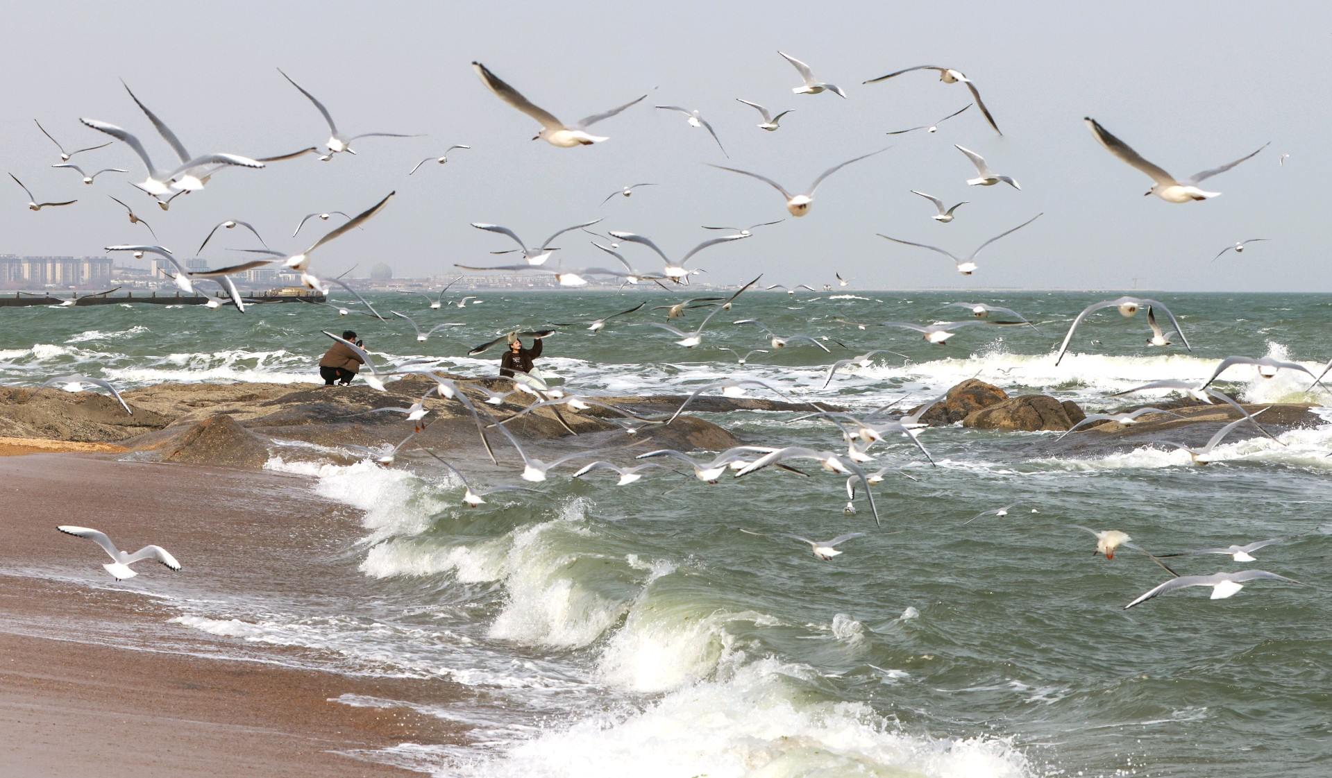 2026年3月10日,山东省日照市灯塔风景区,游客与市民来观赏投喂海鸥,随着来日照越冬的海鸥越来越多,来海边看海鸥成为日照市旅游的一张新名片。