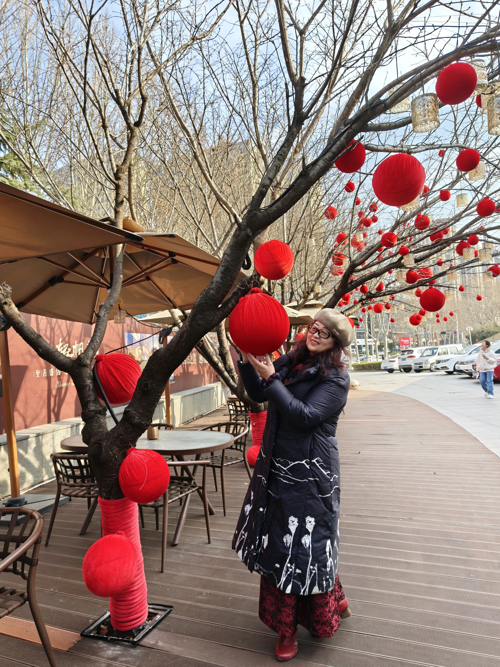 年的热闹还没完全散尽,红灯笼还挂在光秃秃的枝桠上,像一团团不肯熄灭的暖火。风里已经有了春的软意,吹得灯笼轻轻晃,也吹得人裹紧了身上的羽绒服。