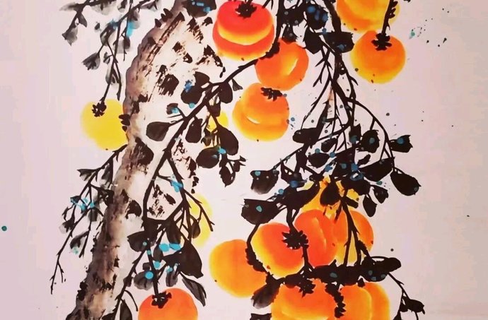 冯书新站在泰山脚下画画,一画几十年。笔下柿子红透,喜鹊登枝,松竹挺立,菊花盛开。每一笔都是日子,都是光阴,都是她对世界的深情。