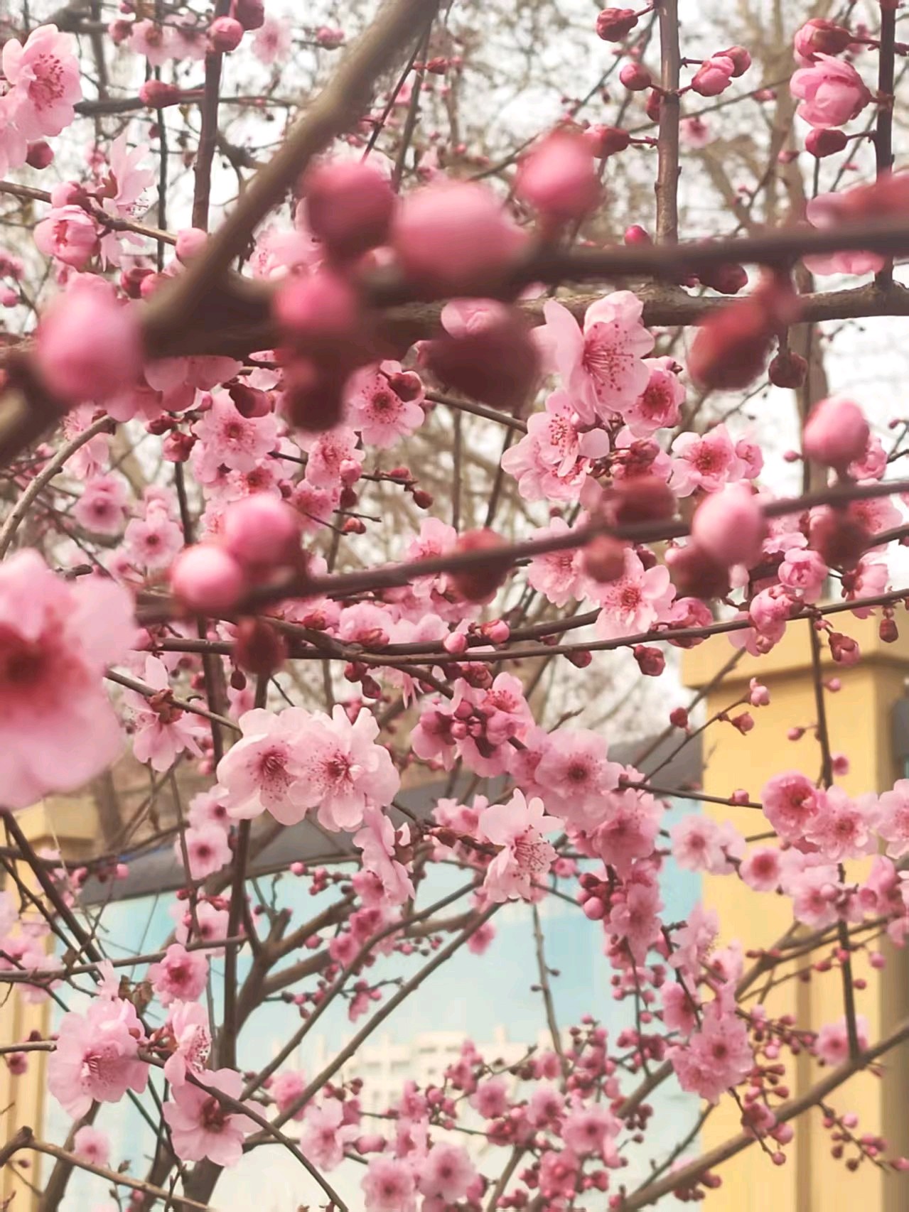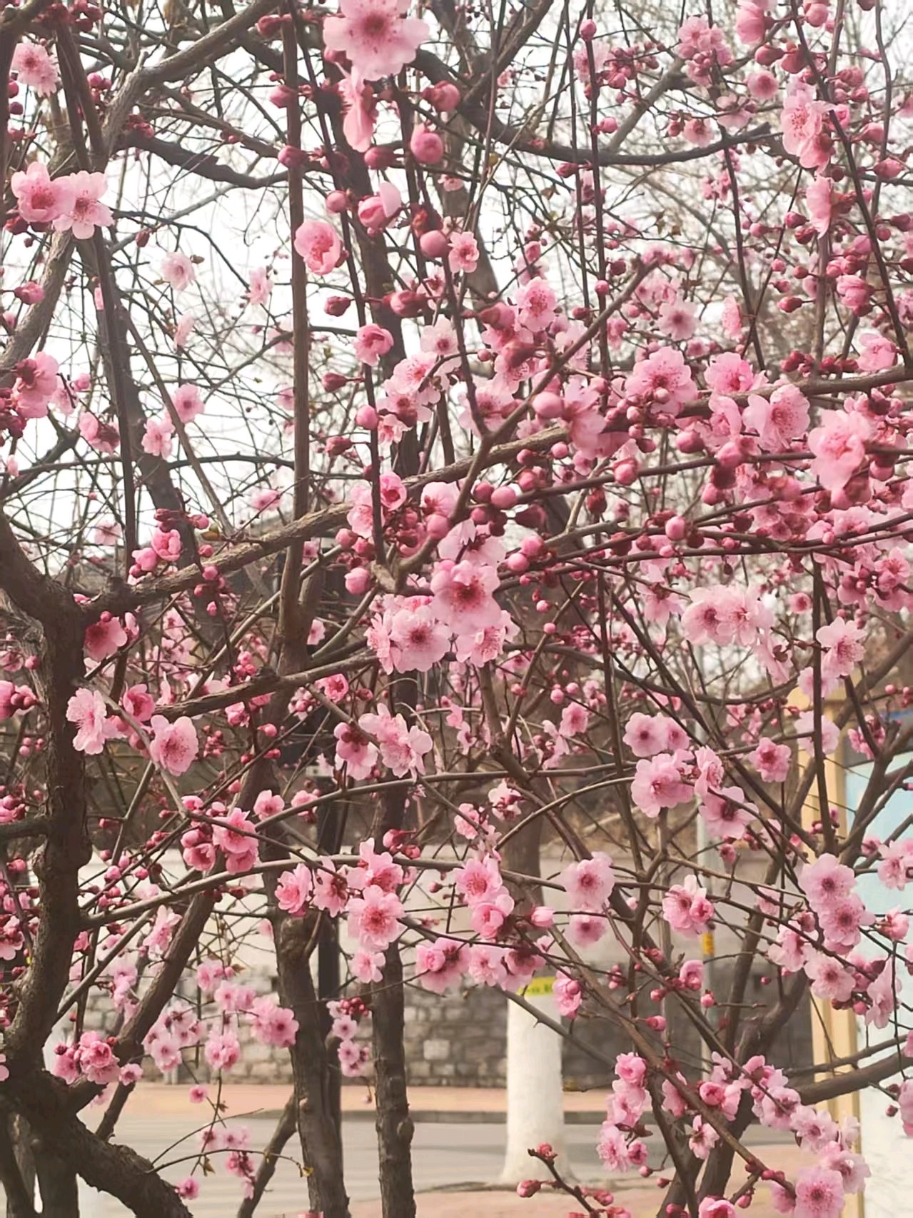 路边的美人梅开放了缀着城市的街道,为人们带来春天的气息。作为梅花中开得最晚的品种,它避开了早春的料峭,在三月中下旬至四月上旬款款绽放,以一身粉紫烟霞,为暮春写下最温柔的注脚。