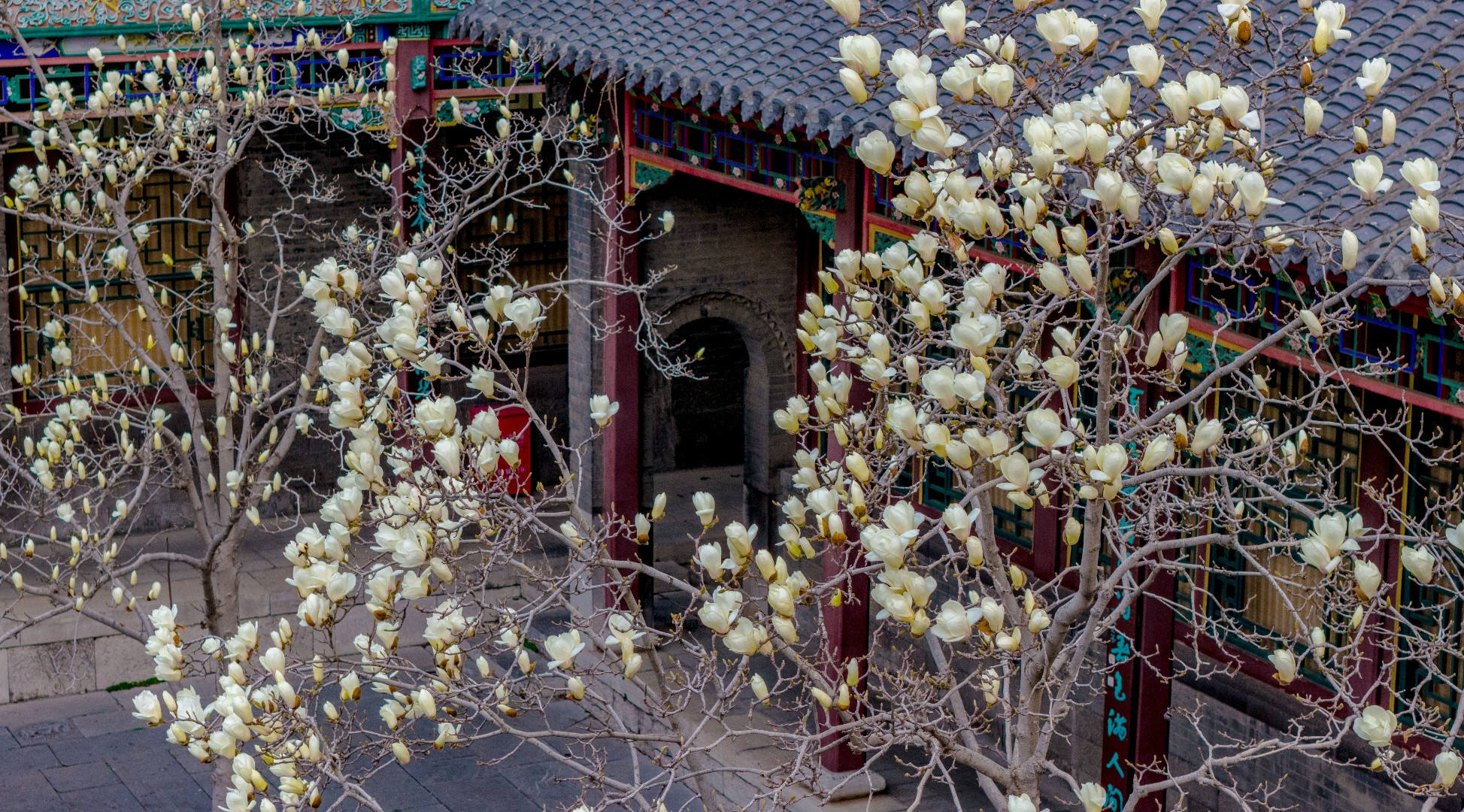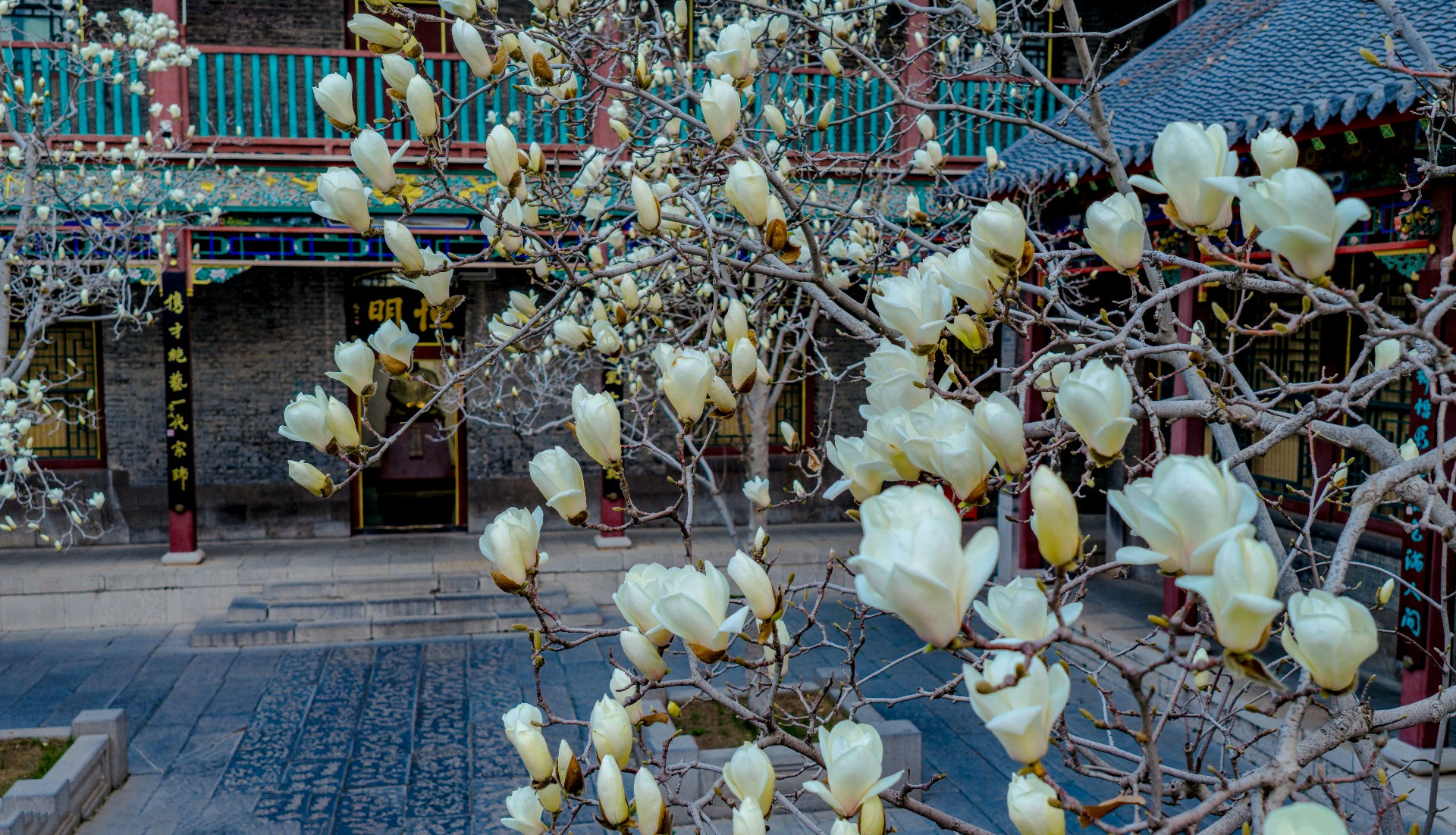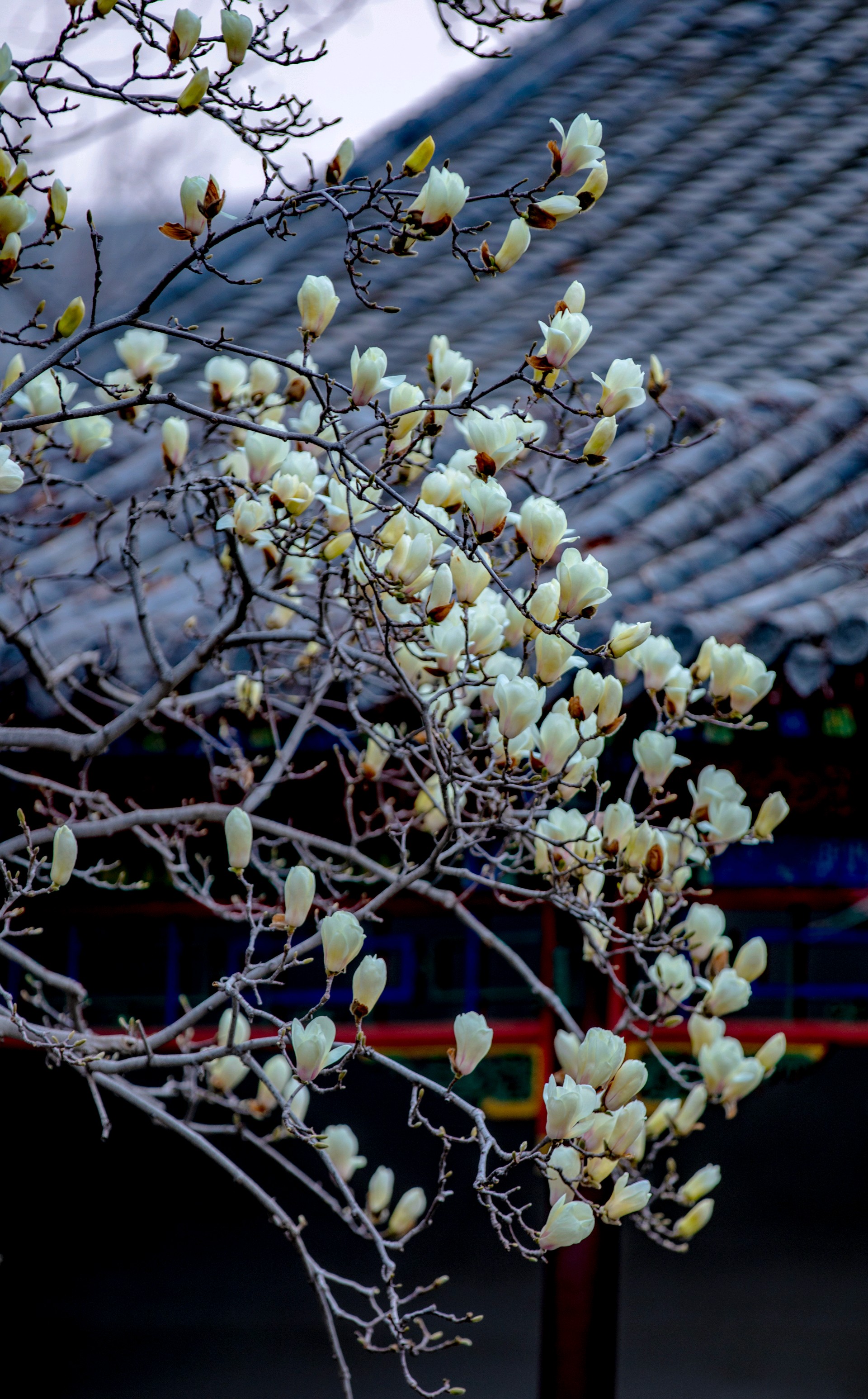 万竹园玉兰园内,白玉兰悄然盛放。白花亭亭玉立、洁净无瑕,花瓣温润如玉,在枝头静静舒展。古朴的青砖灰瓦四合院古韵悠然,与清雅玉兰相映成趣。古建雅致与春花纯净交融,勾勒出静谧诗意的春日景致,一步一景皆如画,温婉又静美。