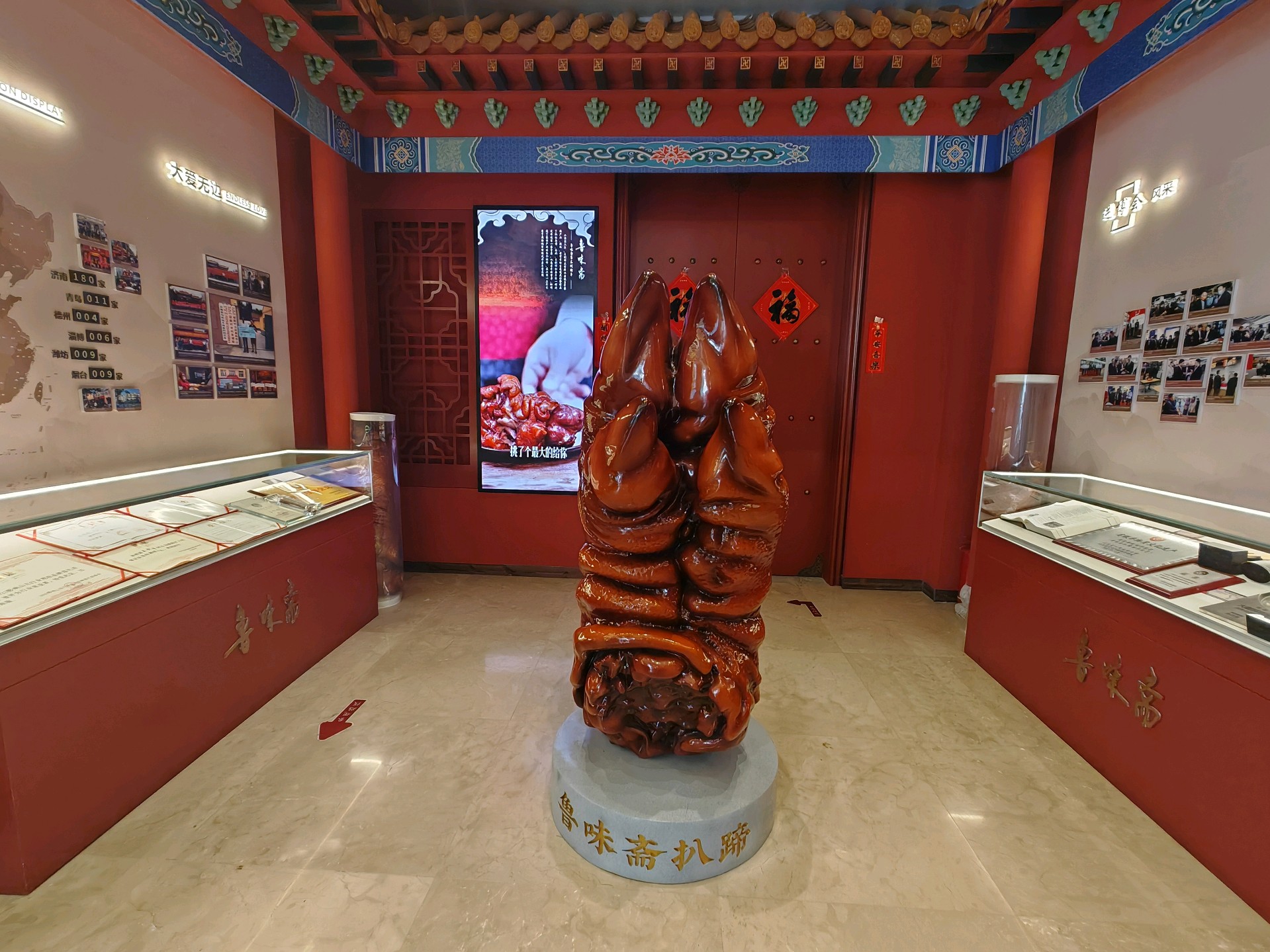 走进鲁味斋“大猪蹄子博物馆”,红砖建筑透着复古韵味,进入眼帘的就是这个诱人的“大扒蹄”模型,还有充满年代感的室内布置,处处都藏着老济南的烟火气。