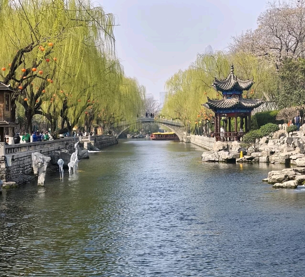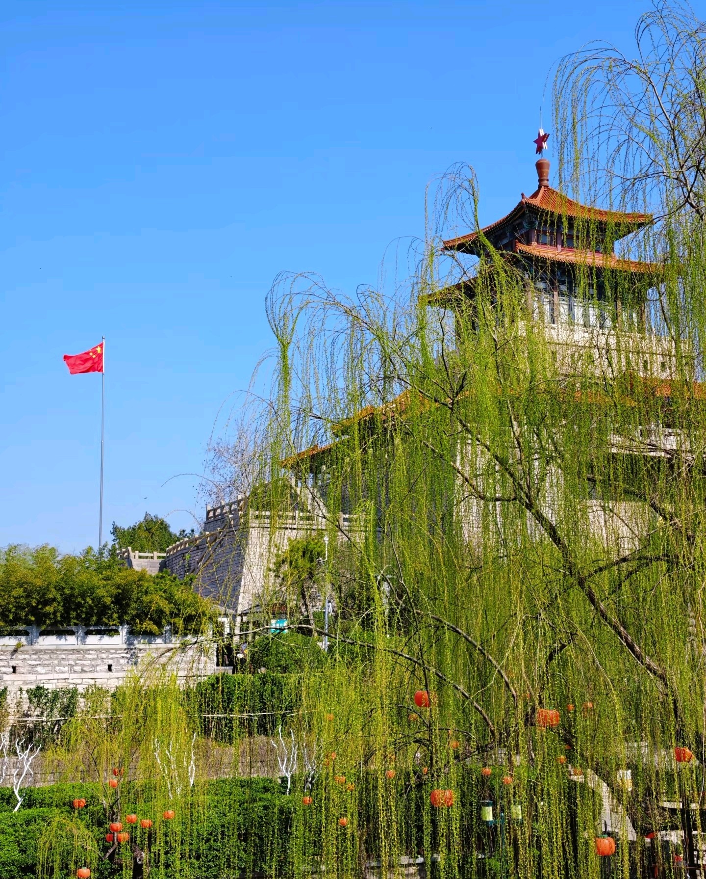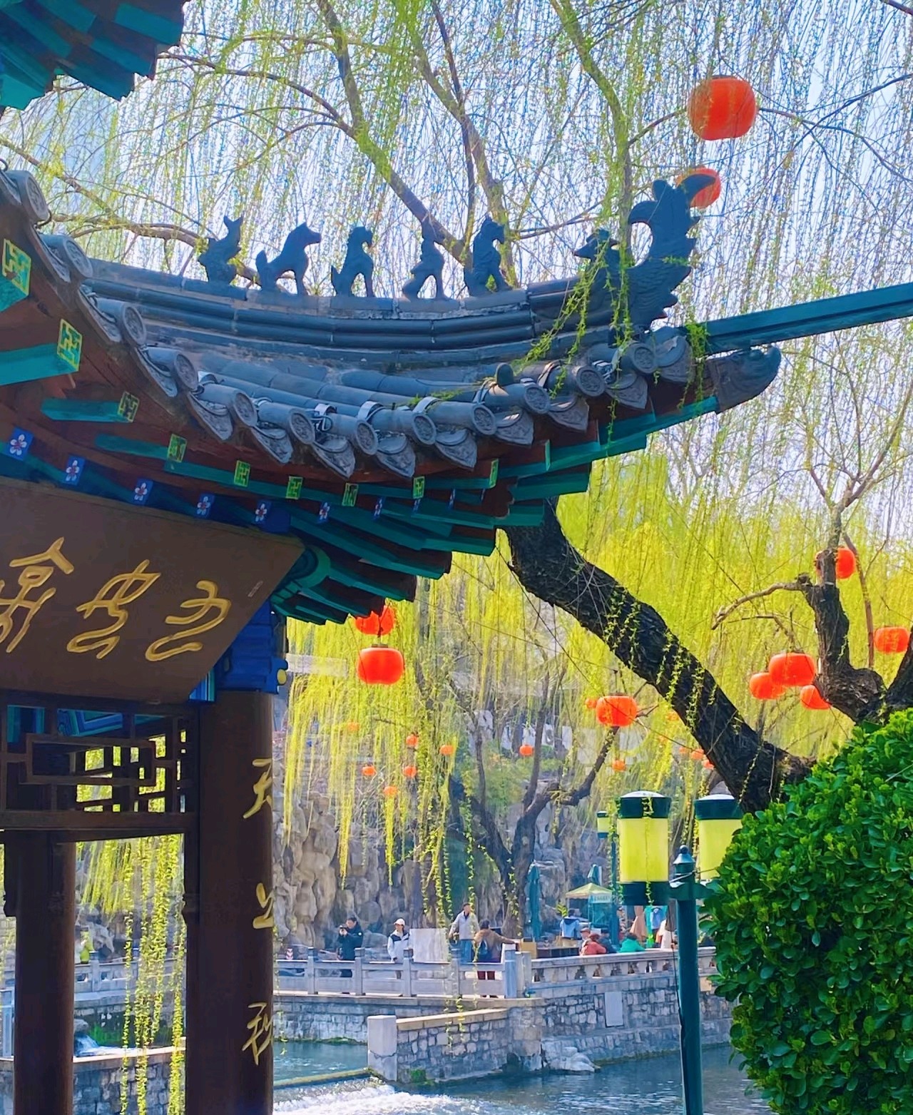 春风拂过,古色古香的亭台楼阁若隐若现,垂柳依依,仿佛置身于一幅美丽的画卷之中。
