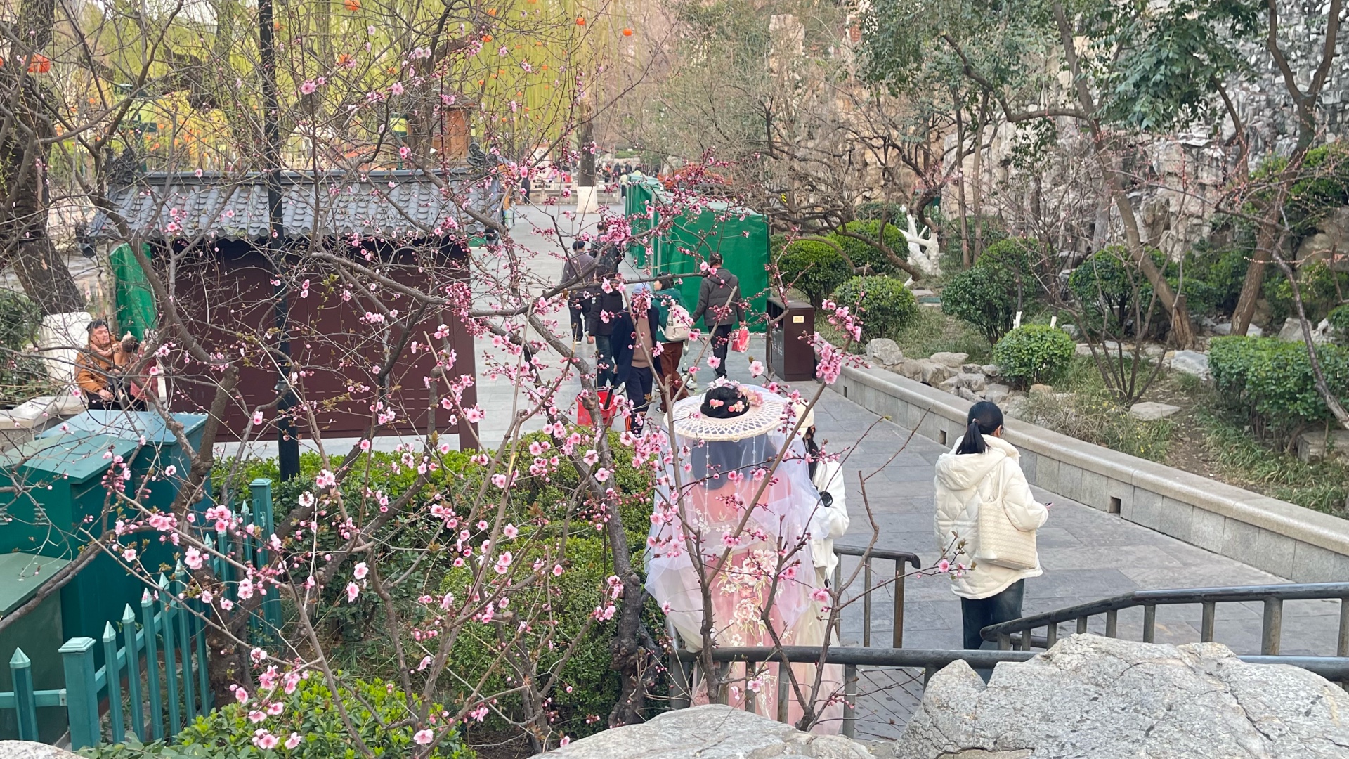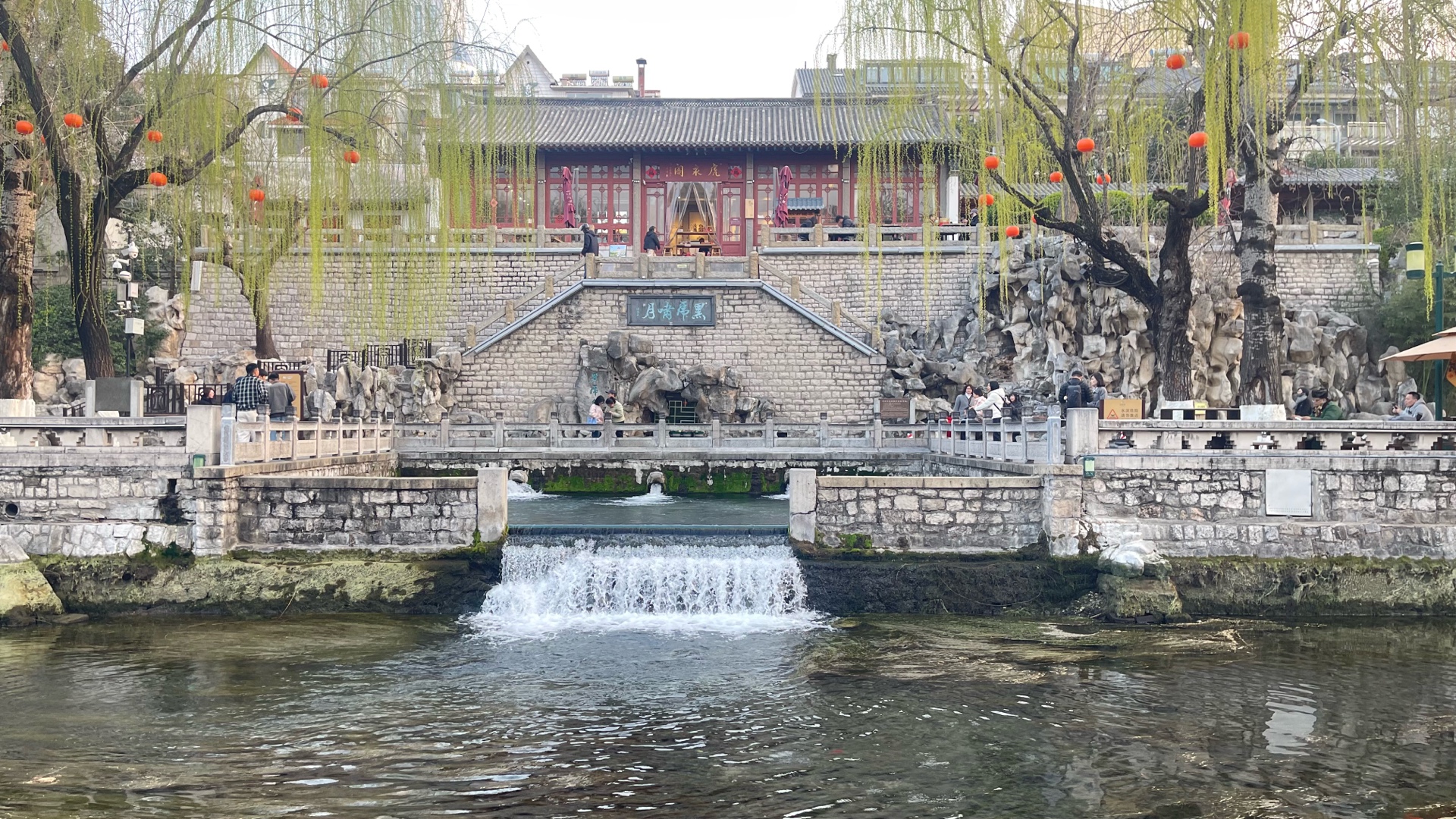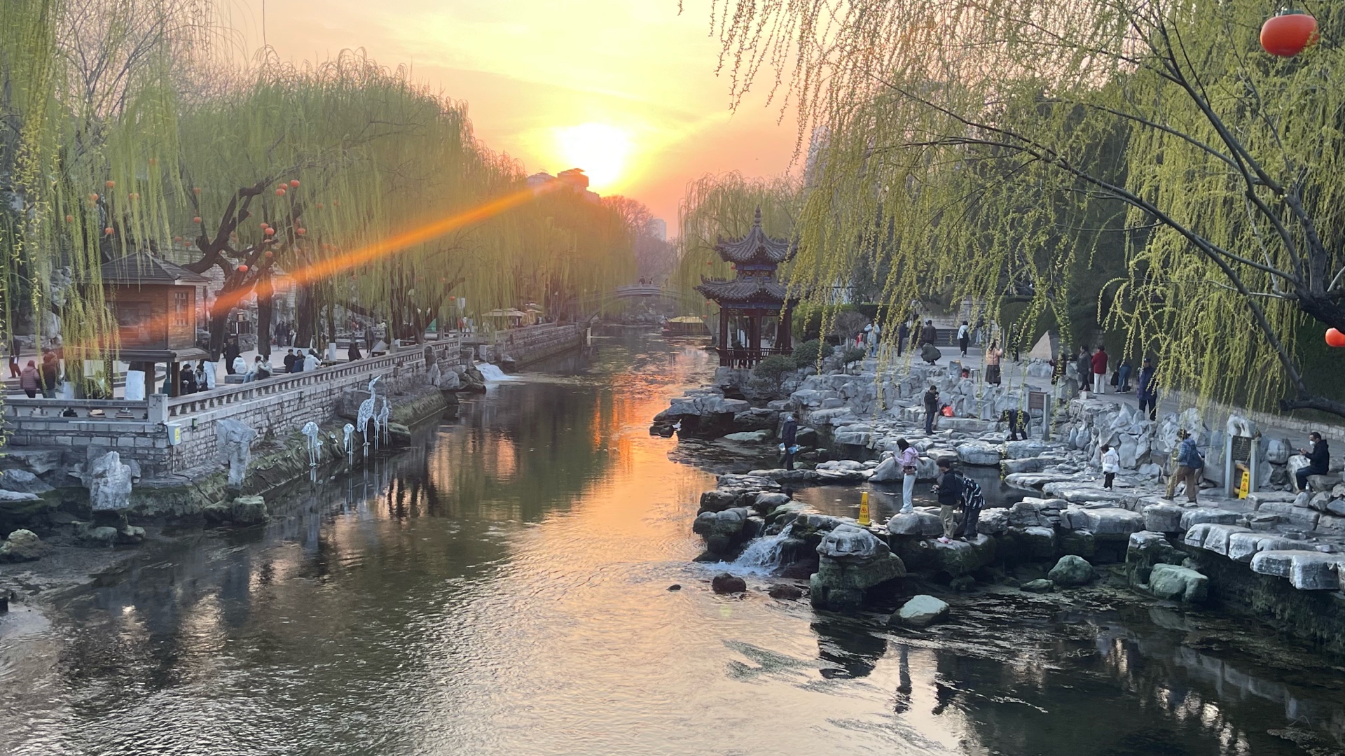春天来了,午后的护城河畔,春花盛开、泉水欢唱、游客驻足赏花、看泉!