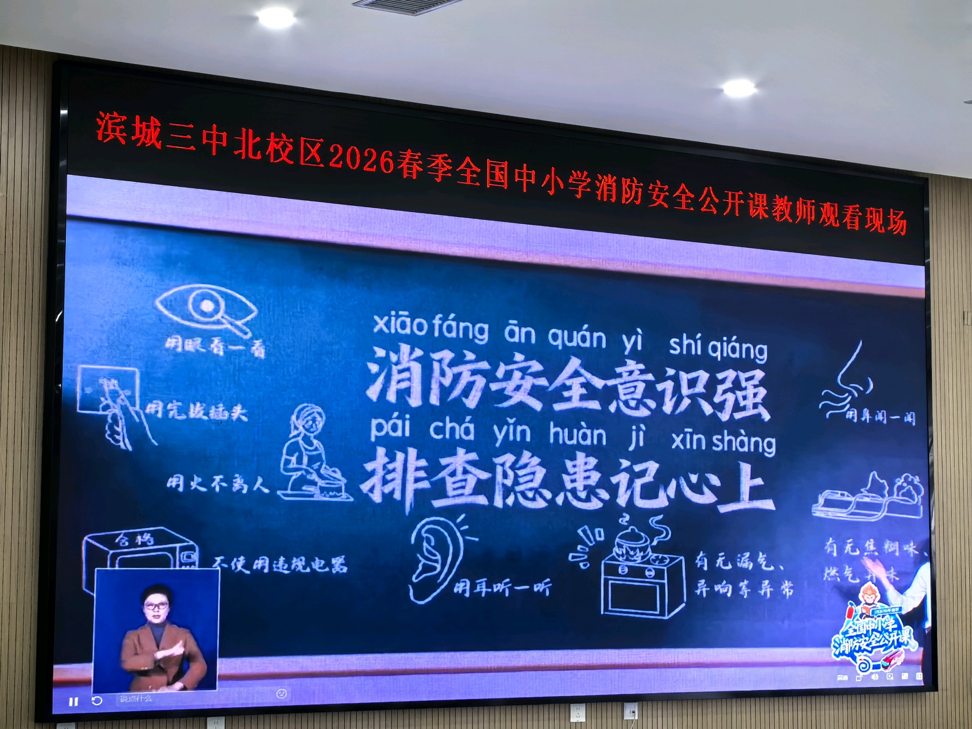 为进一步加强校园消防安全教育,3月13日下午三点,滨城区第三中学北校区全体师生有序收看了2026全国中小学消防安全公开课。活动组织严密,师生们认真观看,学习消防知识,有效提升了安全意识和自防自救能力,为筑牢校园安全“防火墙”打下了坚实基础。