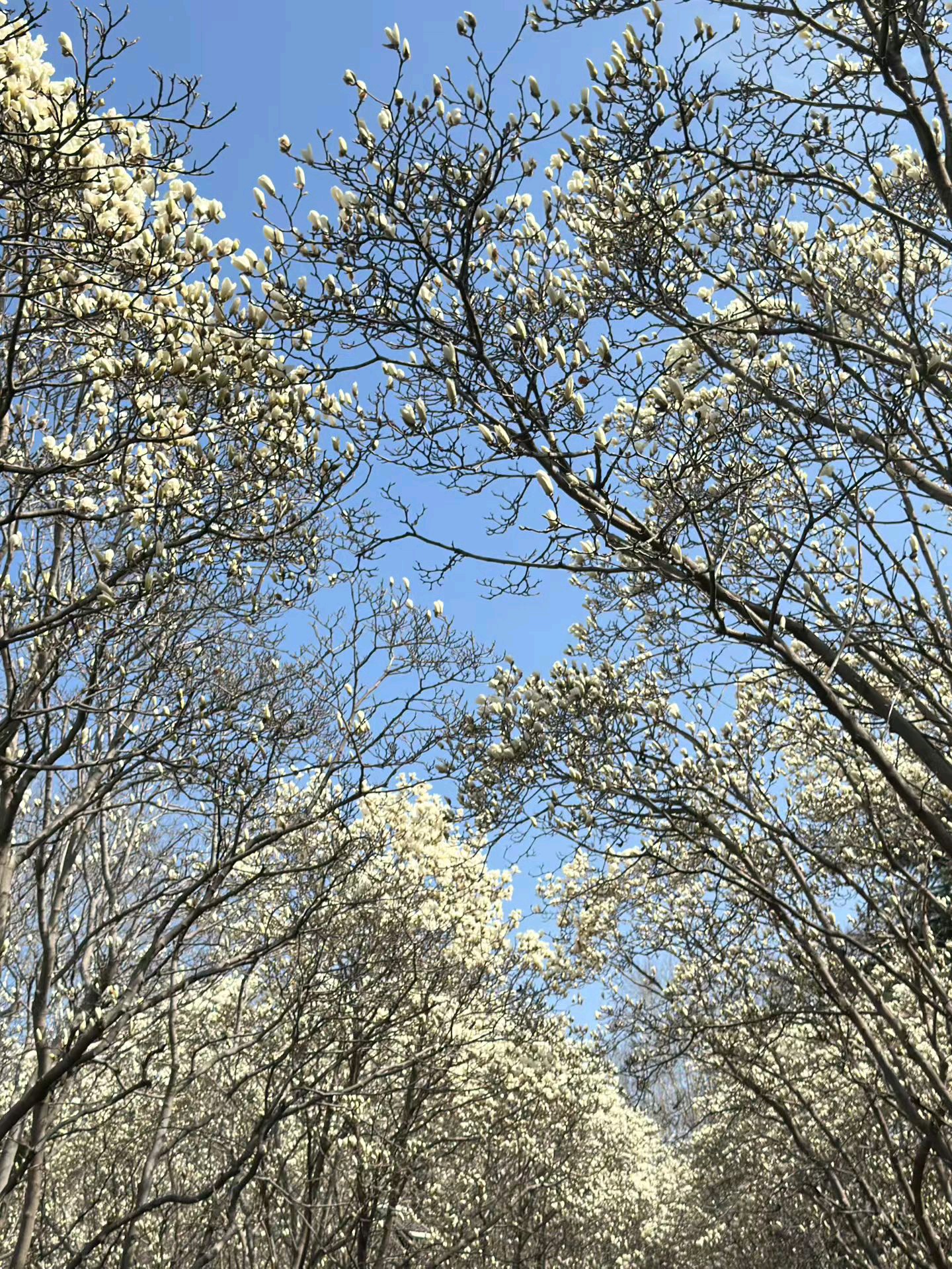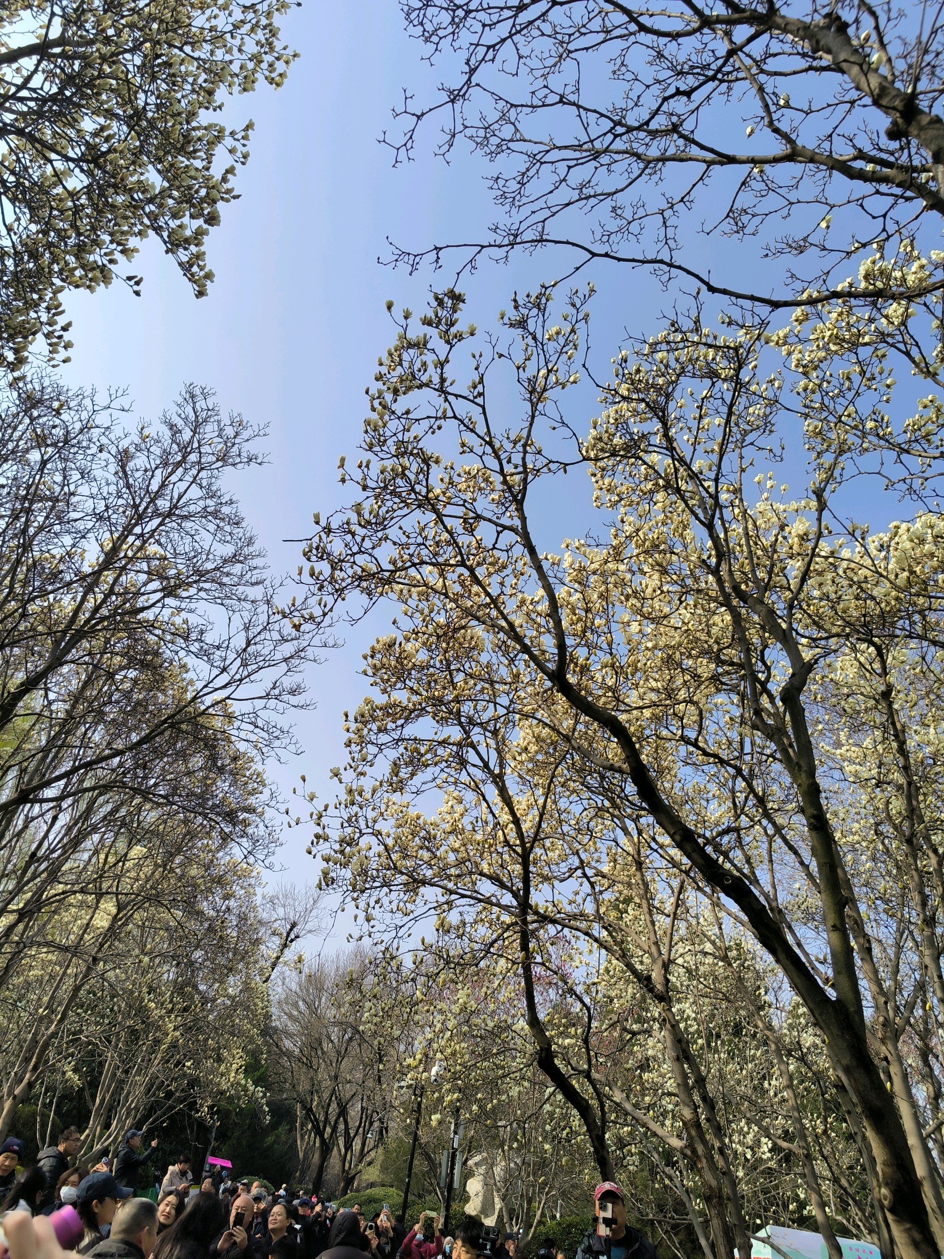 百花公园的玉兰花大道,洁白的玉兰花盛放,淡淡的花香似有若无,游人络绎不绝,纷纷拿出手机拍照。