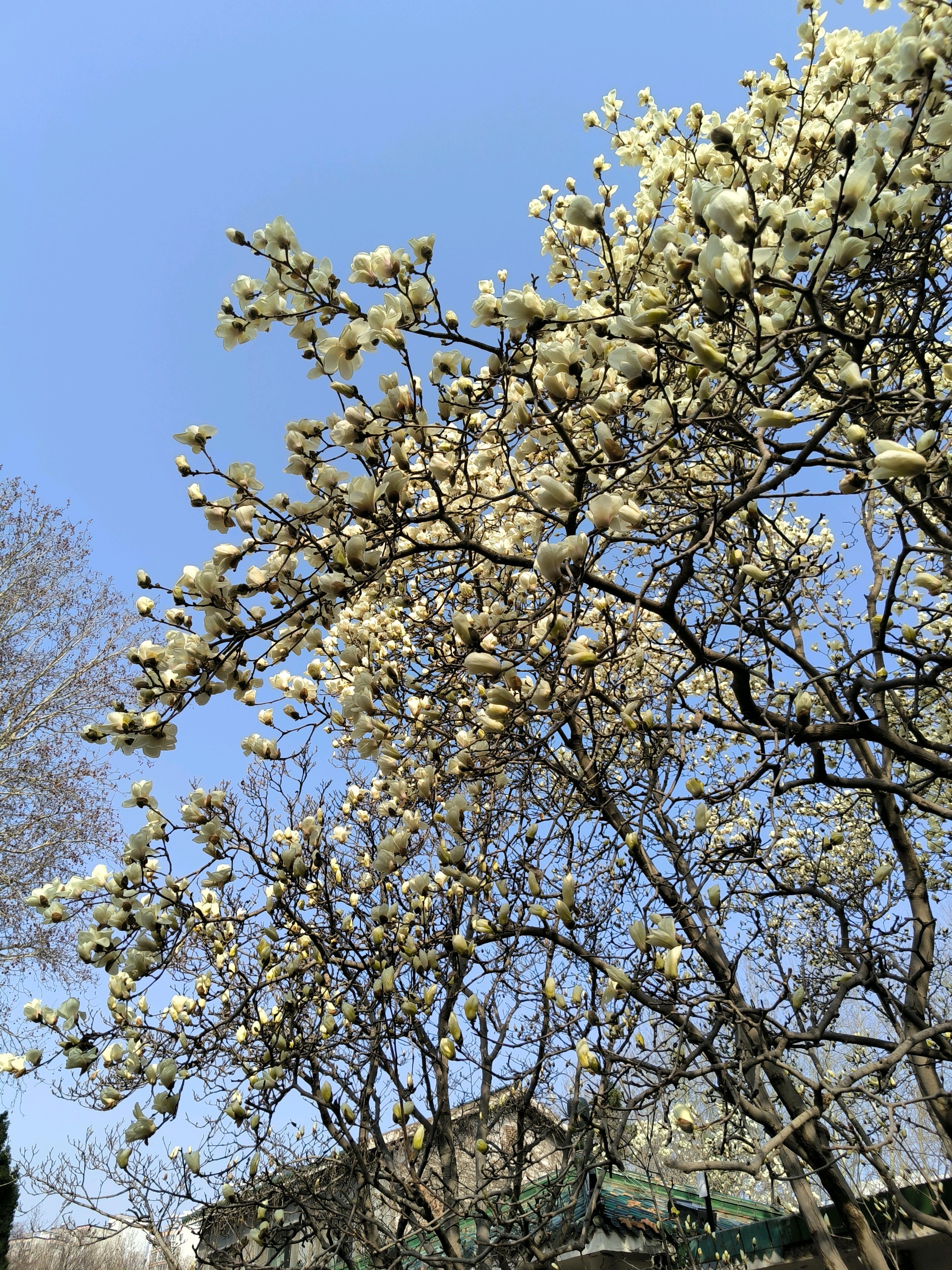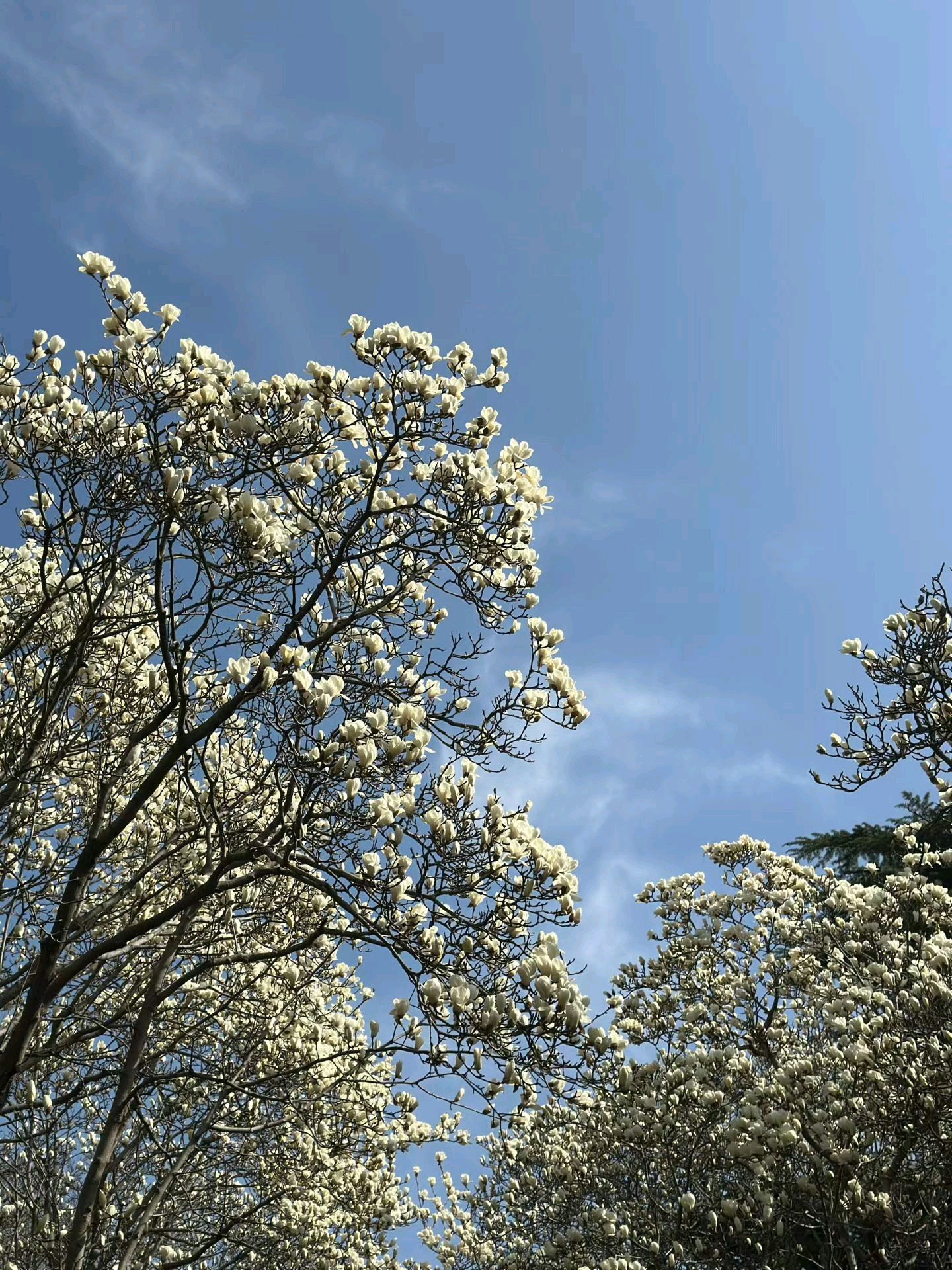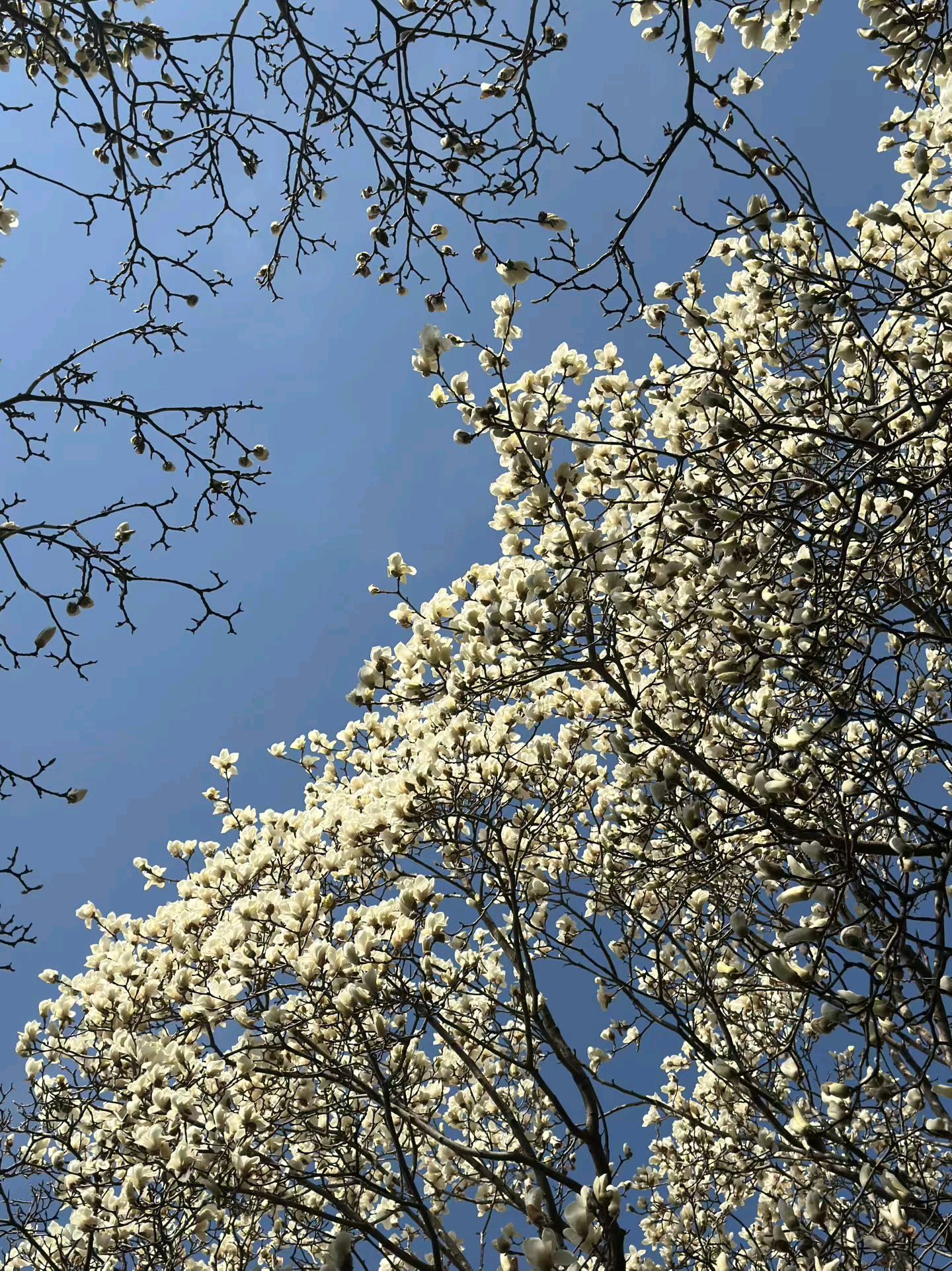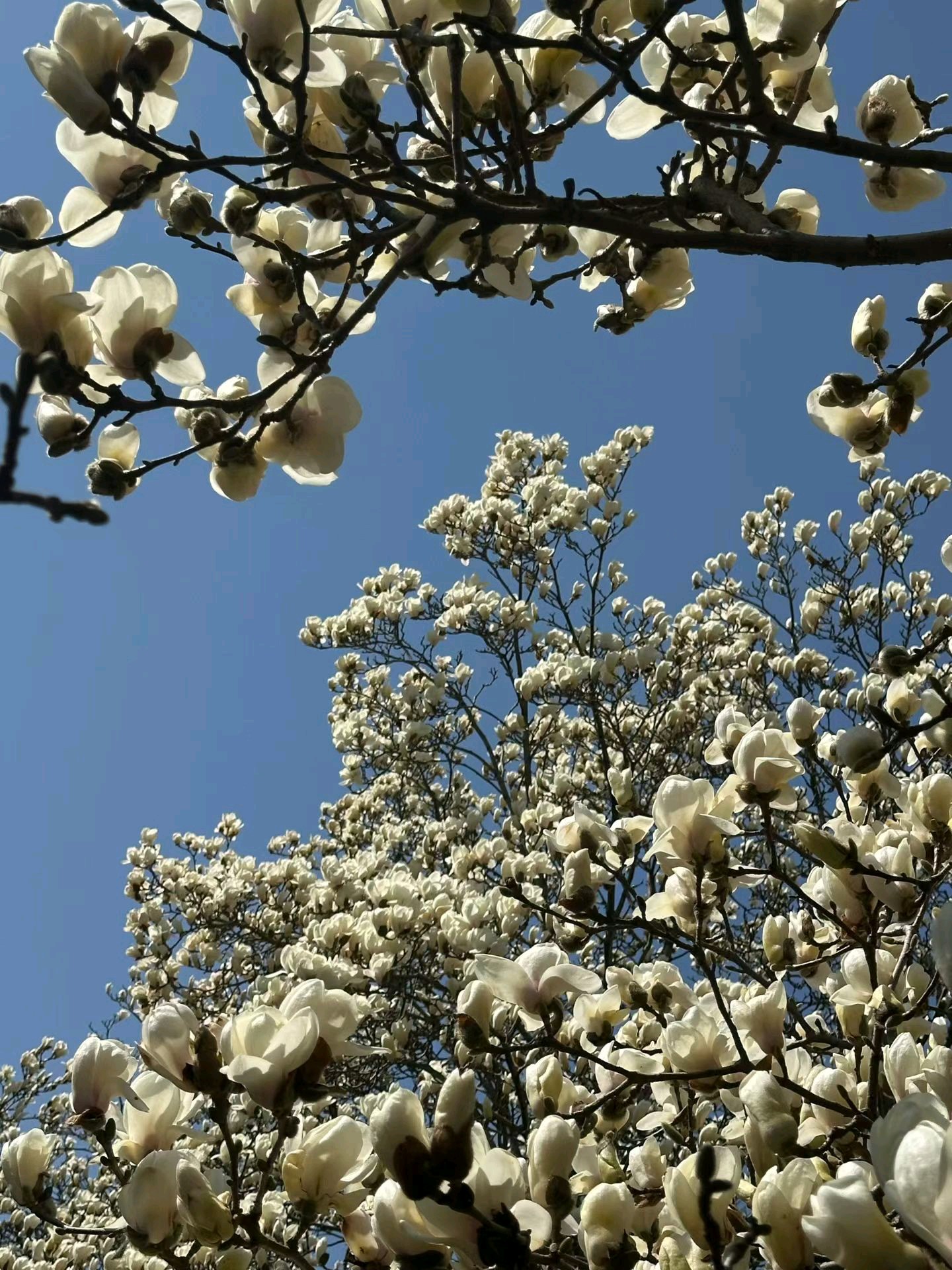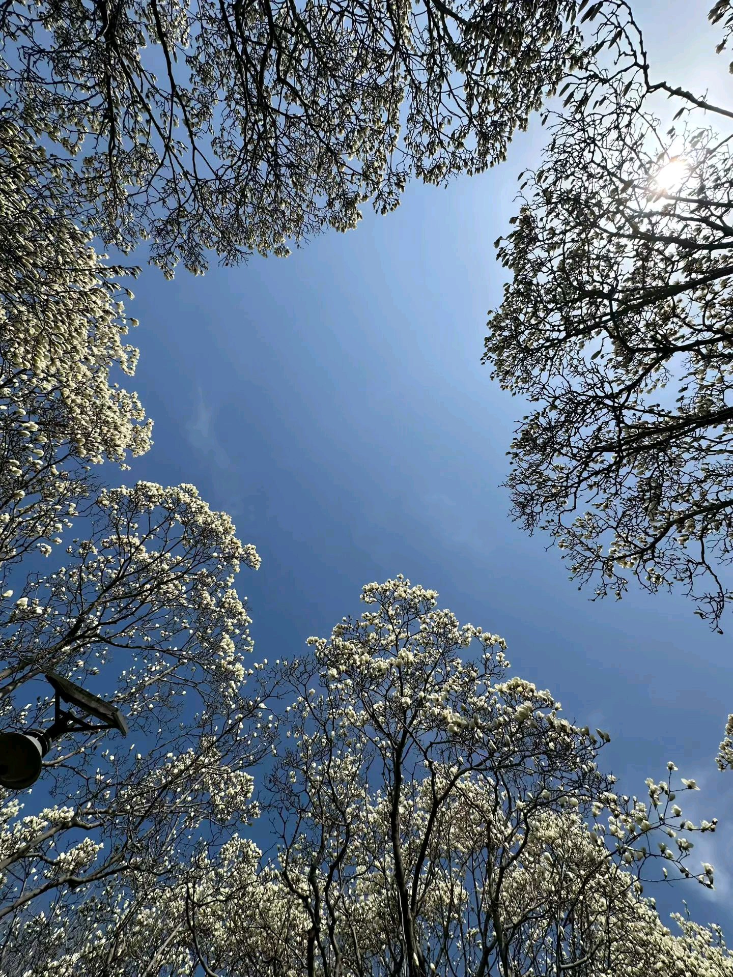 抬头仰望蓝天,满眼都是白色花朵的盛宴。漫步在花海中,感受春天的气息。