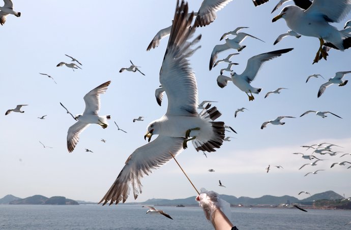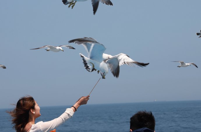 - 鸥鸟伴飞: 船启航后,成群的海鸥会像云朵一样追着船体飞行,叽叽喳喳的叫声充满活力。备好鸥粮,伸手就能触碰到这群海上精灵,画面绝对治愈!