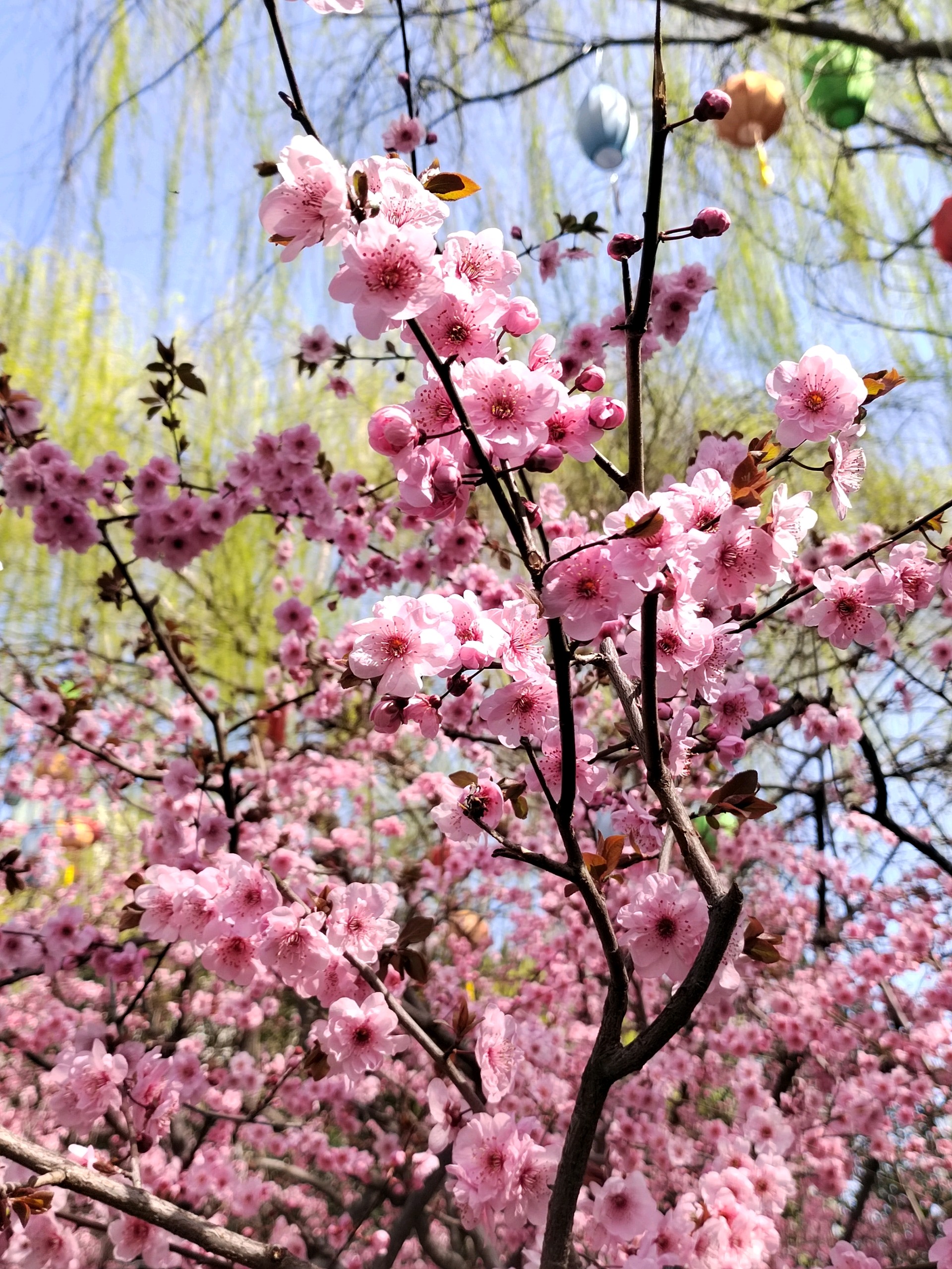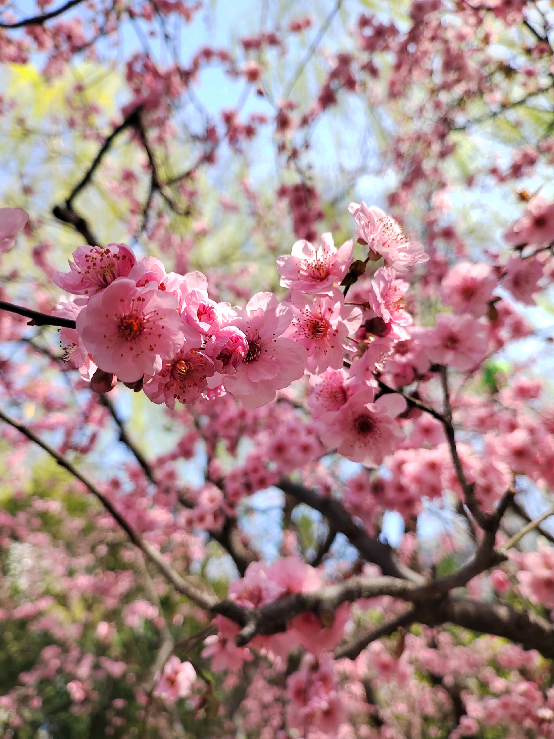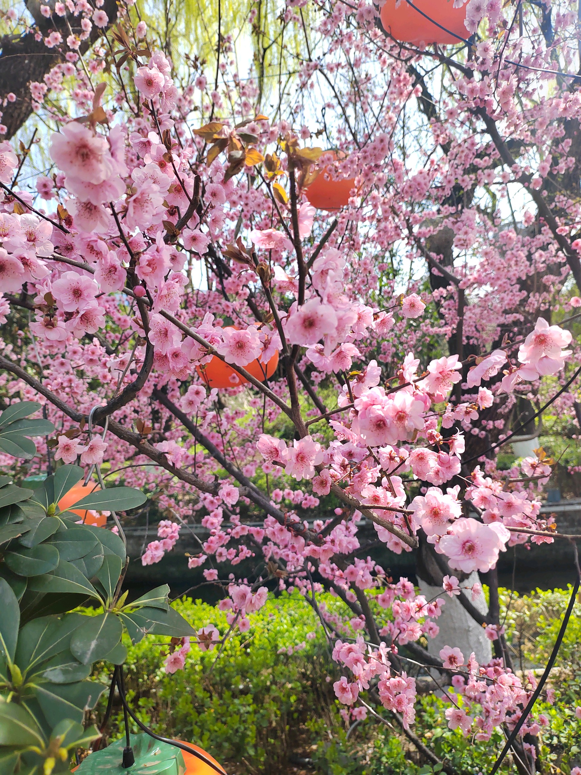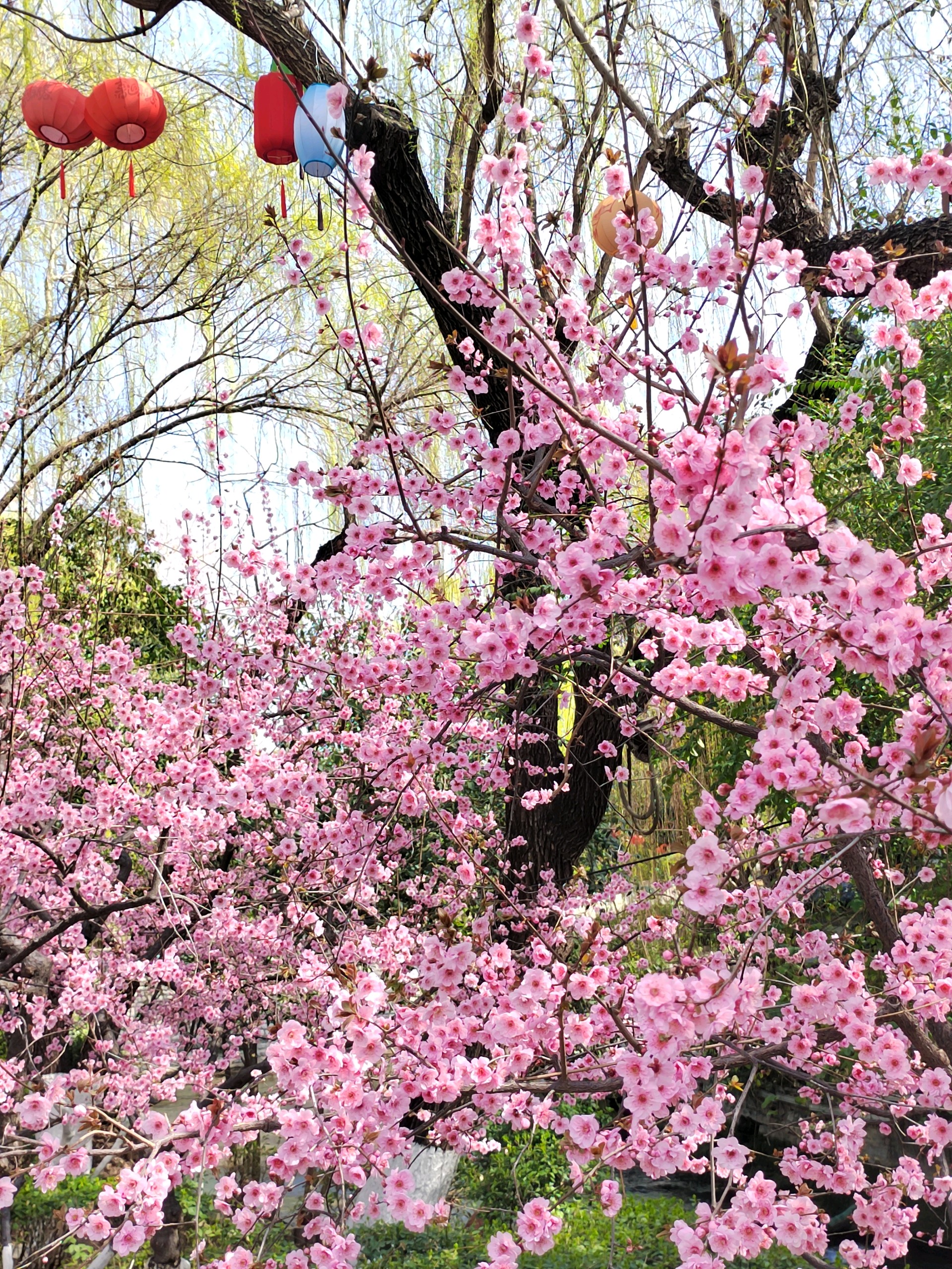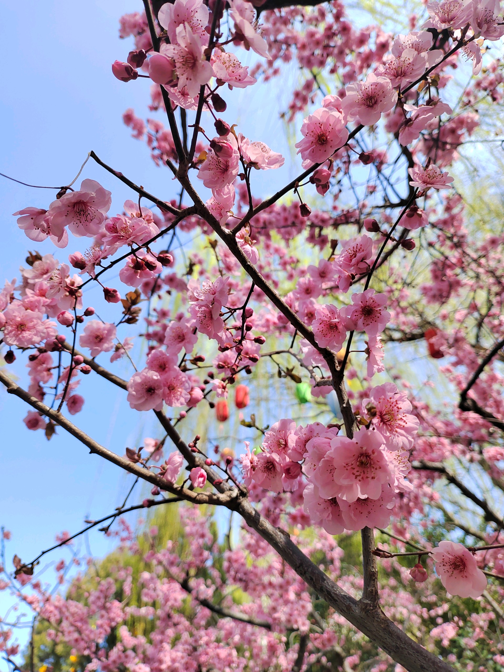 今天,打卡风景如画的趵突泉公园。春风送暖,百花争艳,趵突泉公园的美人梅开了。桃红色的花朵缀满枝头,娇艳欲滴!快来打卡吧。