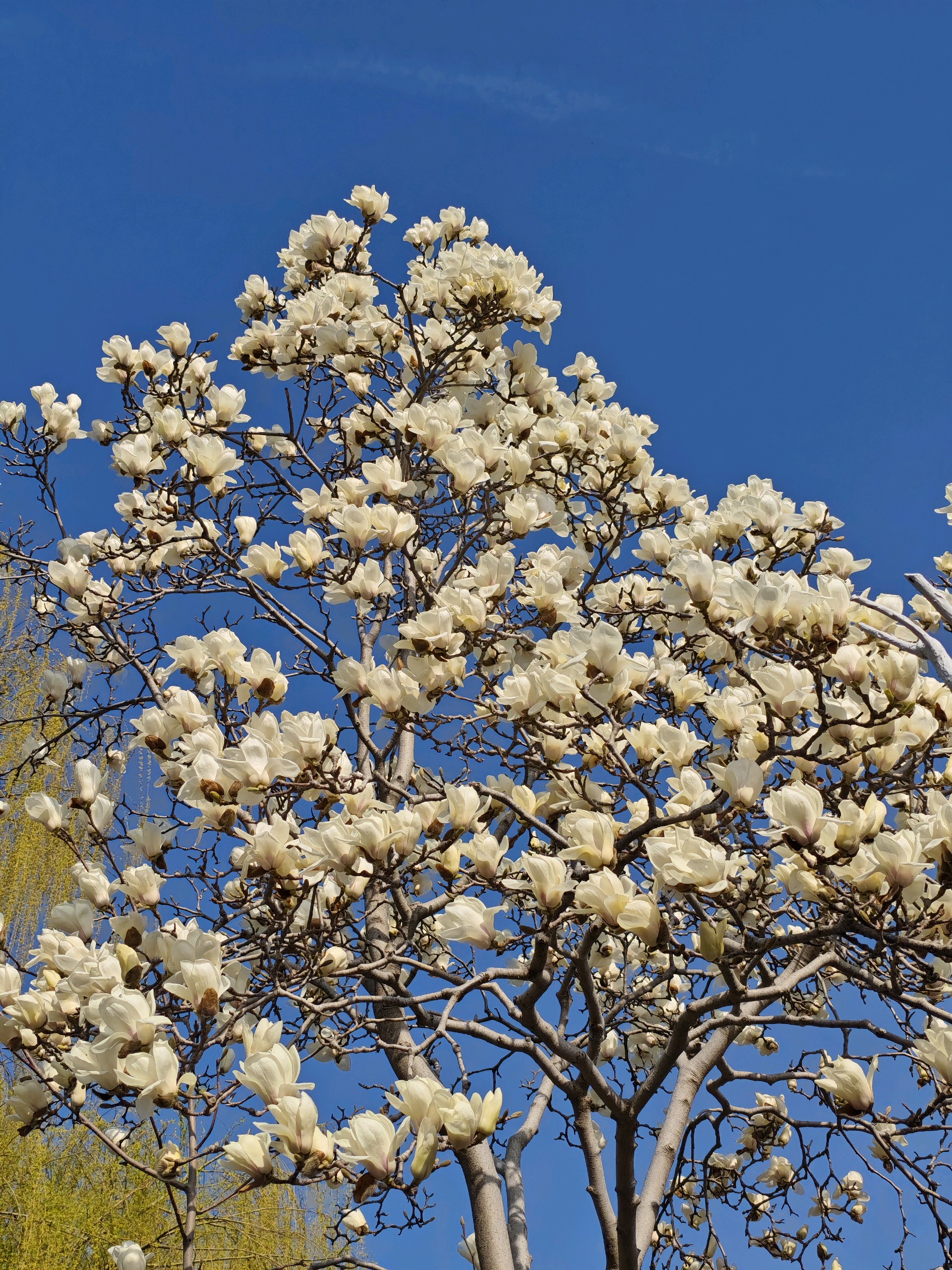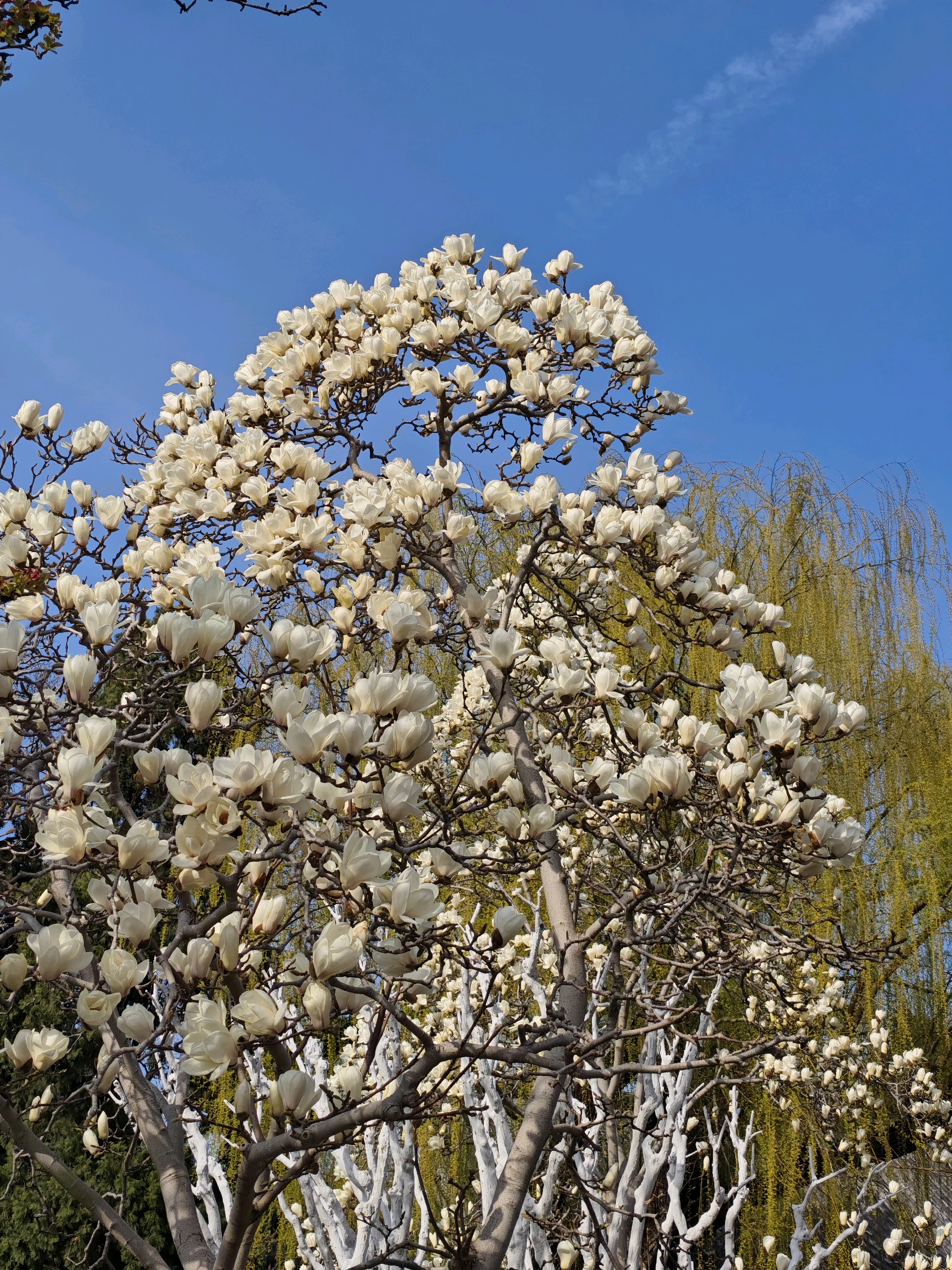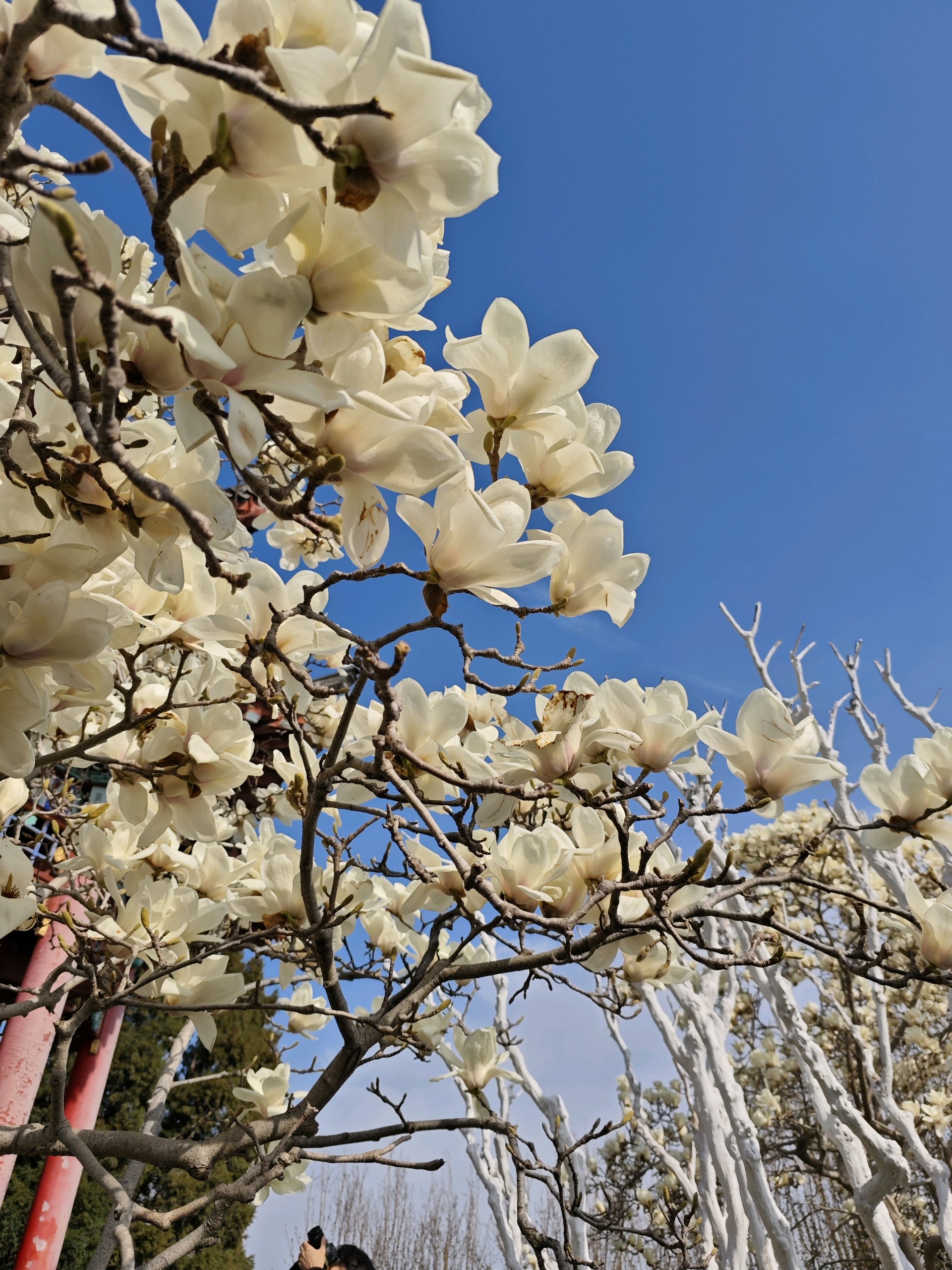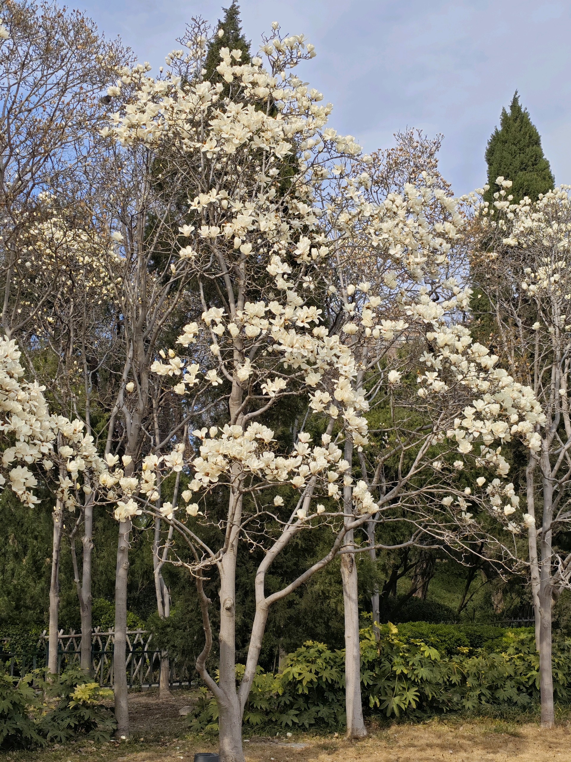 大明湖畔的白玉兰开得早些,百花公园要晚几天。