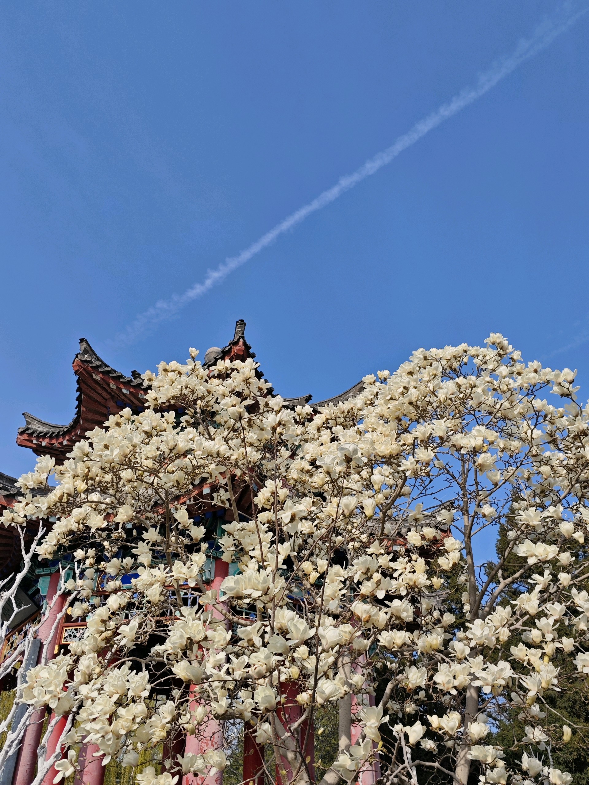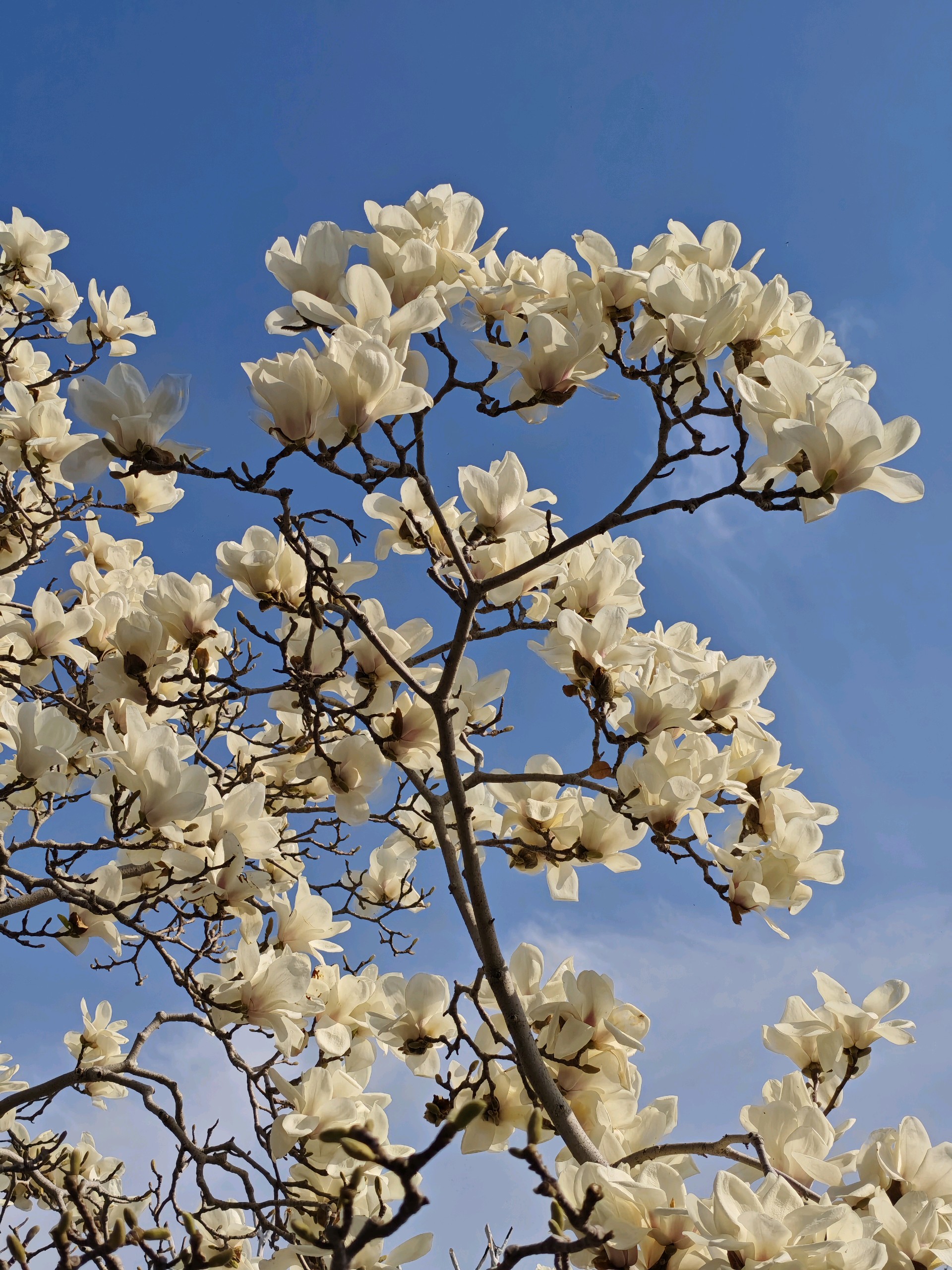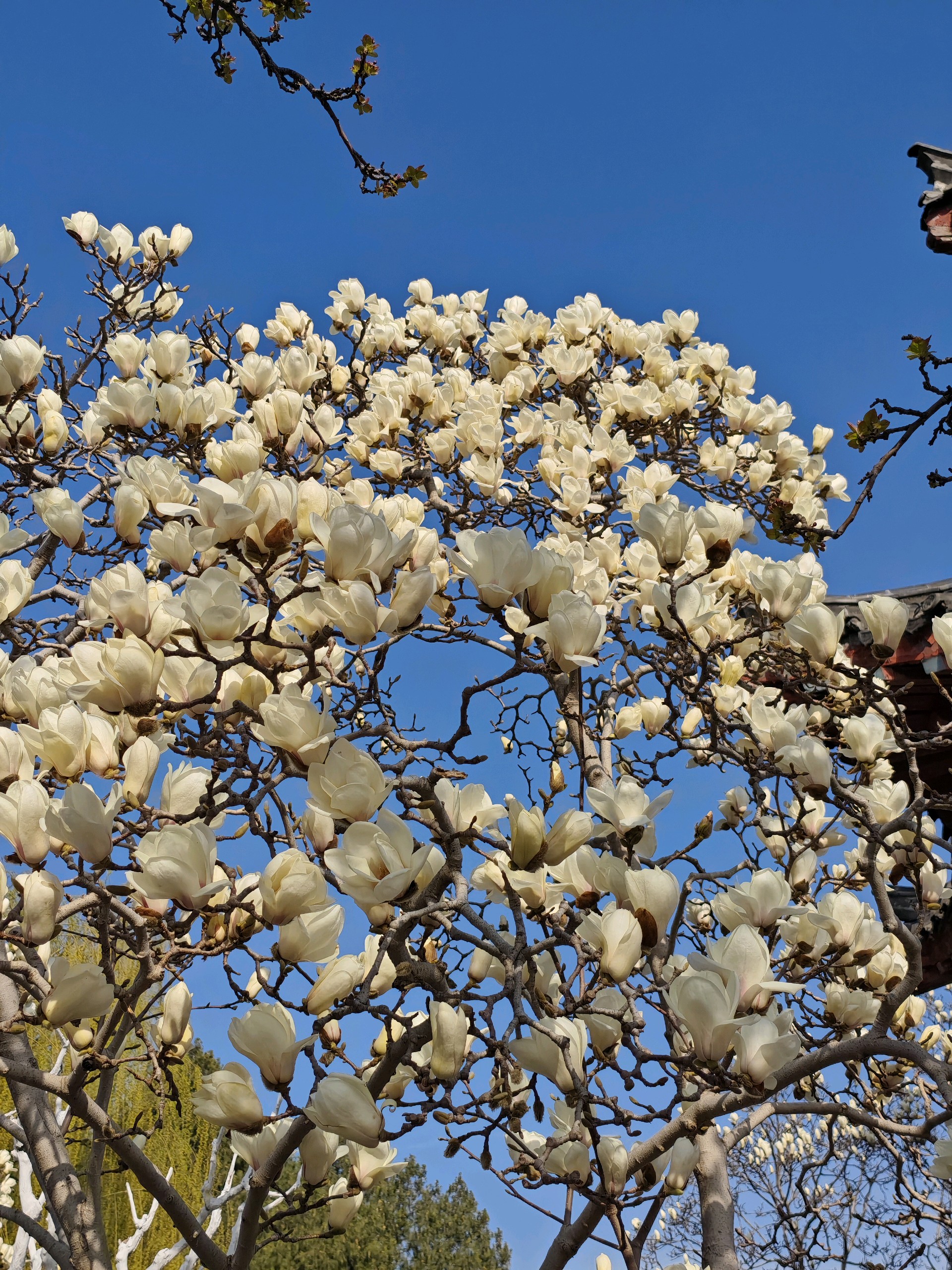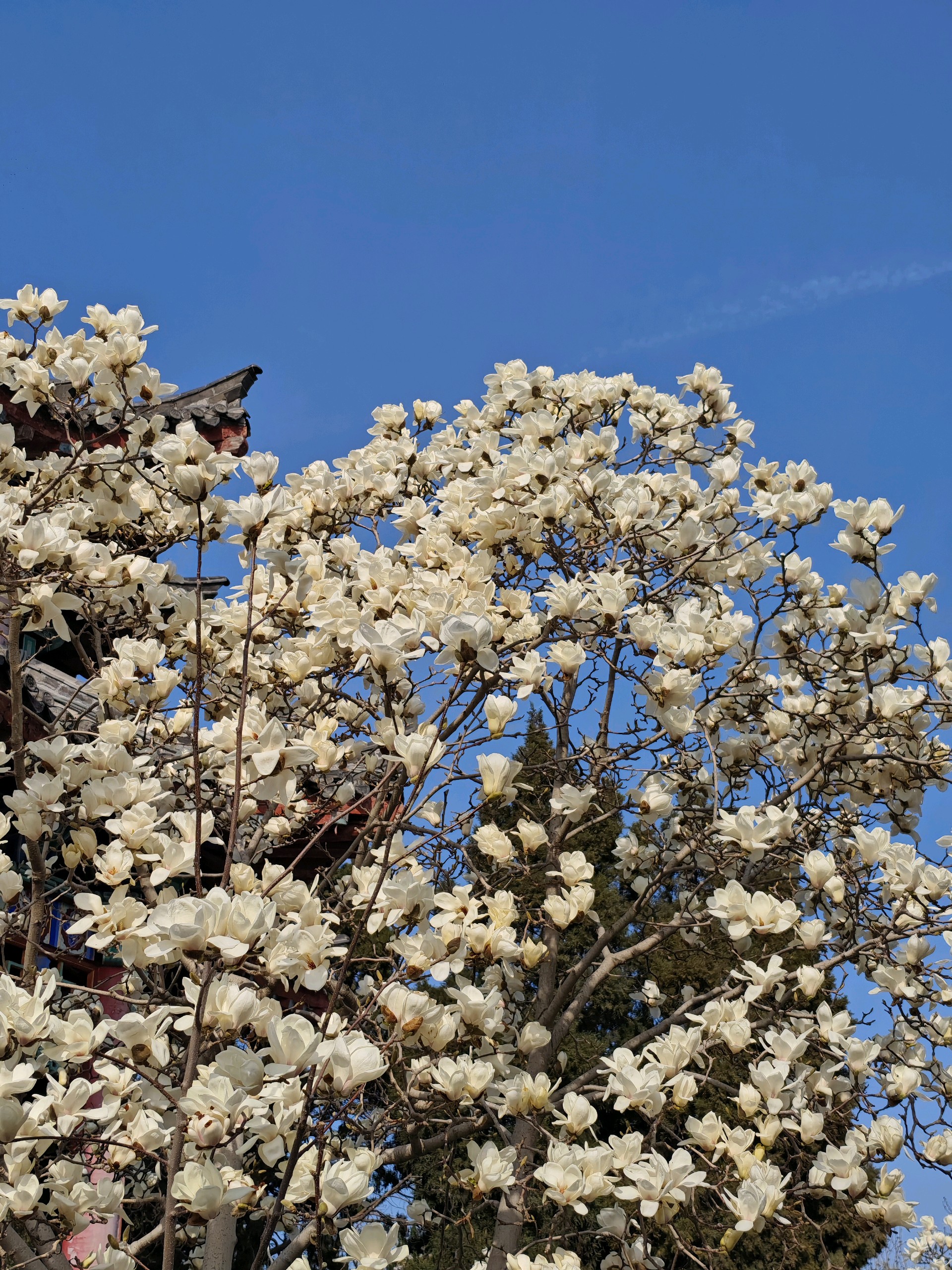 大明湖畔的白玉兰开得早些,百花公园要晚几天。