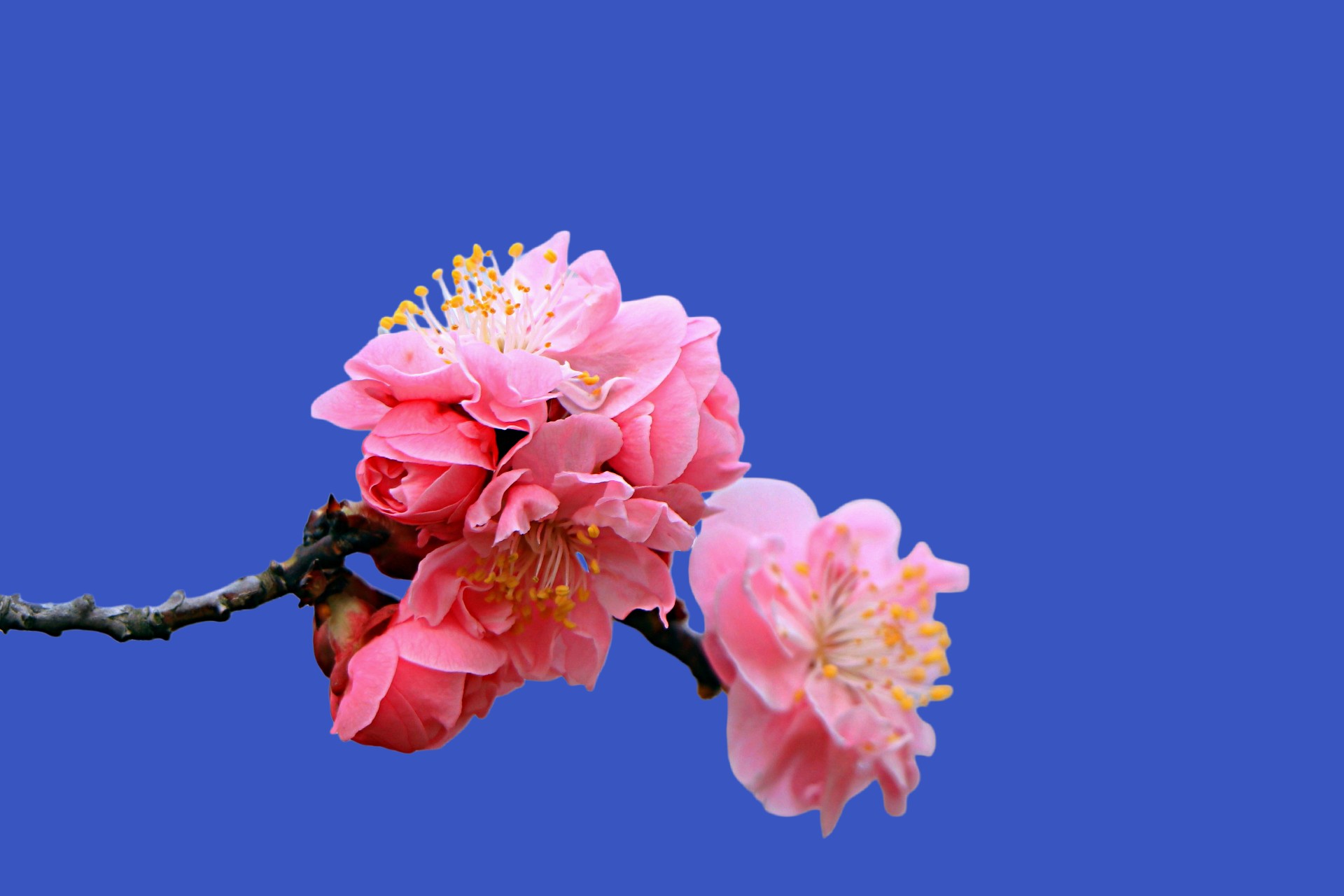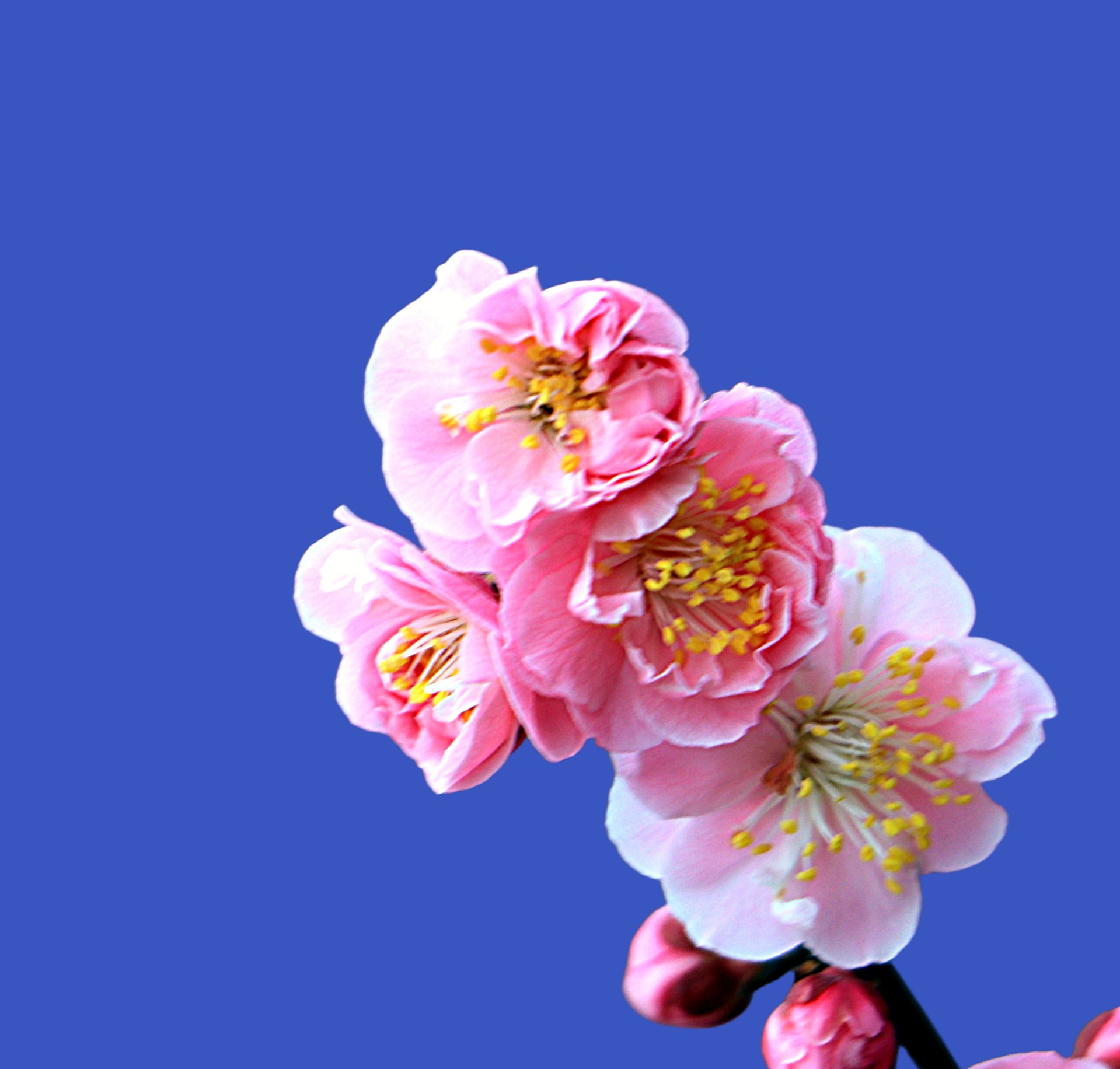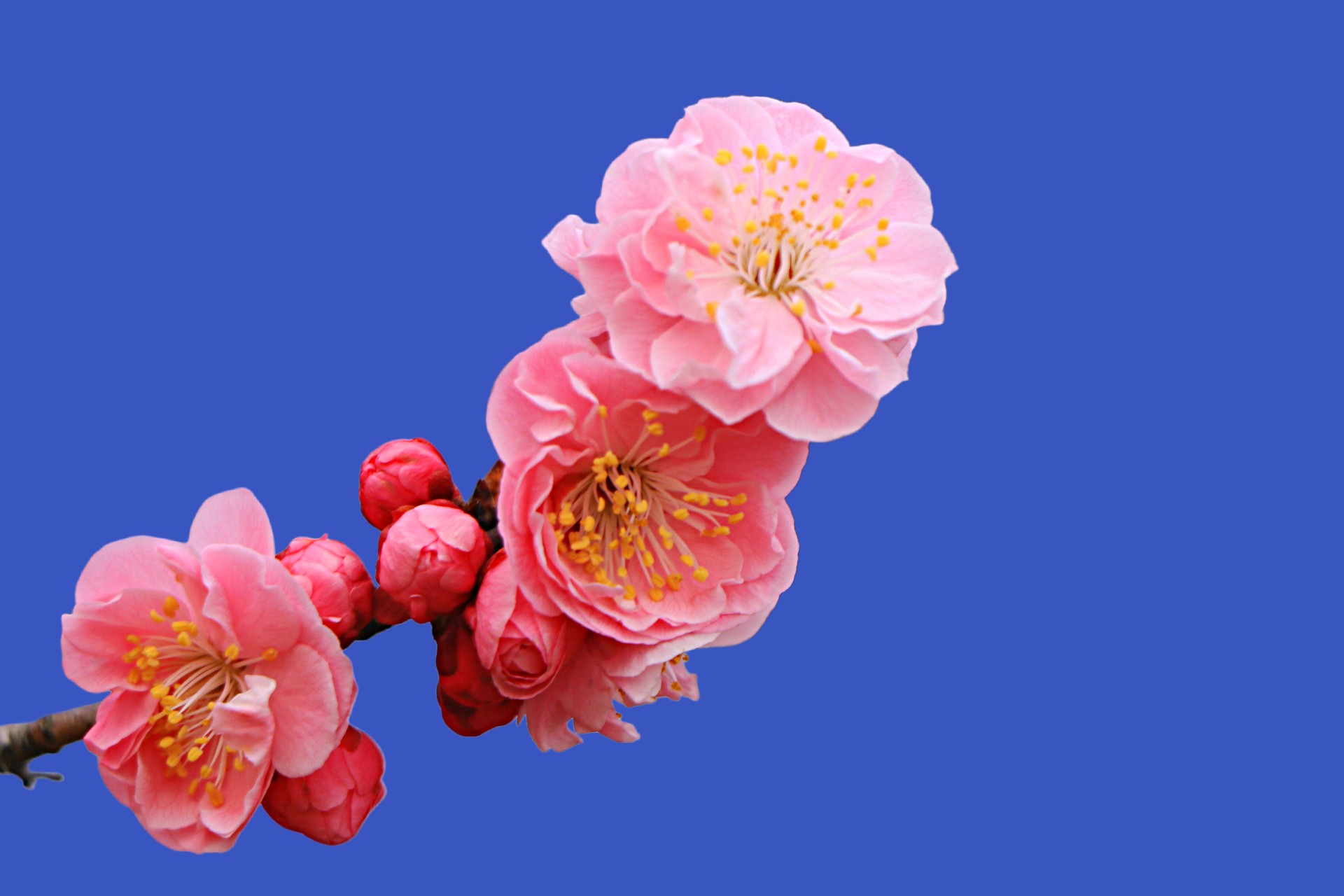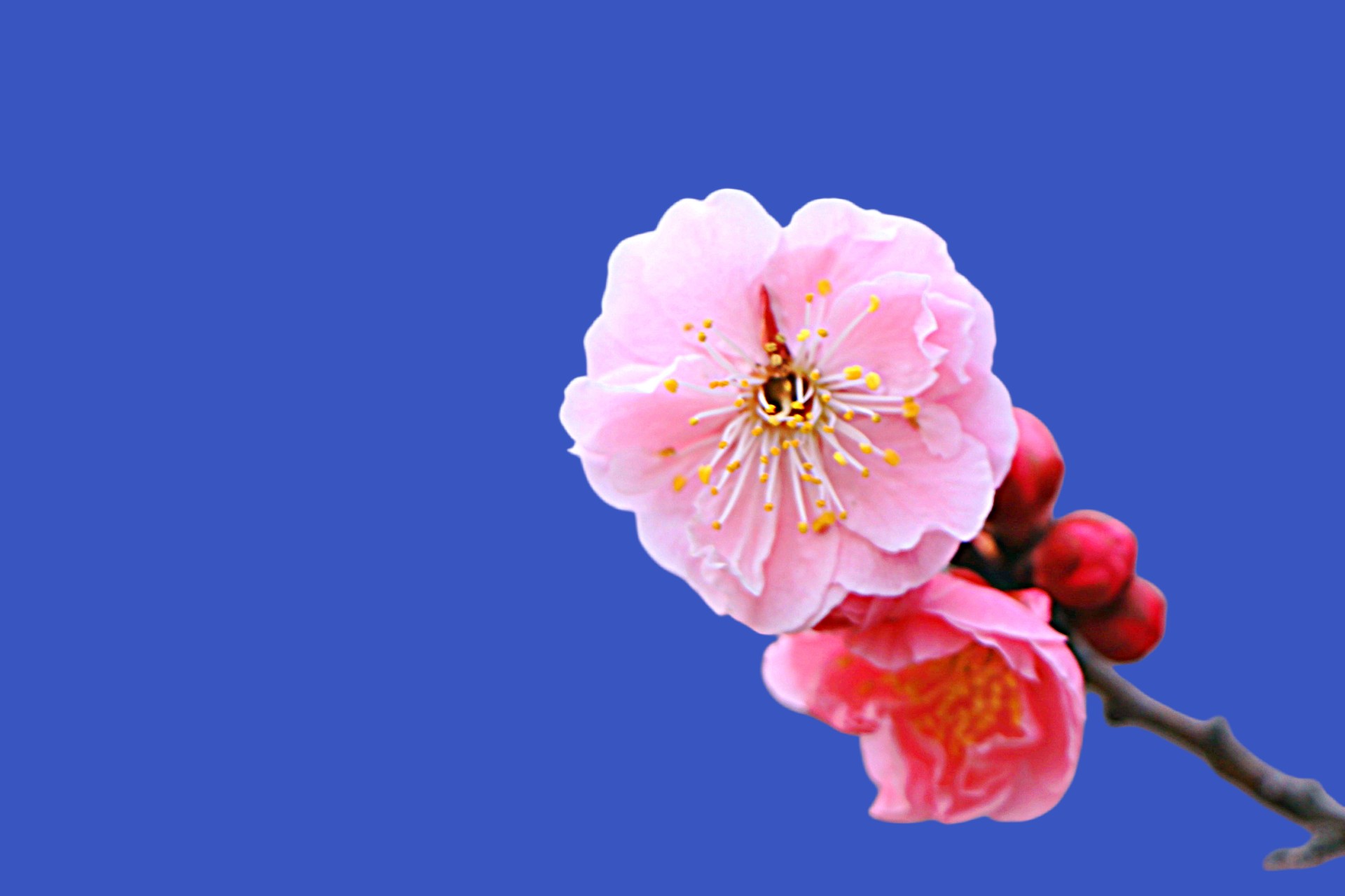 粉色的梅花鲜艳动人,在蔚蓝的天空下绽放。春天来了,让我们一起感受大自然的美丽吧!