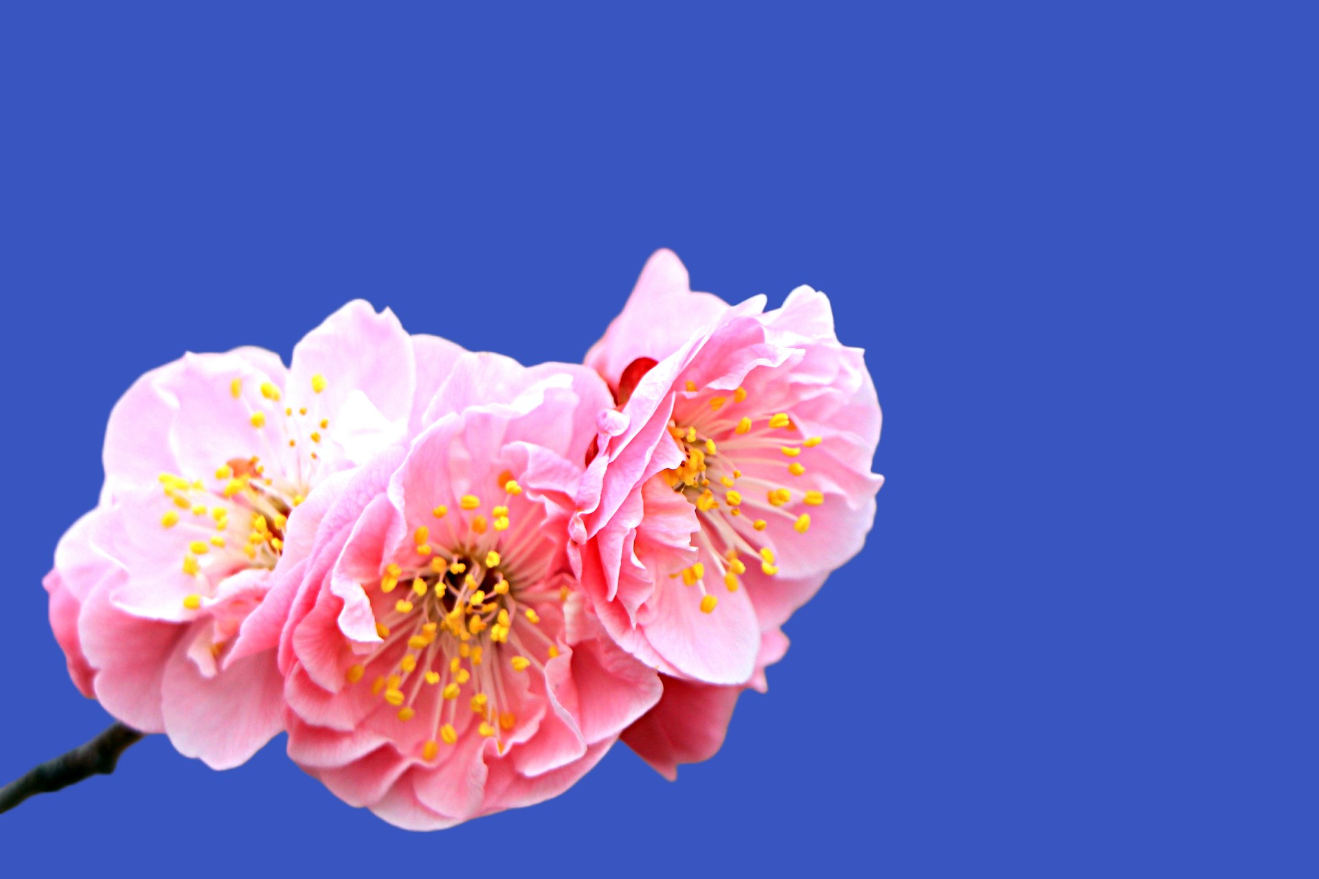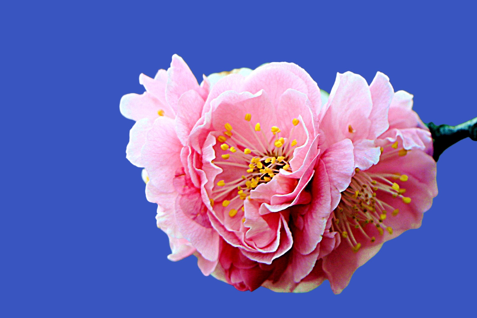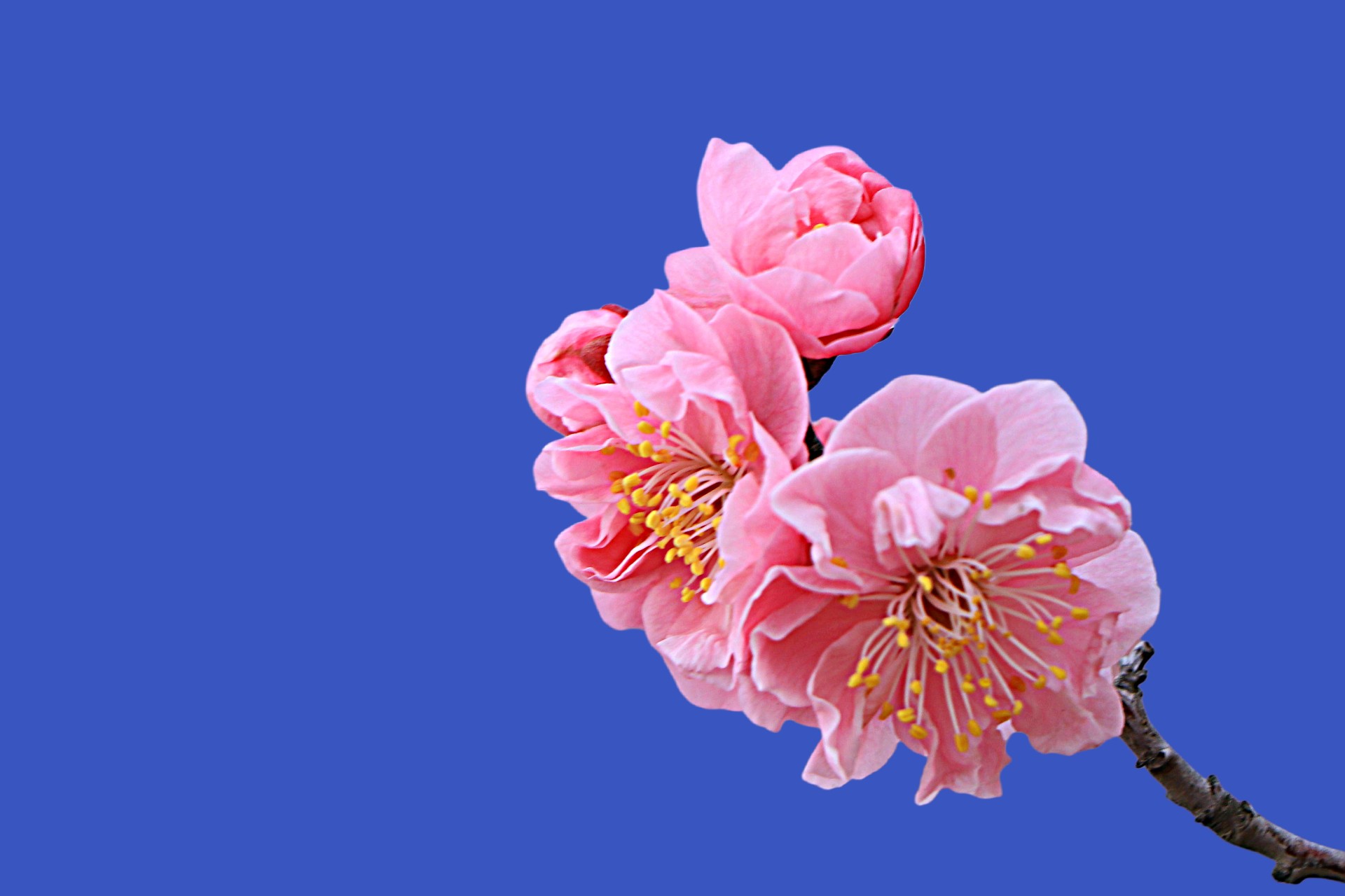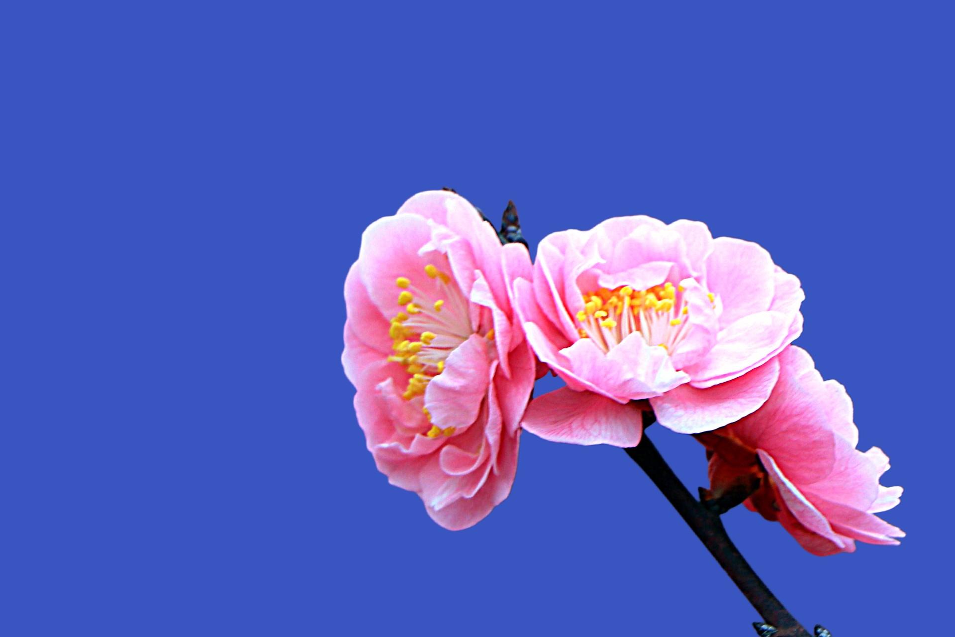 粉色的梅花鲜艳动人,在蔚蓝的天空下绽放。春天来了,让我们一起感受大自然的美丽吧!