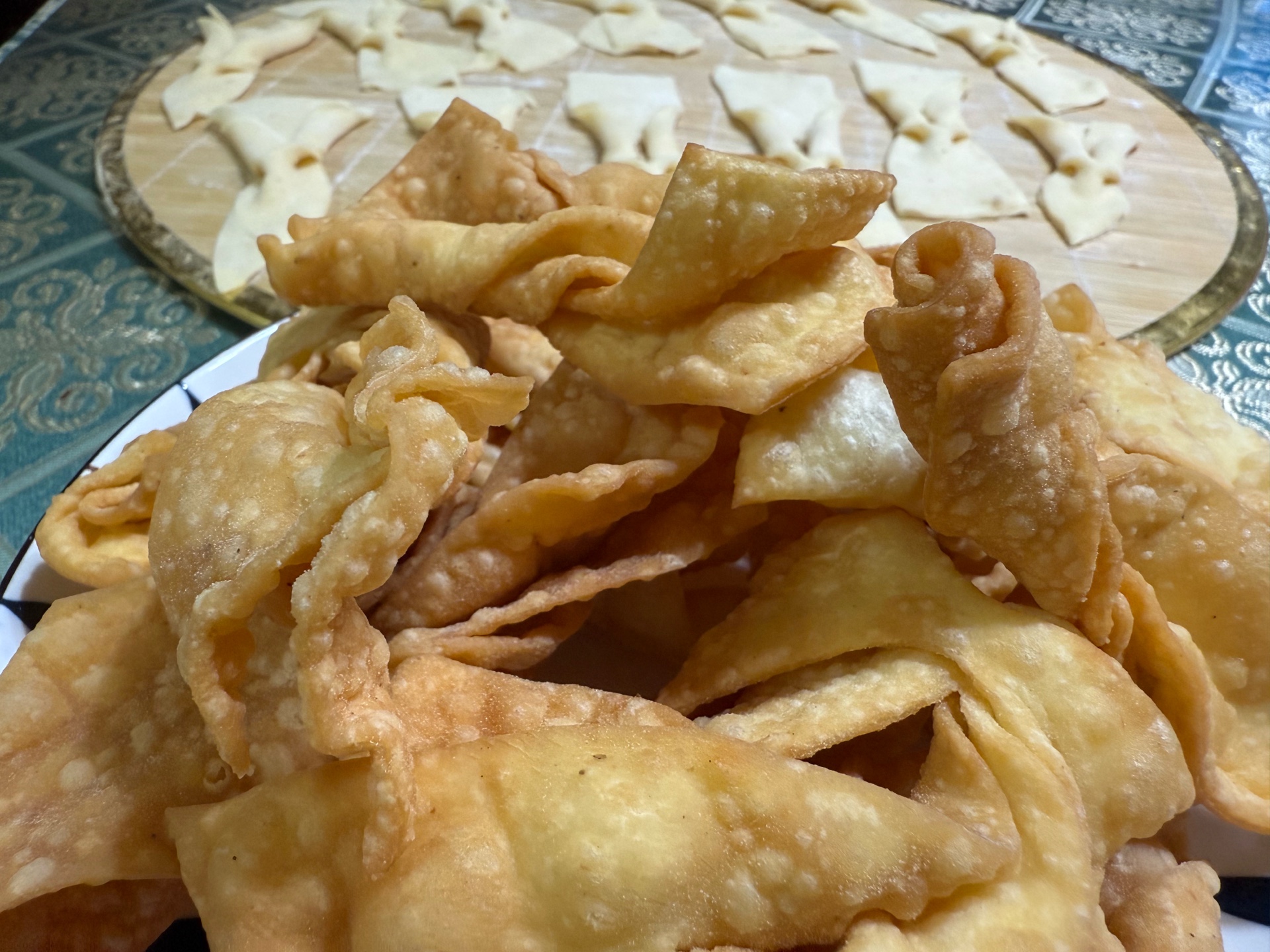 过年时没有炸麻叶,今天没事想吃了,和老公一起动手,一个小时就能吃上了,酥酥脆脆的好吃!