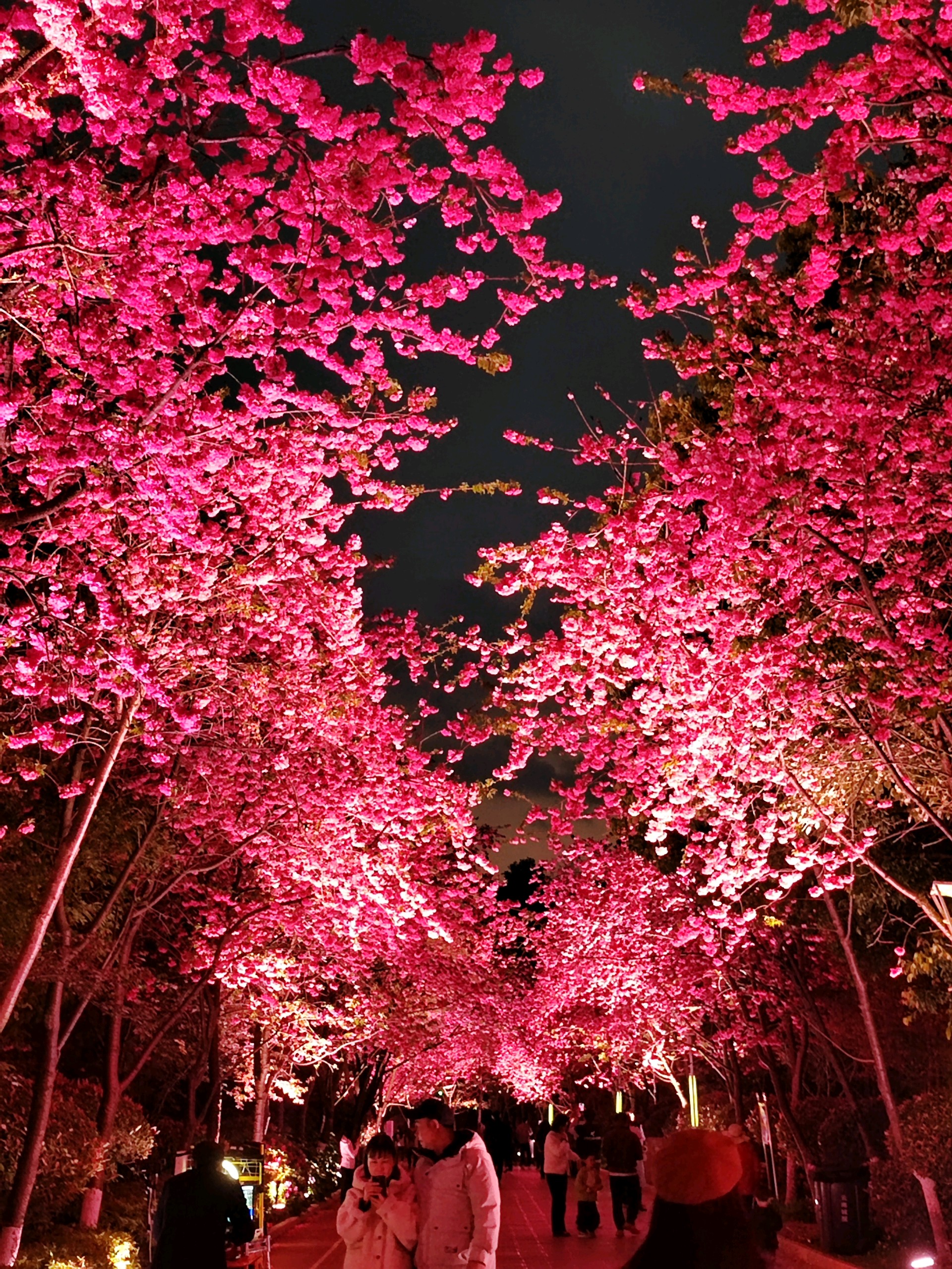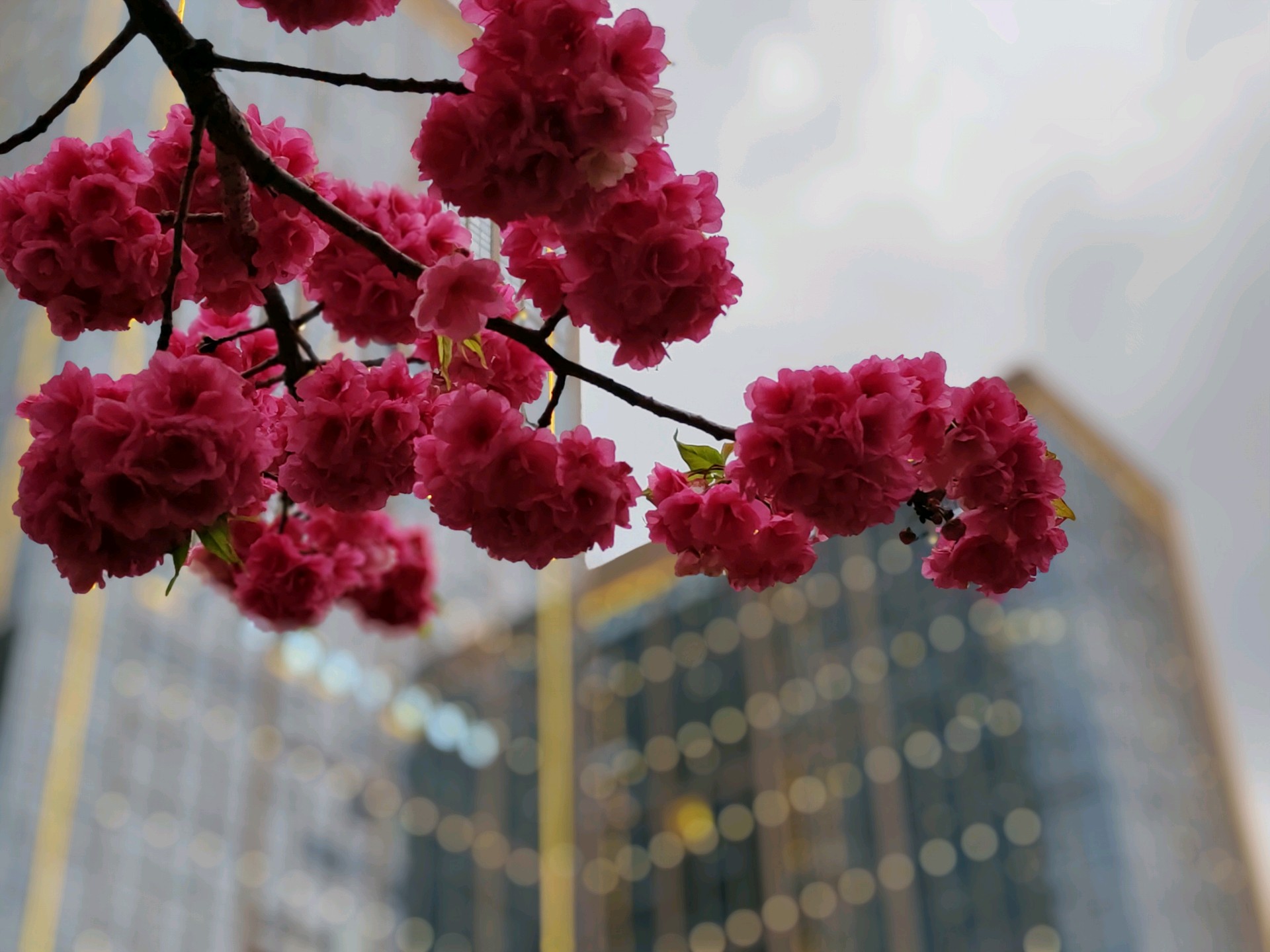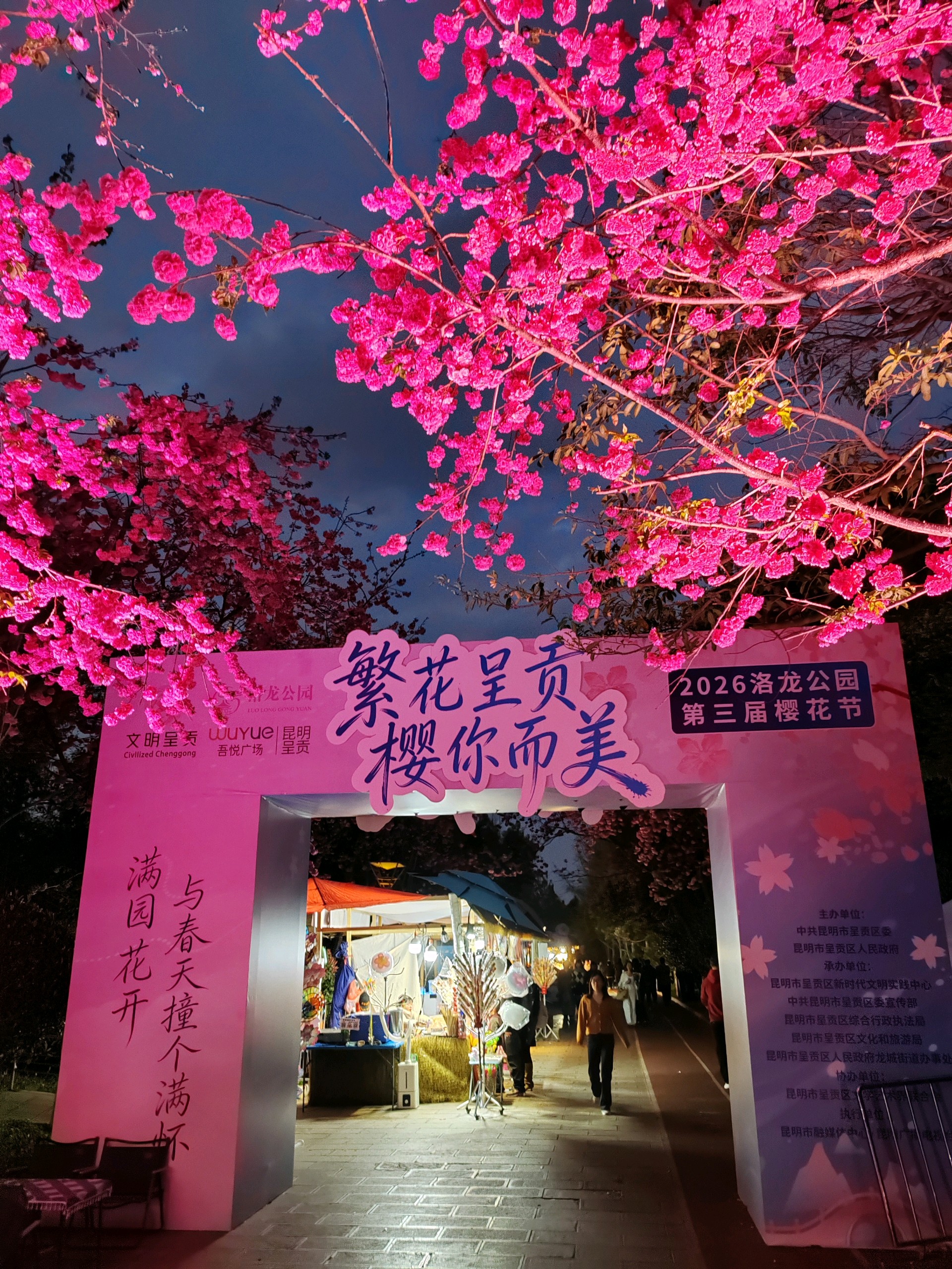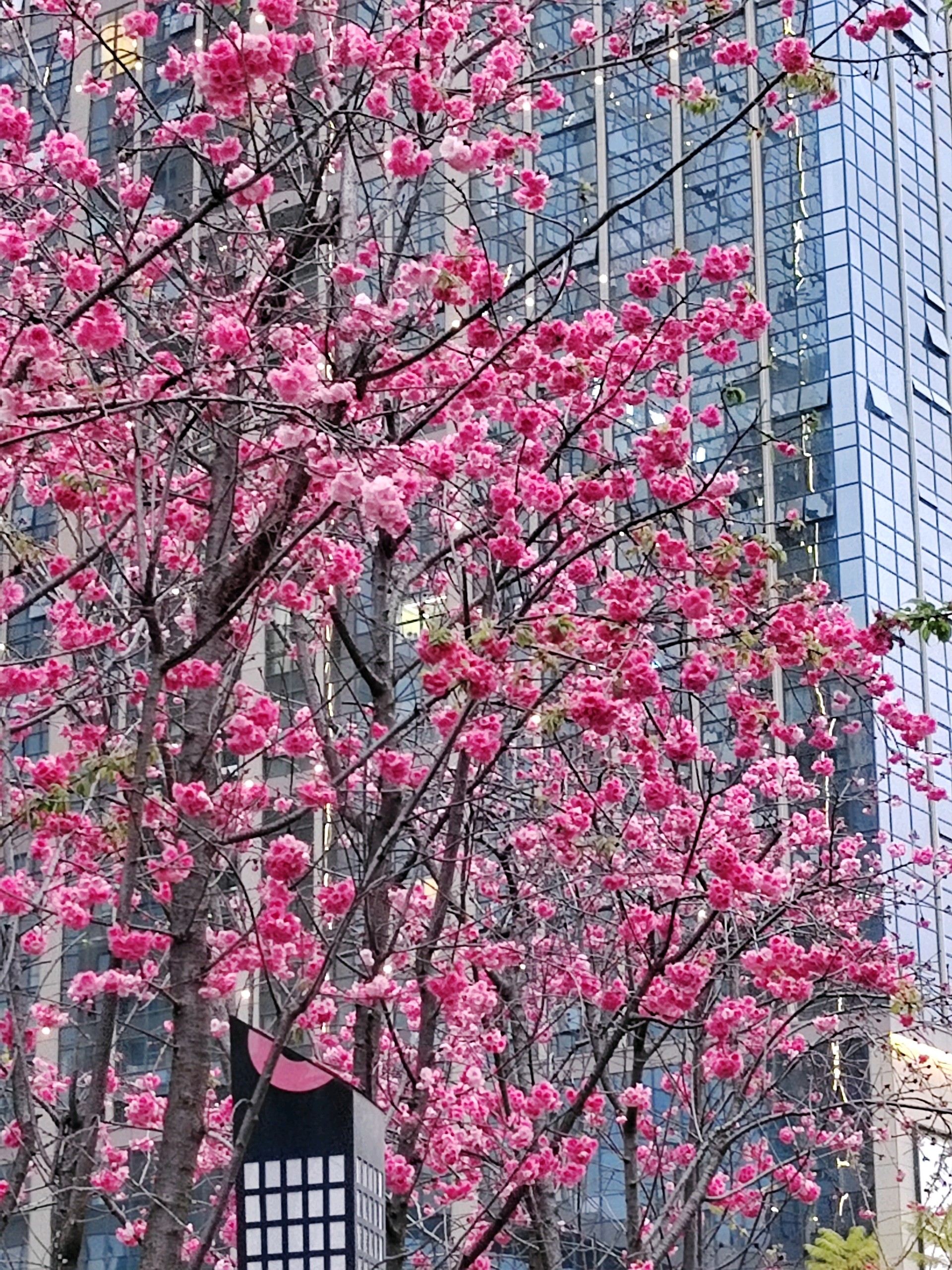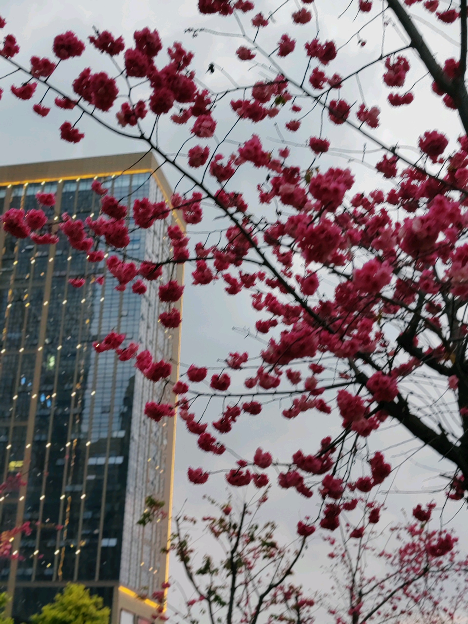 春城樱花盛开,朵朵红花呈花海,吸引游人驻足观看,