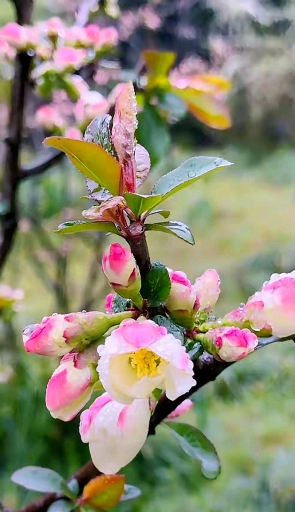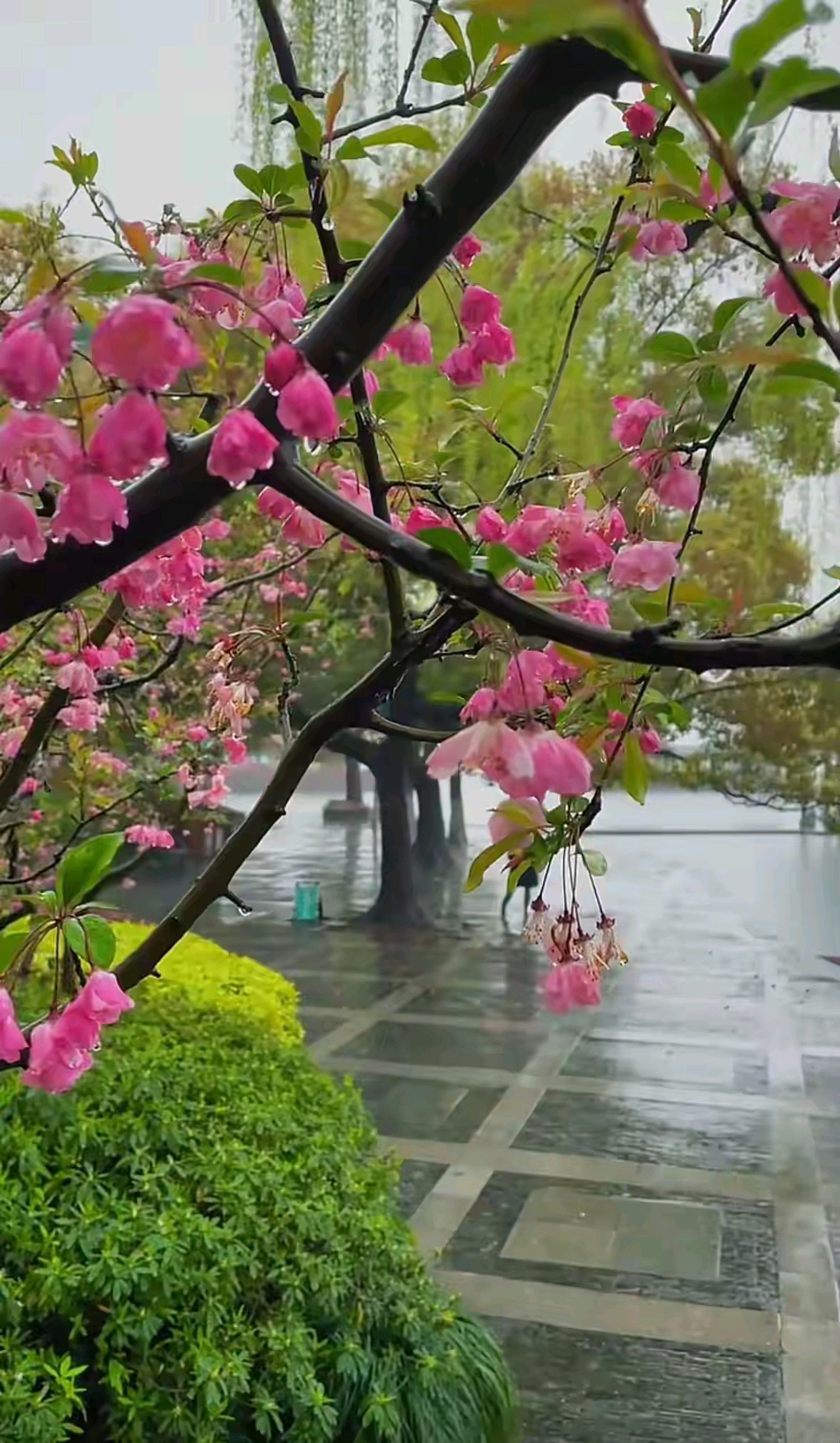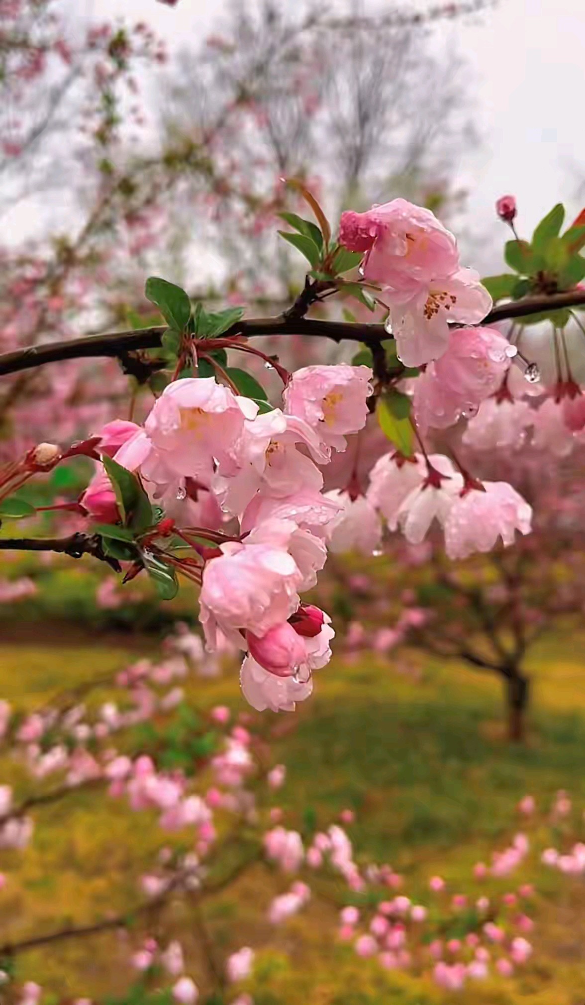 春风轻拂,海棠花绽满枝头,粉瓣在暖阳中轻颤,与嫩柳、新草共绘出一幅灵动的春日画卷,满是生机与诗意。