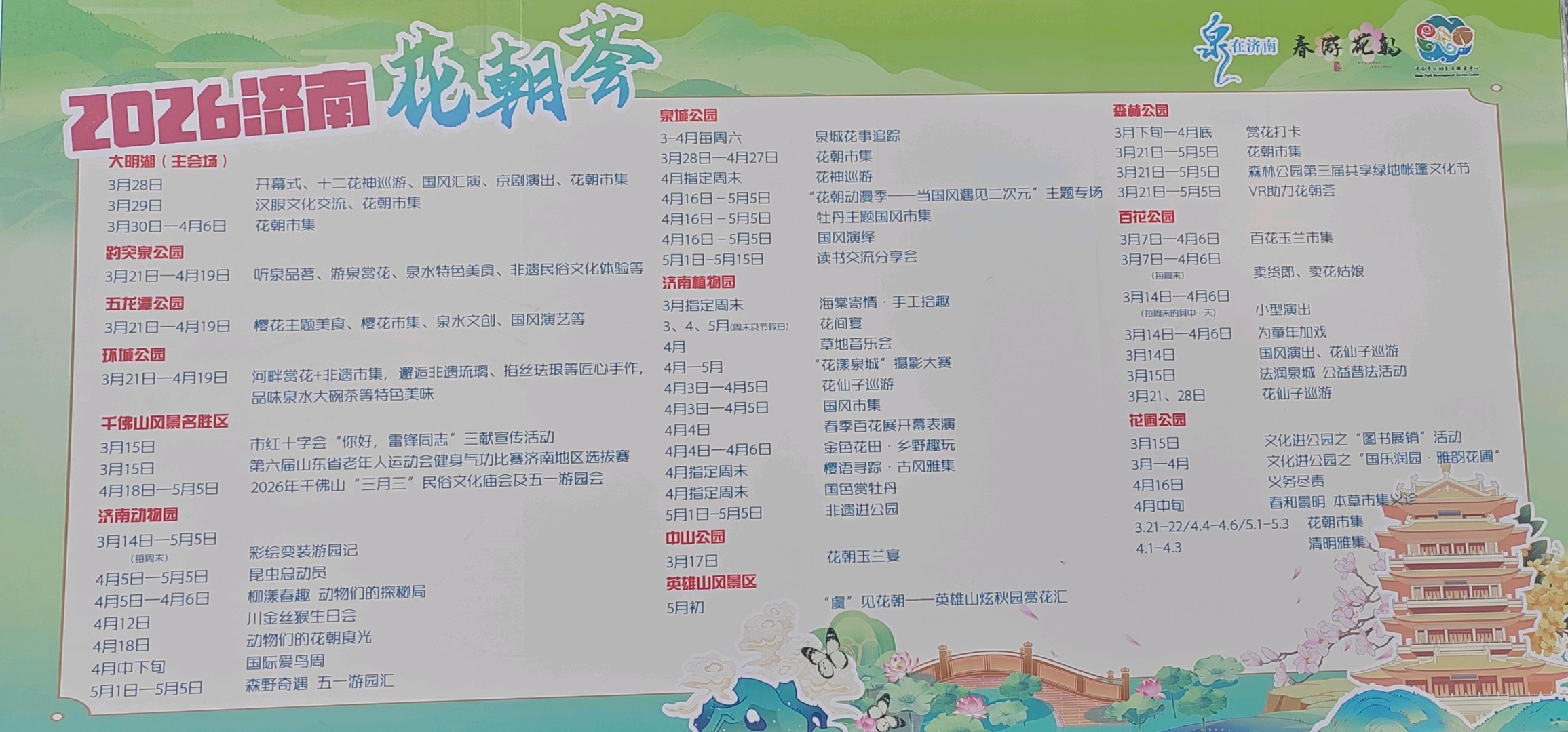 济南2026年花朝节活动丰富多彩,百花公园、大明湖、趵突泉、五龙潭等景区推出特色活动,赏花、听泉、品美食,尽享春日盛景。快来济南,感受花的浪漫与美好!