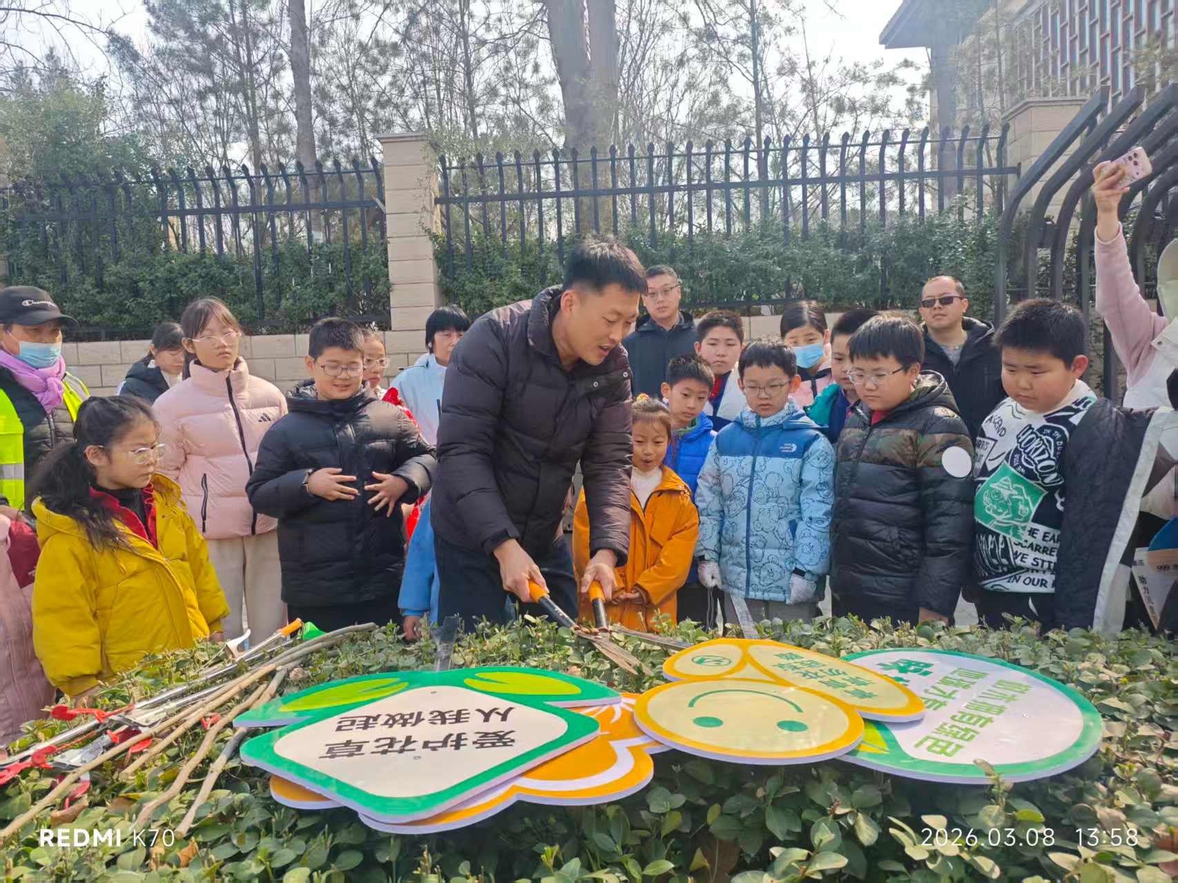 阳光明媚,孩子们在老师的带领下户外活动,共同参与环保行动。让我们携手保护地球家园,让绿色成为永恒的色彩!💚🌳🌱