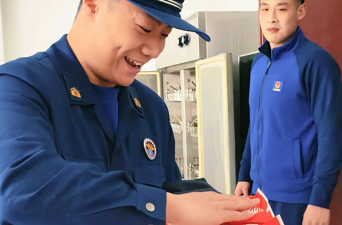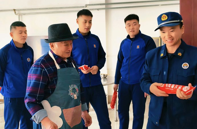 3月17日下午,我和赵大奎、孙保玲、张建民、赵桂兰,来到美里湖消防救援站,给孩子们烙葱花油饼。