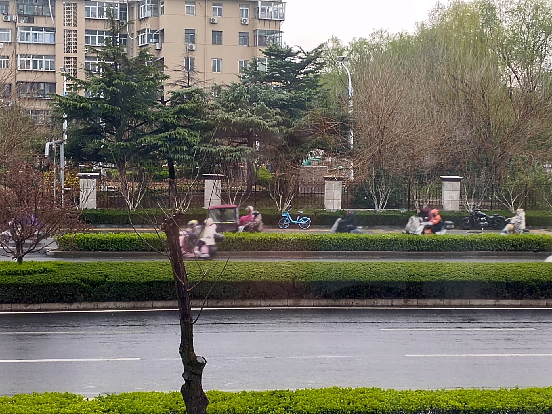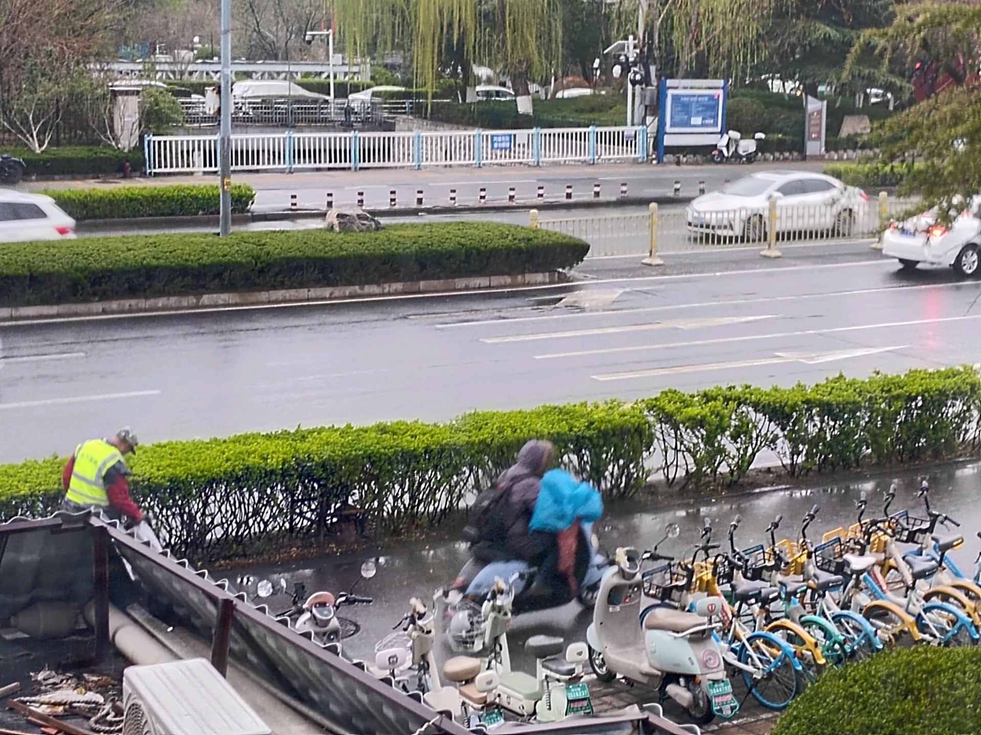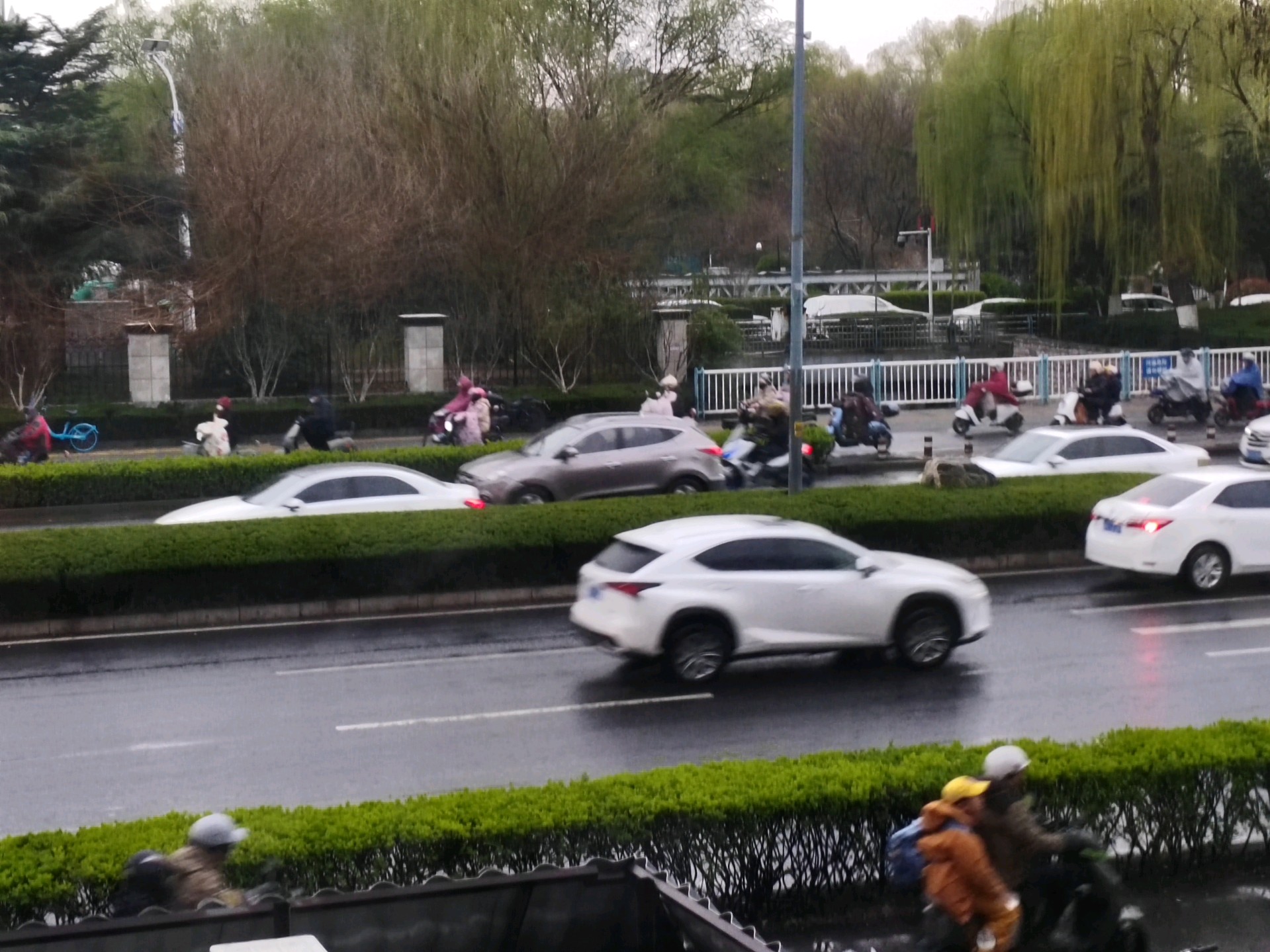预报的今天有雨不期而至,风雨交加,气温较低,出门注意保暖。