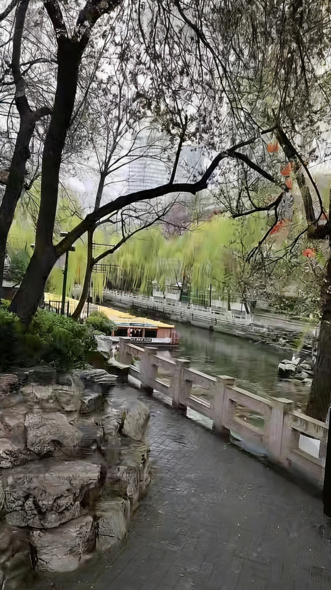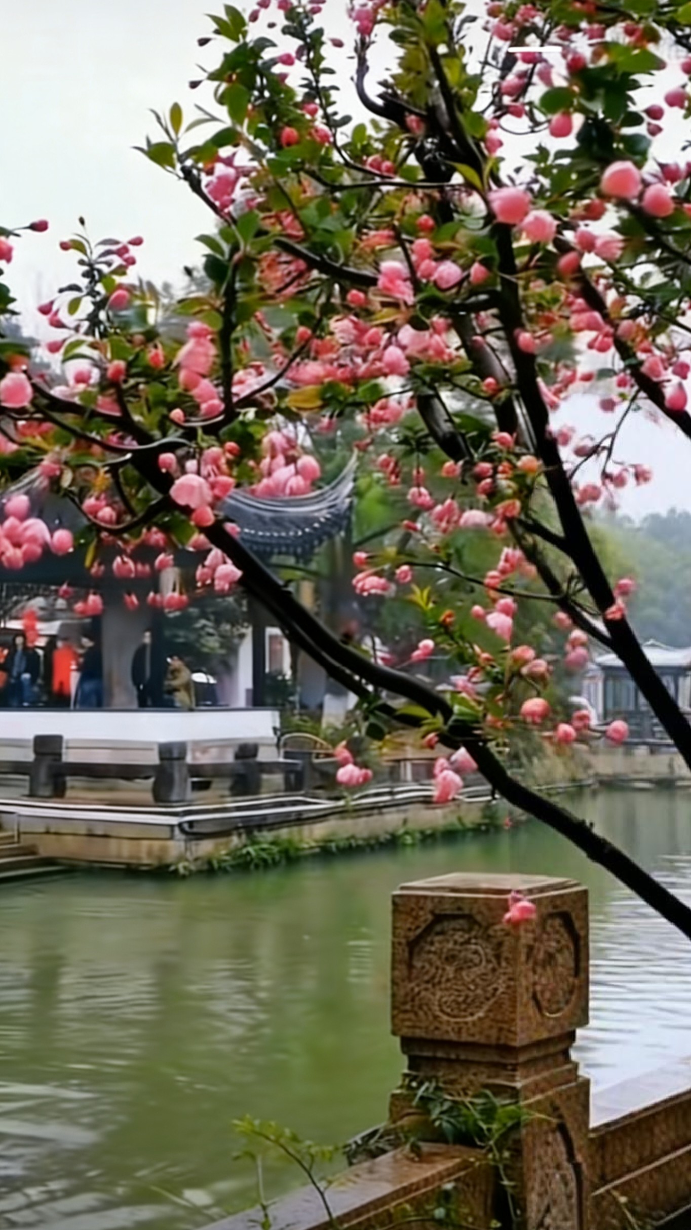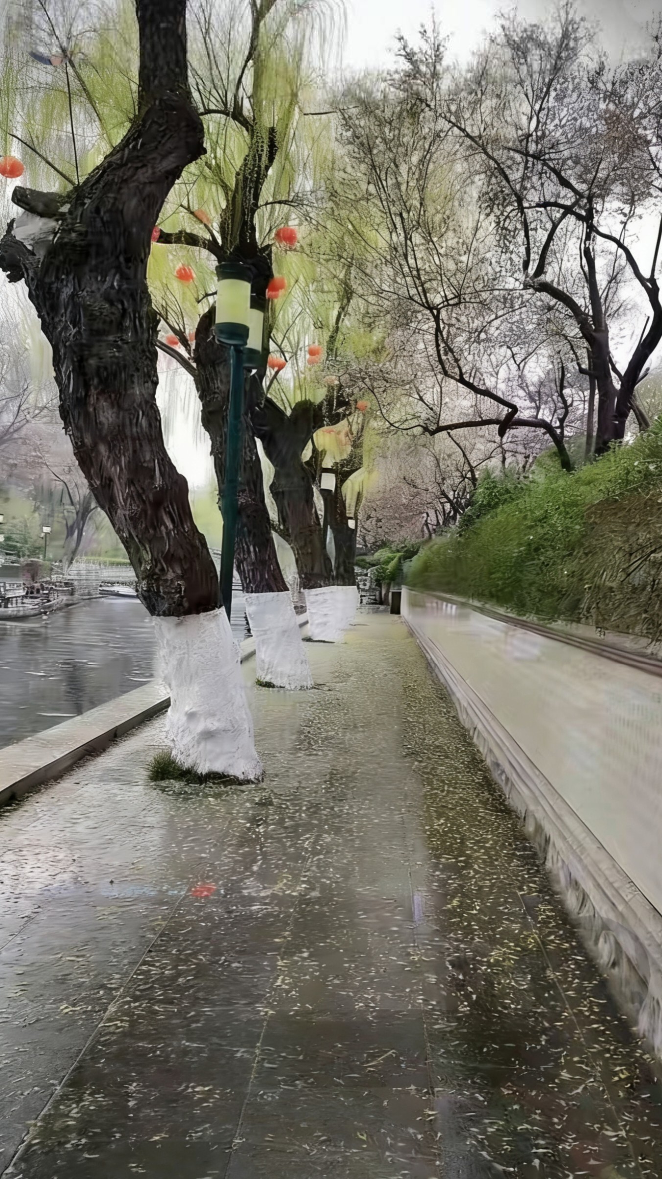 今天早晨,下起了小雨,雨后的护城河清新美丽,漫步河边,能闻到青草的味道,夹带着梅花的花香,真有种心旷神怡的感觉。