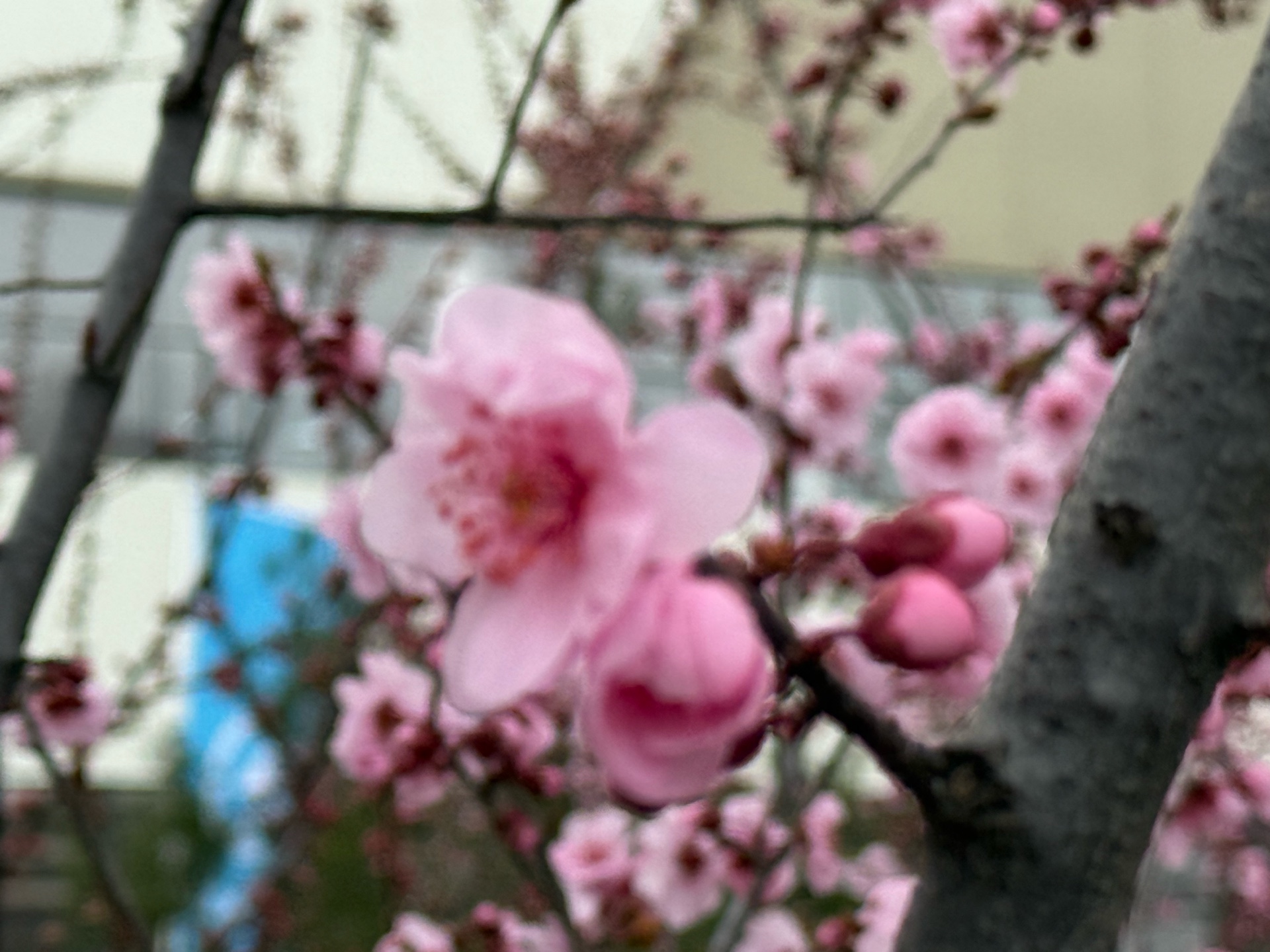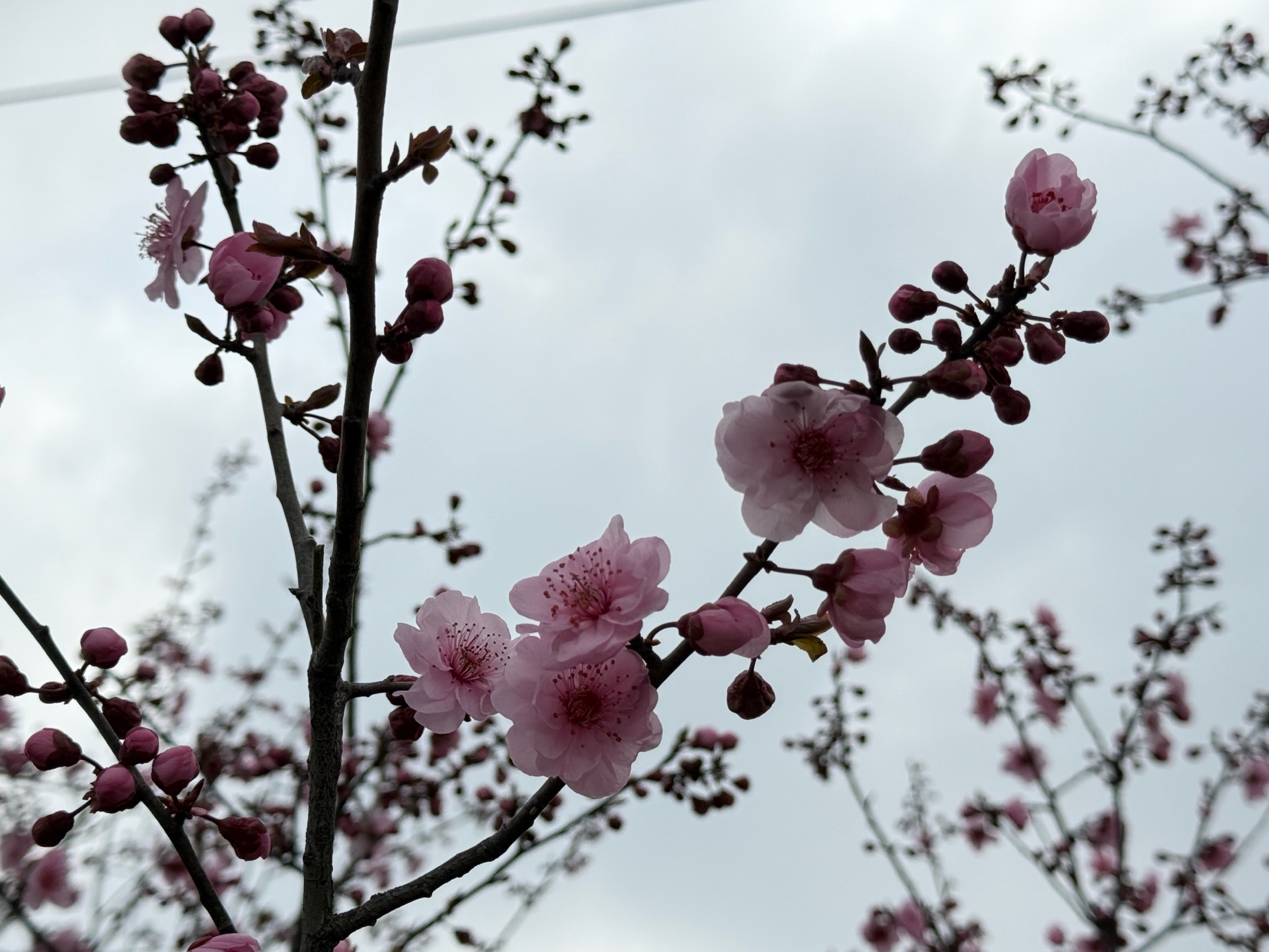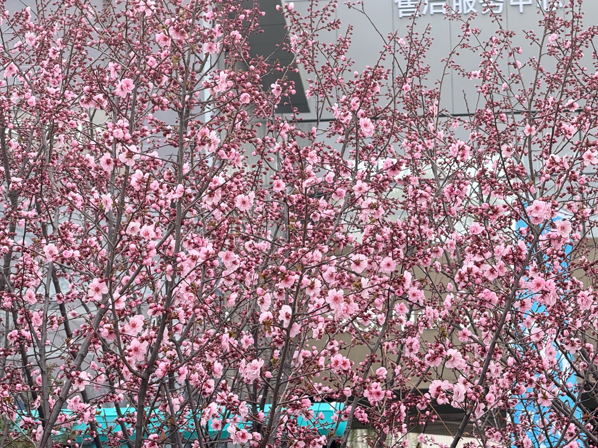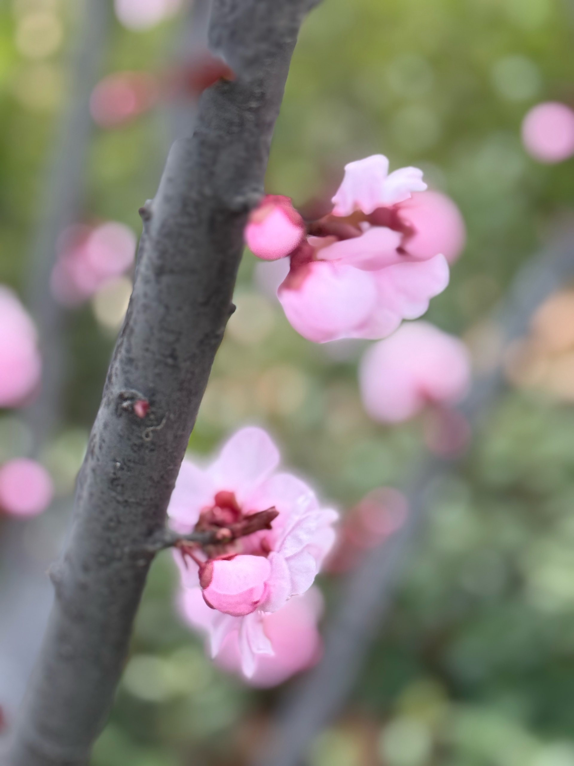 经十路路边的梅花盛开俏枝头,娇美多姿醉游人,游人前来拍照打卡。