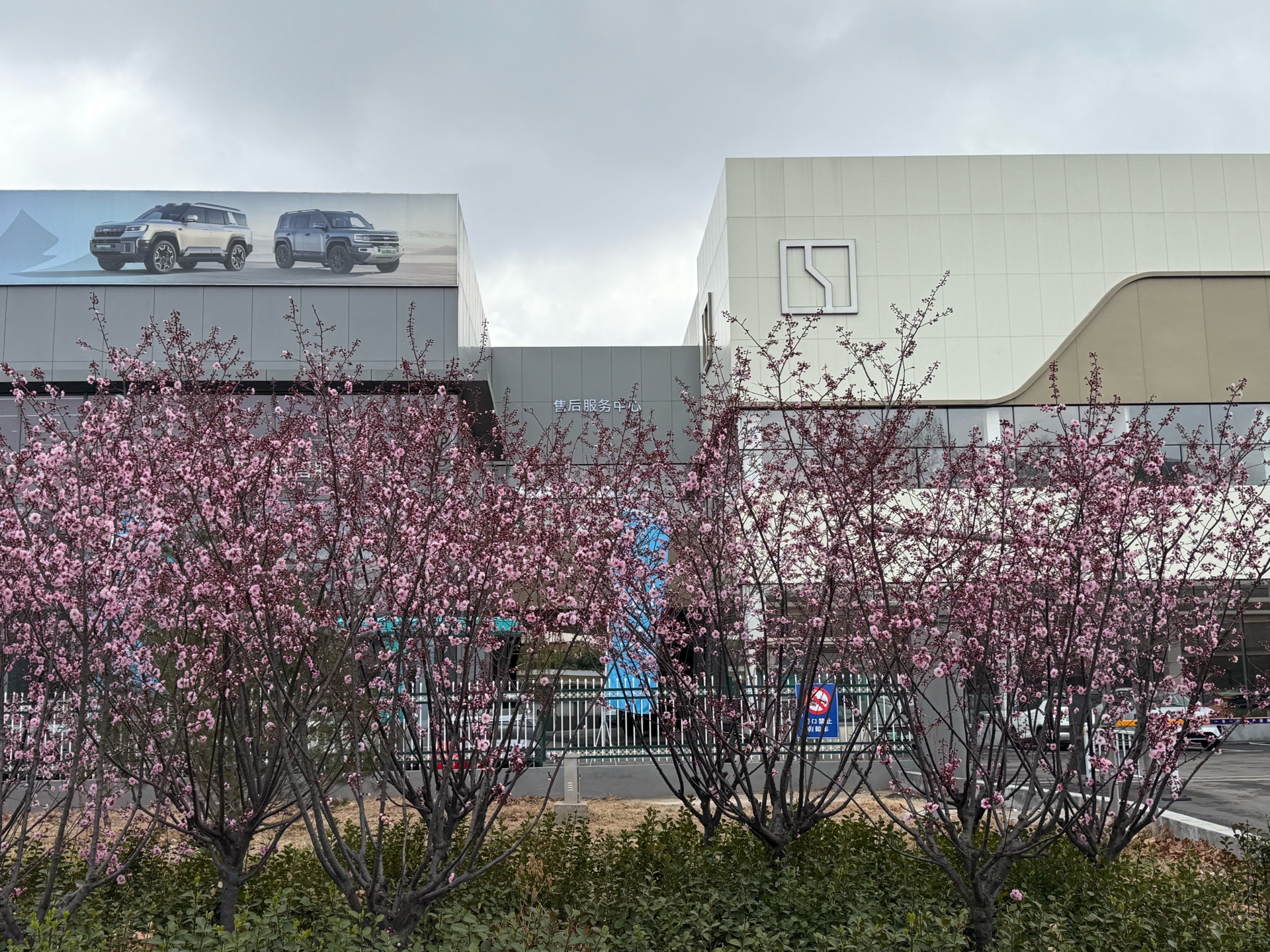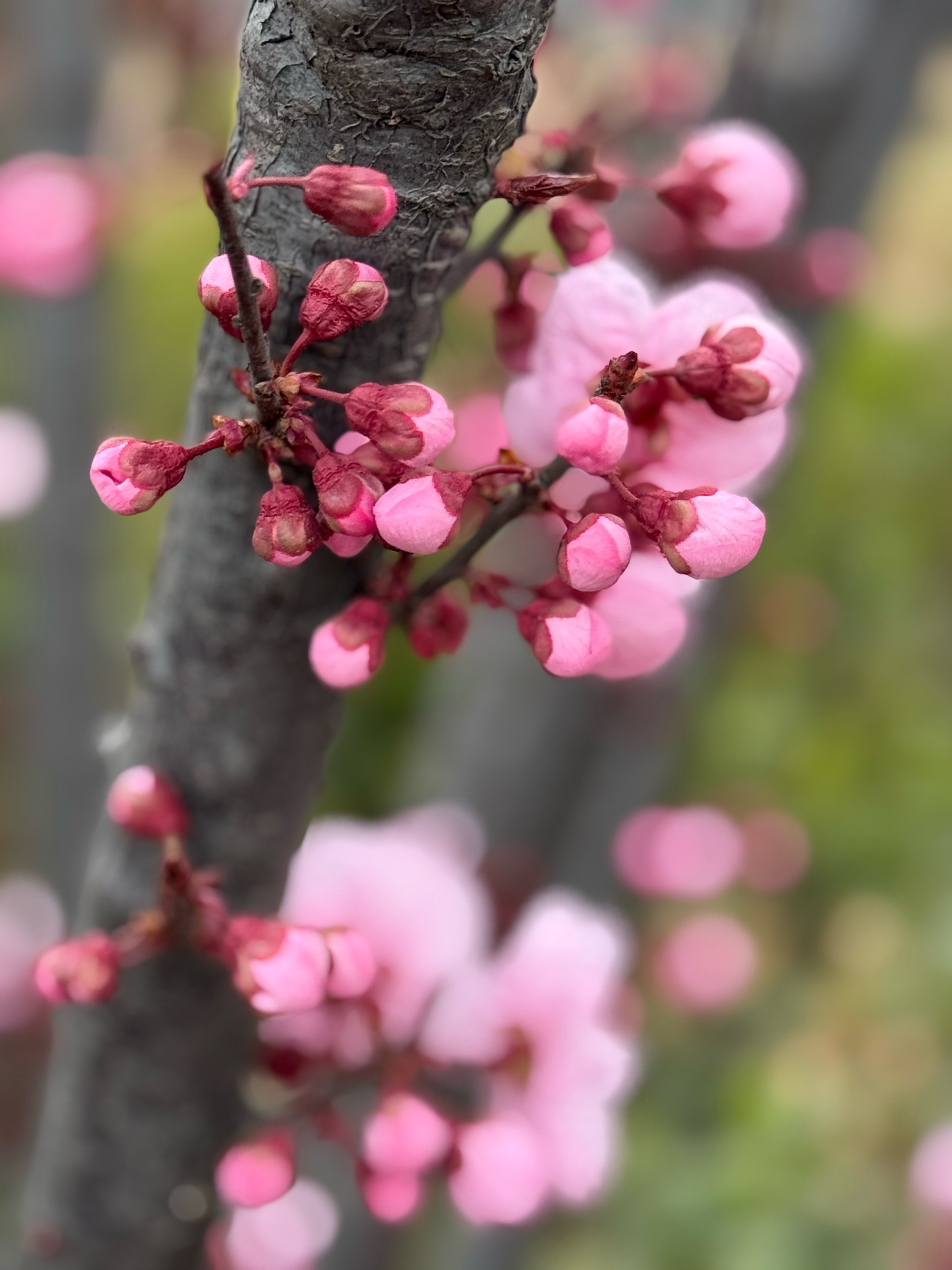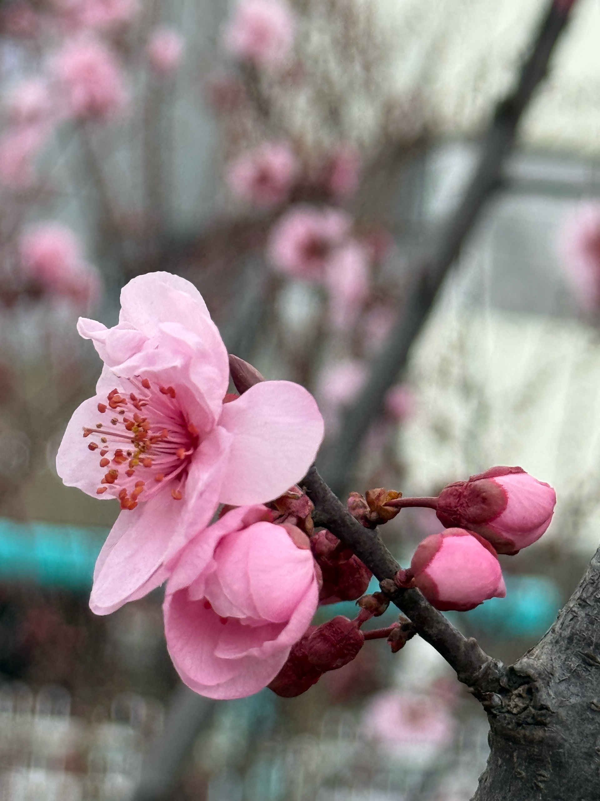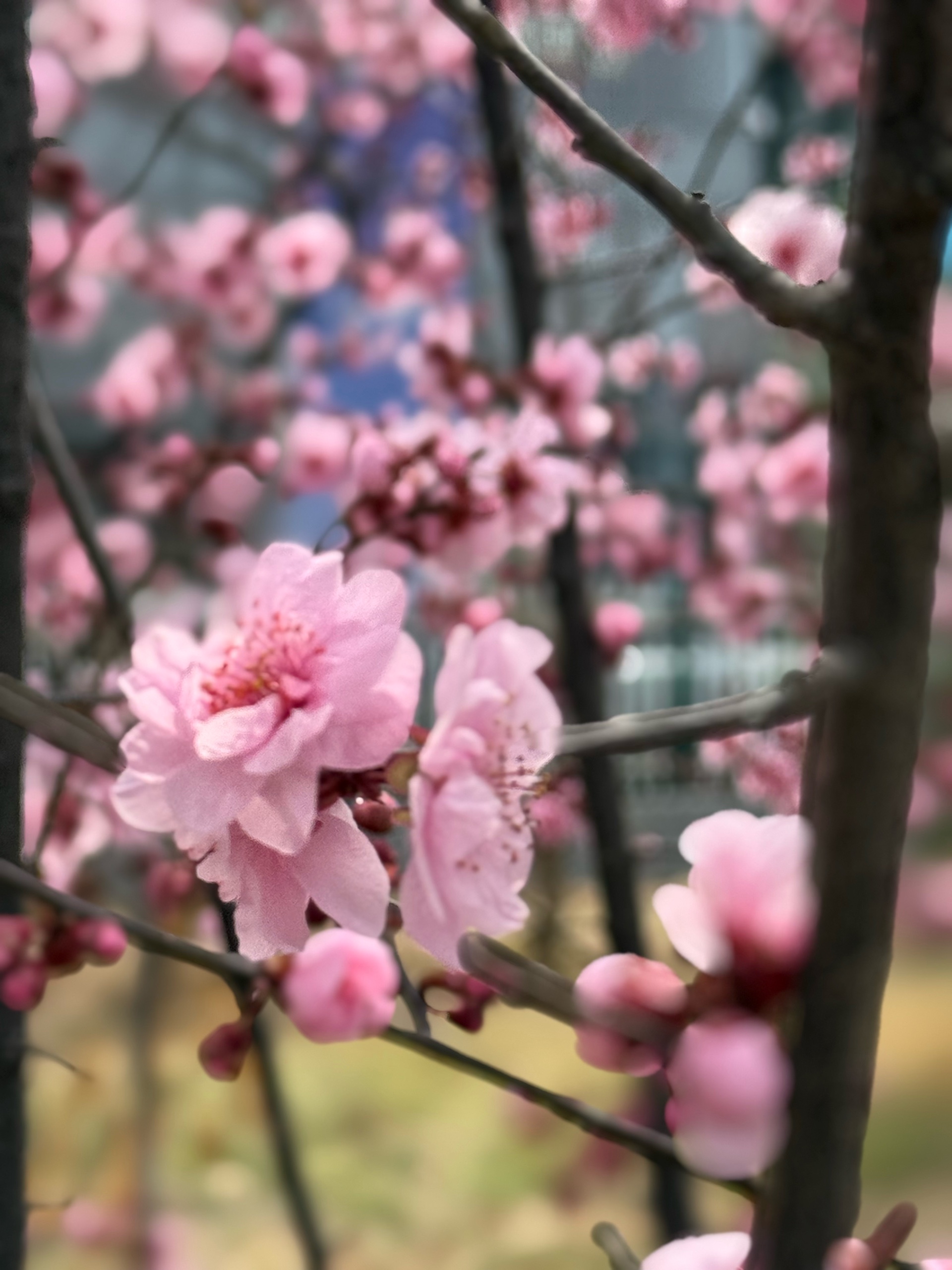 经十路路边的梅花盛开俏枝头,娇美多姿醉游人,游人前来拍照打卡。