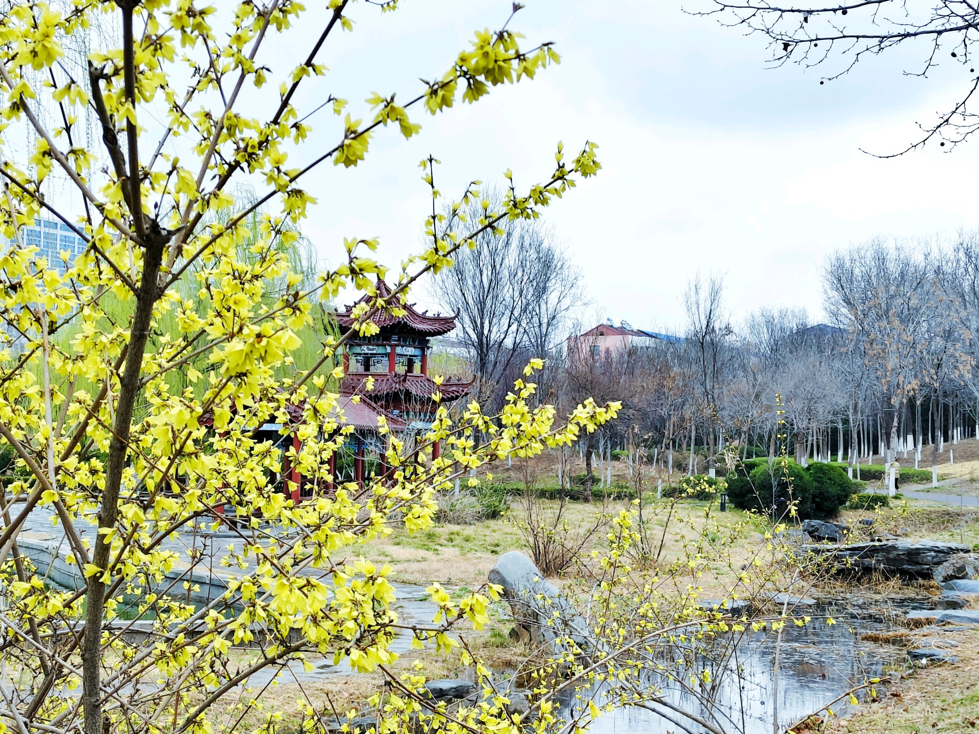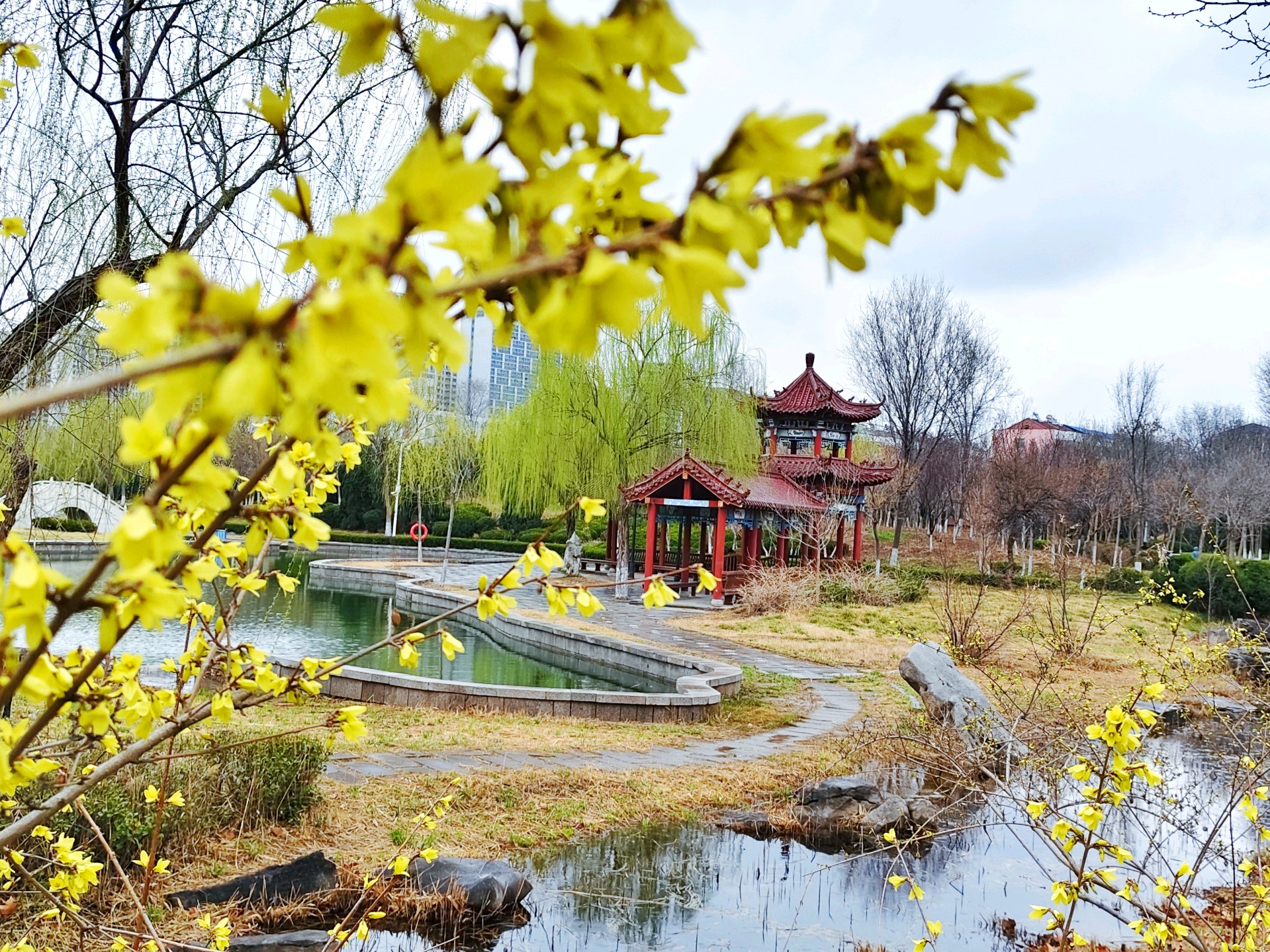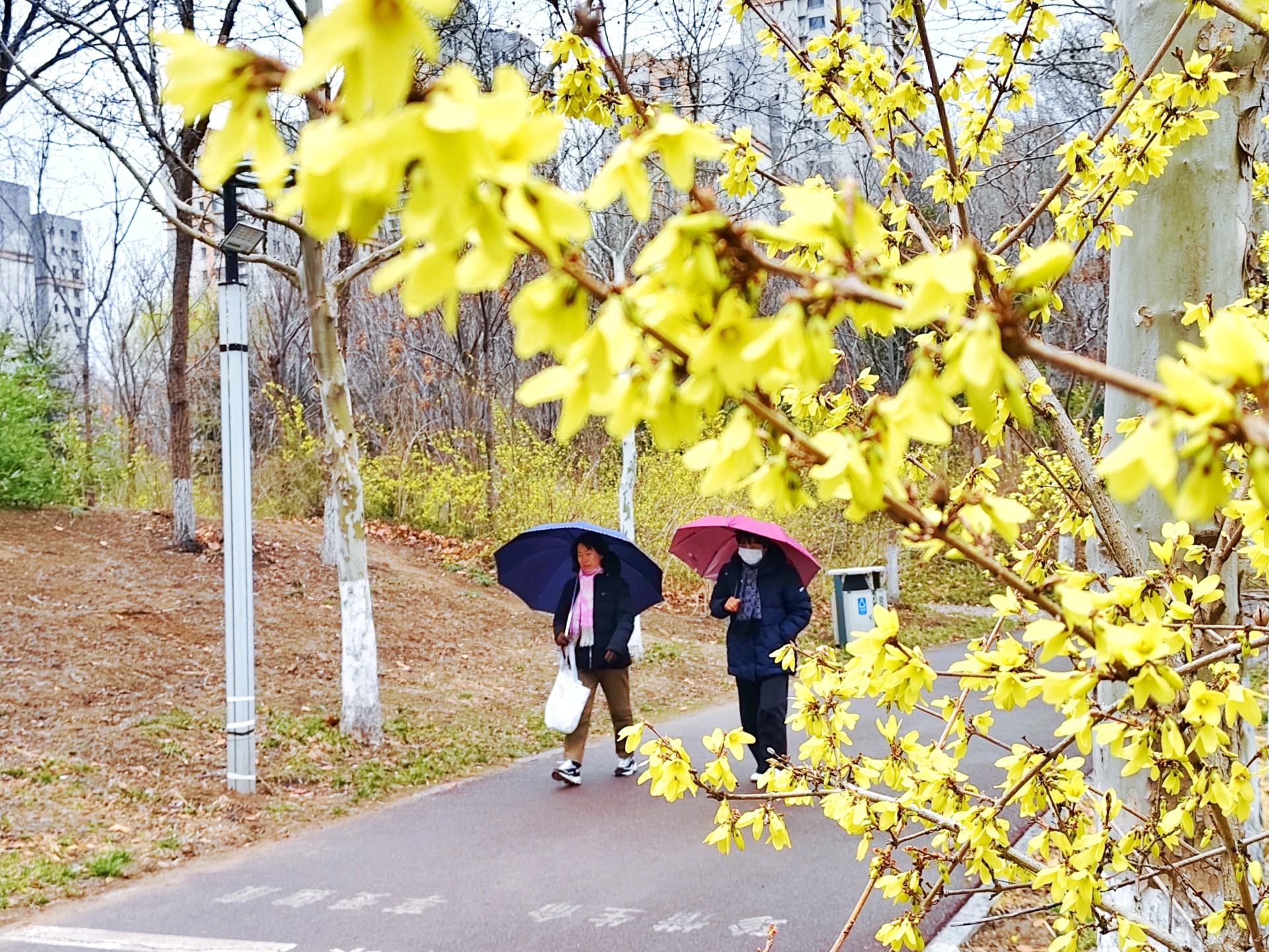 济南市济阳区公园春天美丽的连翘花,春风一拂,连翘便披满金黄。串串小花明媚耀眼,像阳光洒在枝头,给寻春人满眼惊喜。它与迎春争艳,不娇不媚,用热烈灿烂,点亮整个早春,尽显生机与浪漫。图/文张成友