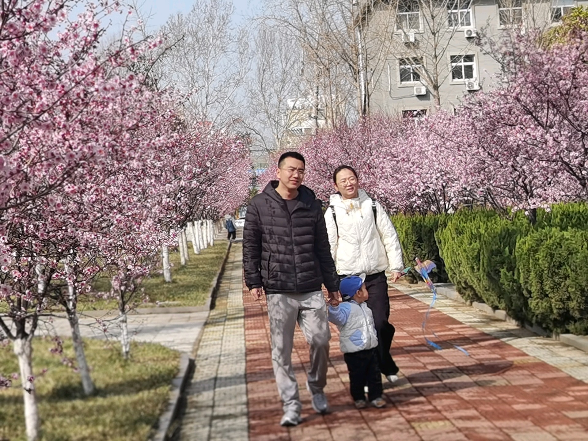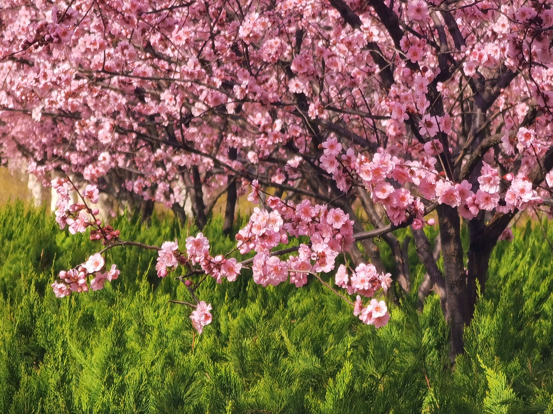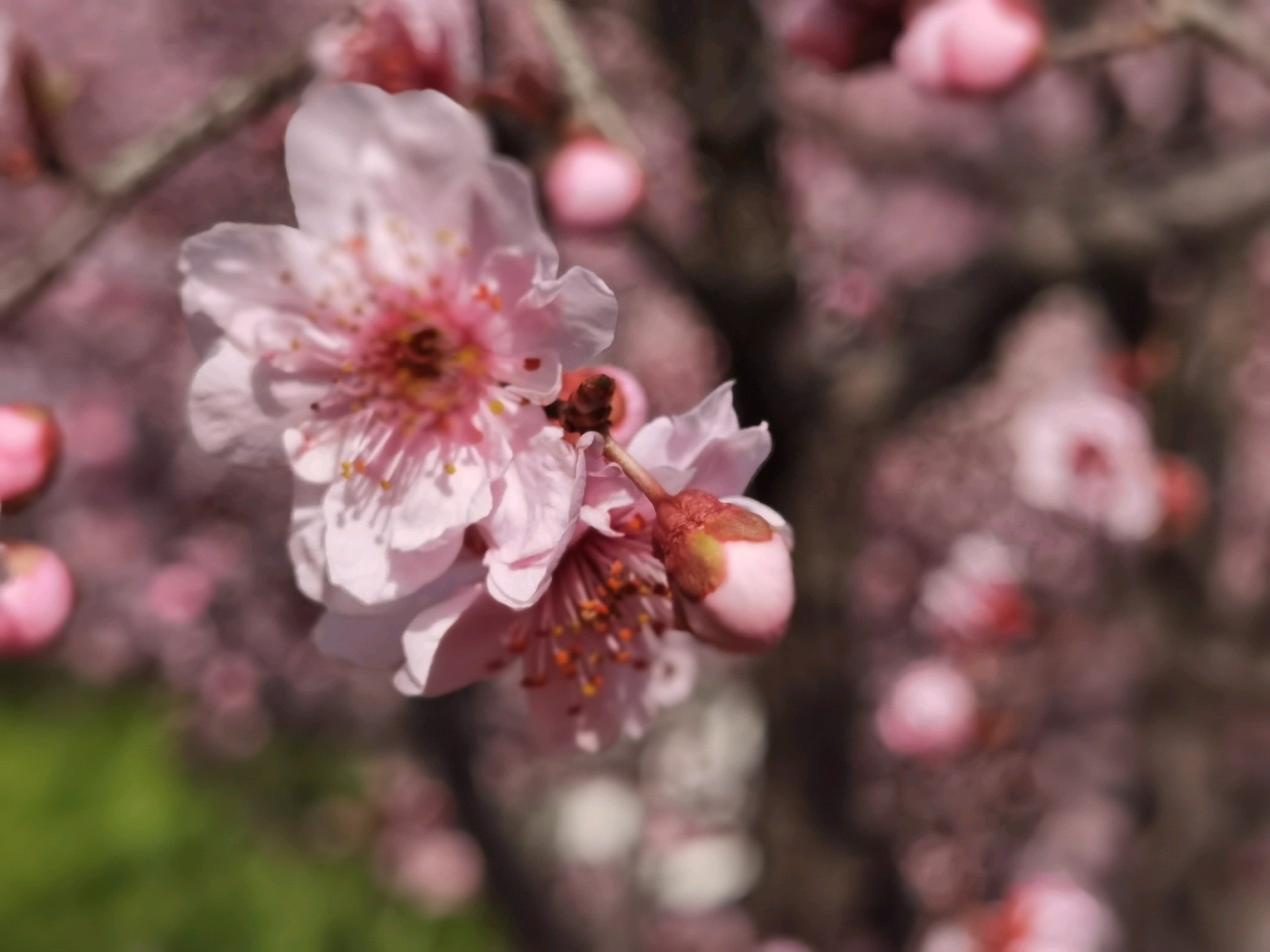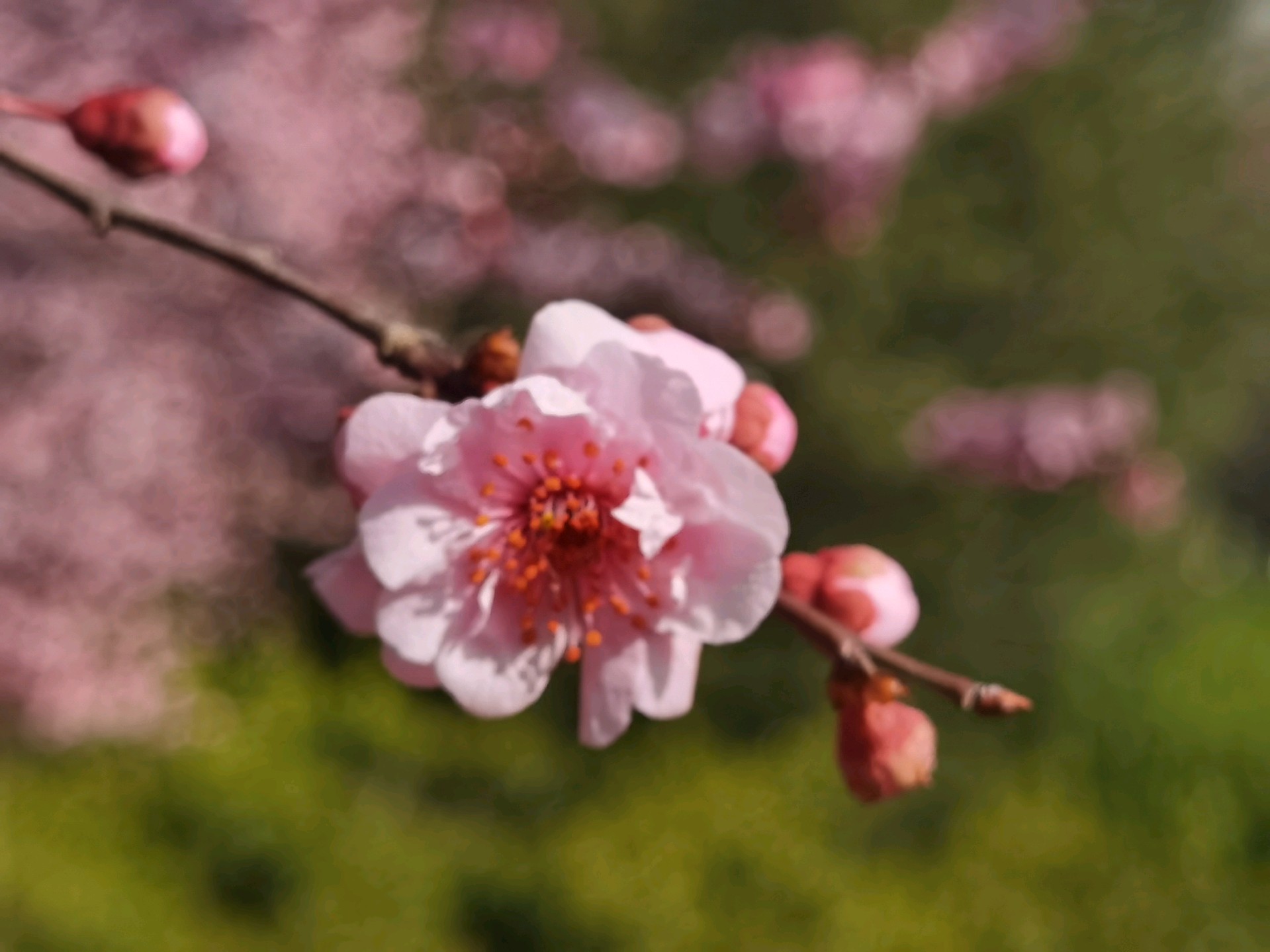 山大校园内粉色美人梅盛开,如诗如画,非常好看,享受这一刻的美好。