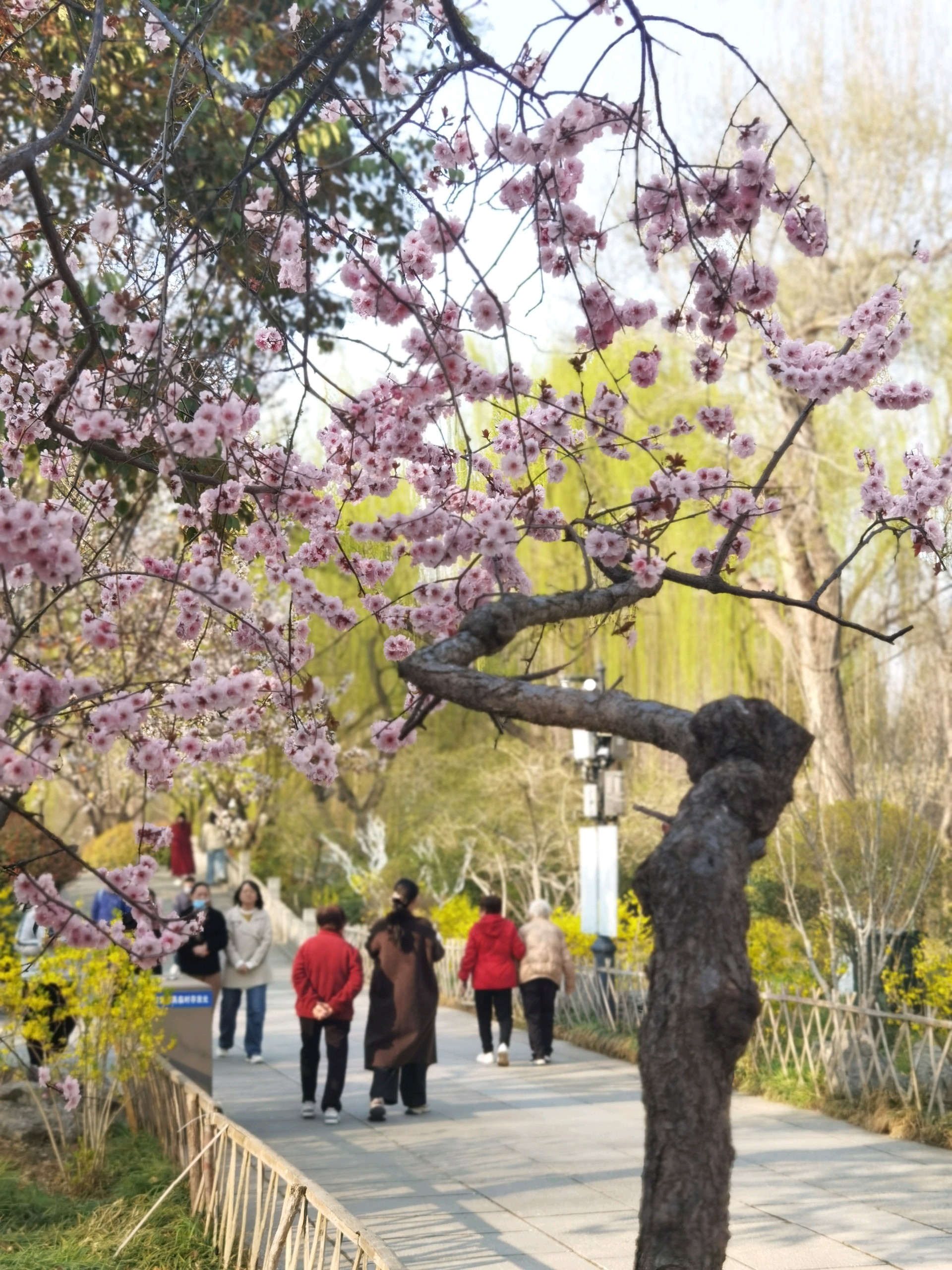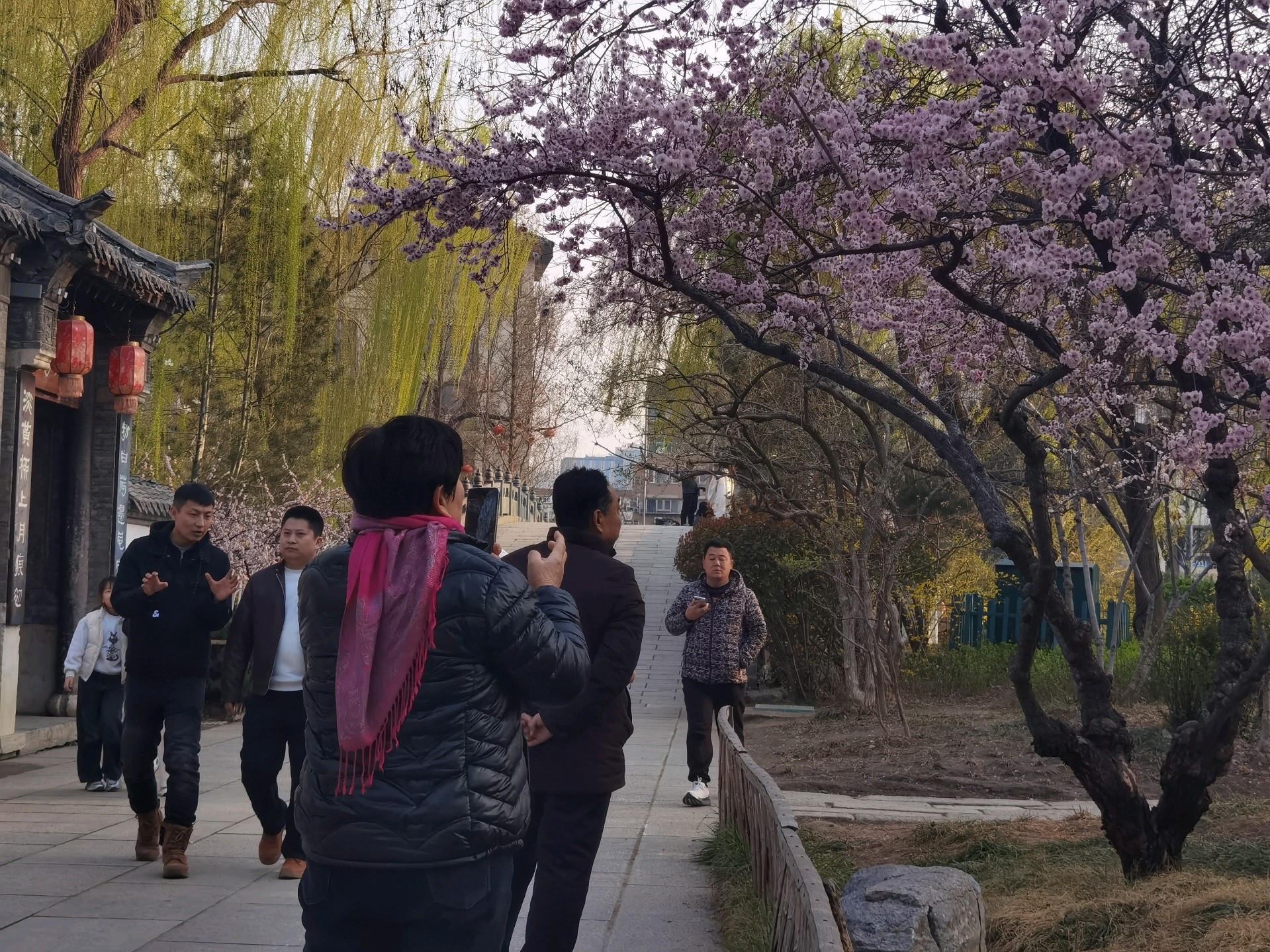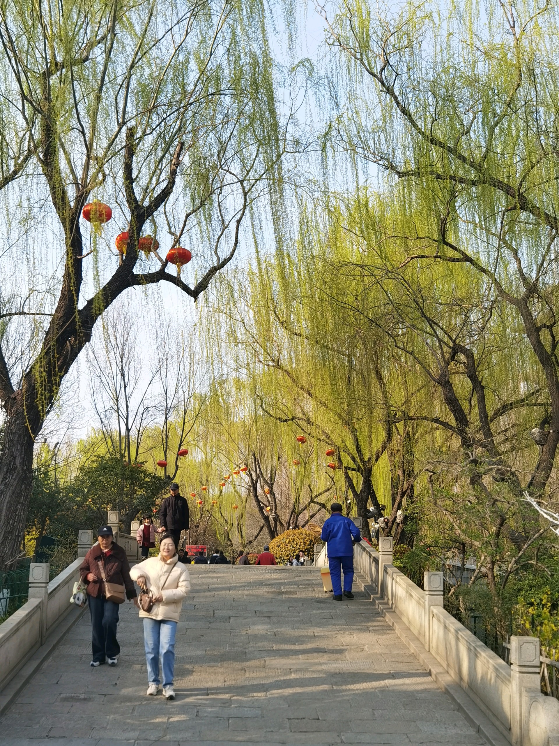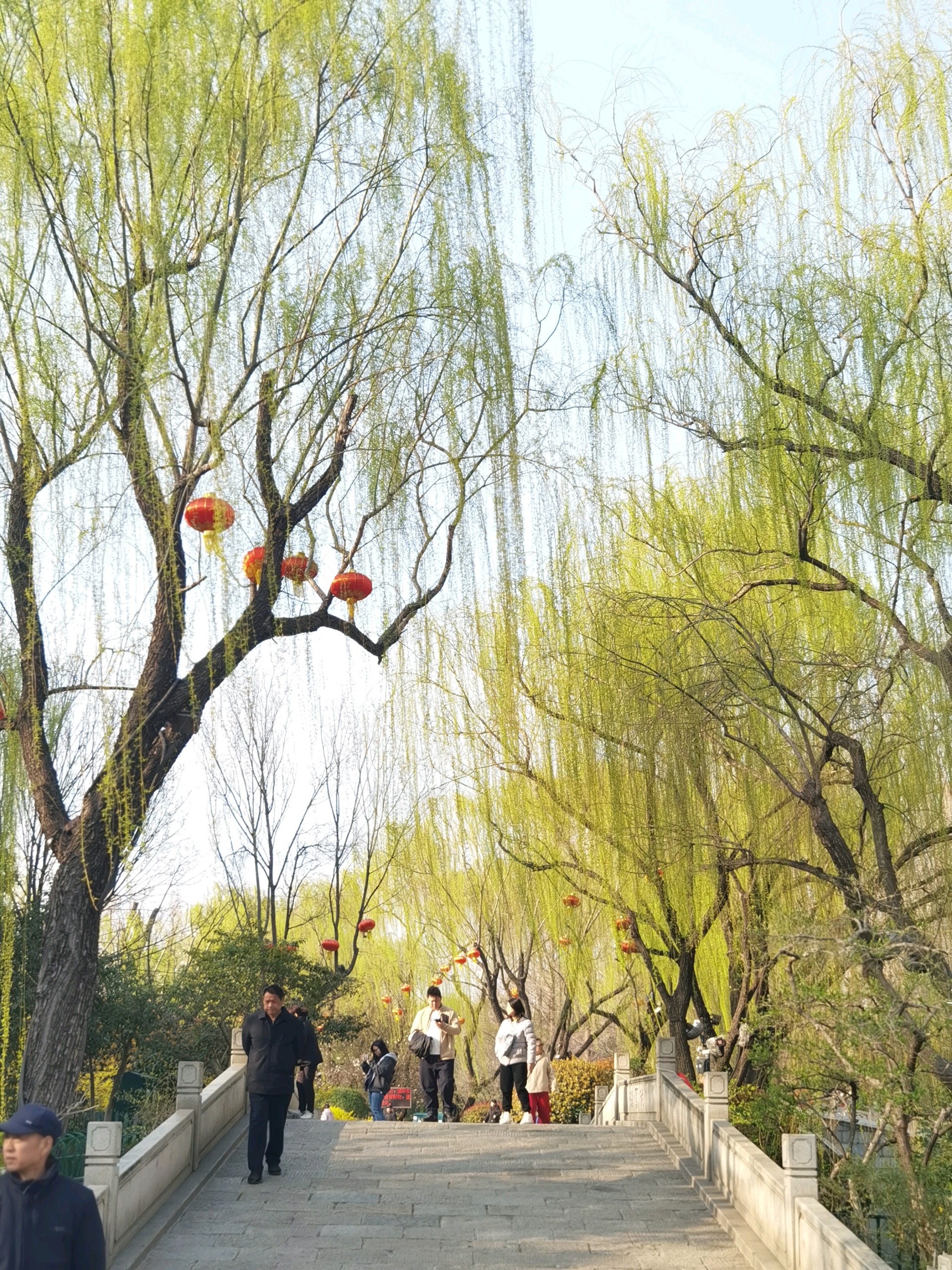 泉域的春天美如画。柳树垂挂着嫩绿的枝条,红灯笼随风摇曳,仿佛置身于仙境。