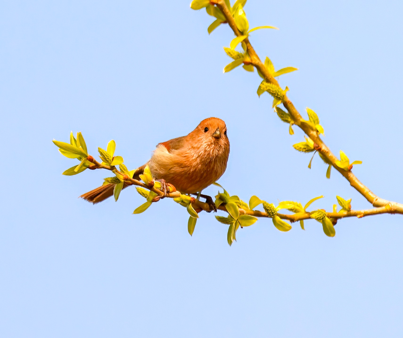 春天是充满生机的季节,小鸟登枝享受快乐时光清晨,天还蒙蒙亮,窗外就响起了清脆的鸟鸣。它们站在刚抽出嫩芽的枝头,抖落昨夜积在羽毛上的露水,用尖尖的小嘴梳理着被风吹乱的翅膀。阳光暖暖地照下来,小鸟们在空中追逐嬉戏。有的在刚开花的柳树间穿梭,翅膀沾满了花粉,它们一会儿俯冲到草地上啄食小虫,一会儿又突然窜上高空,仿佛在比赛谁飞得更高。