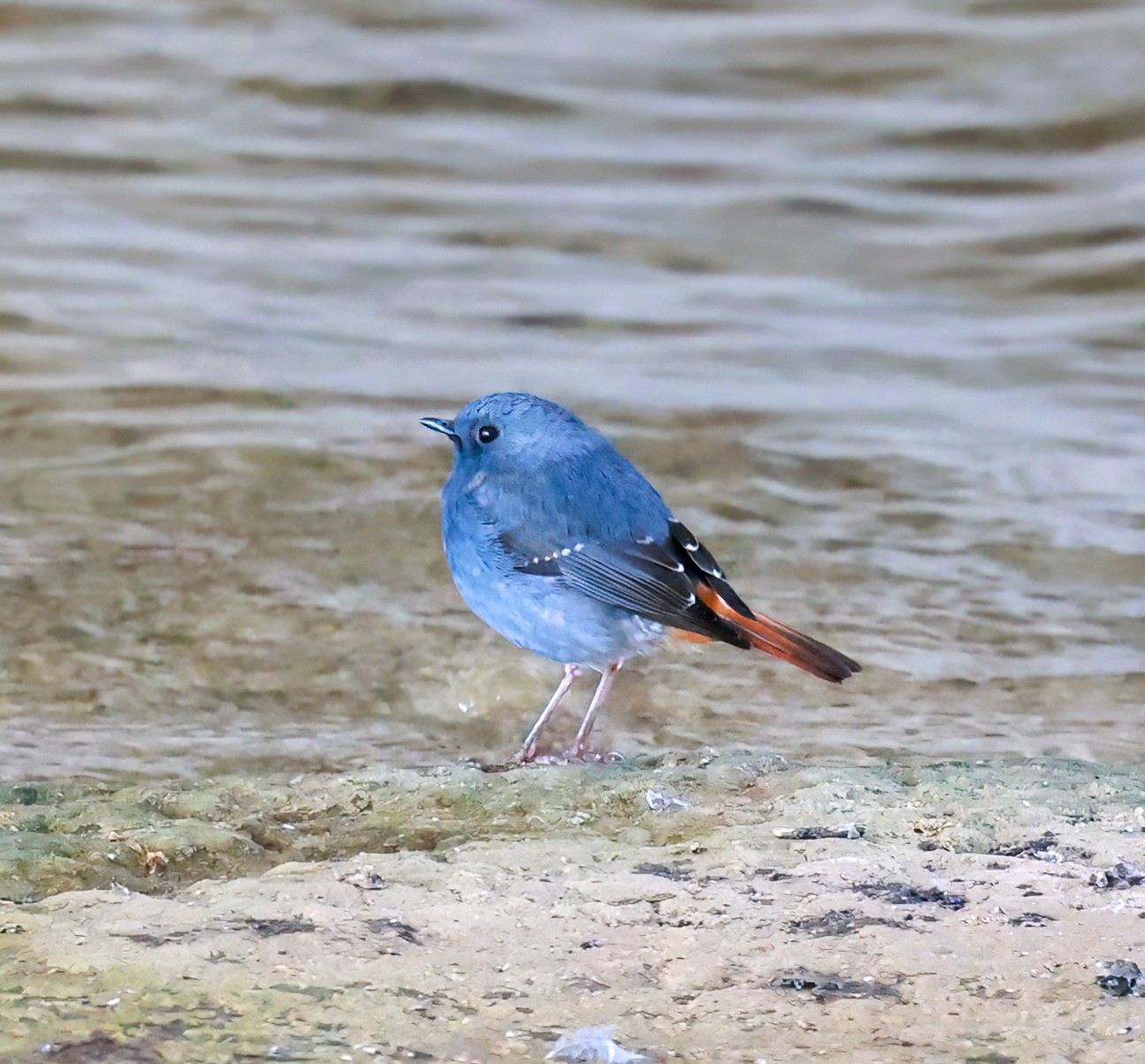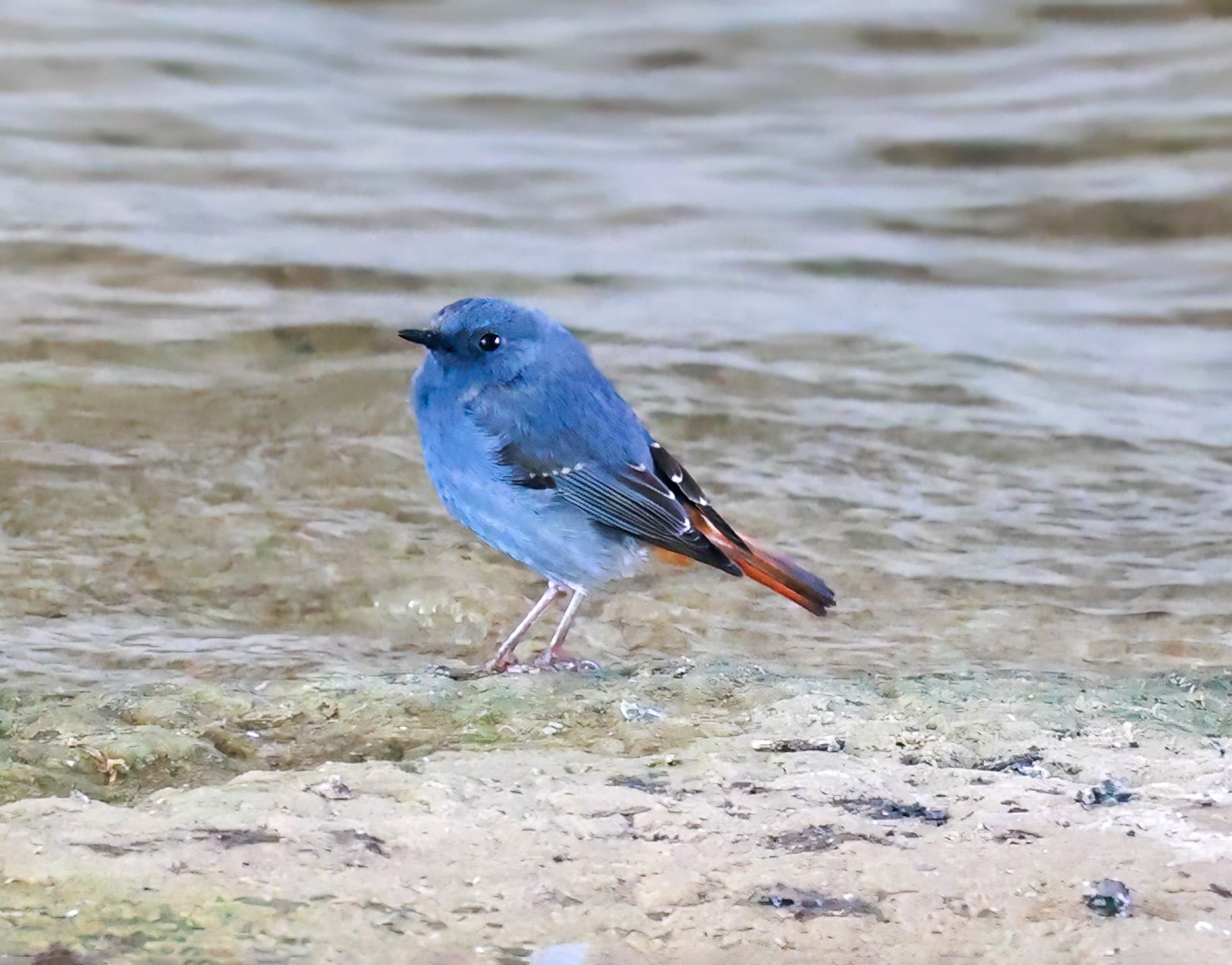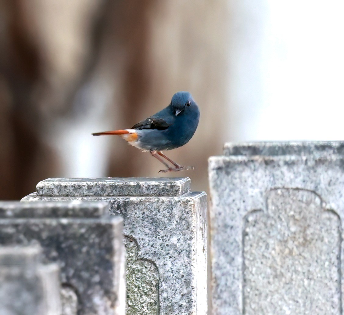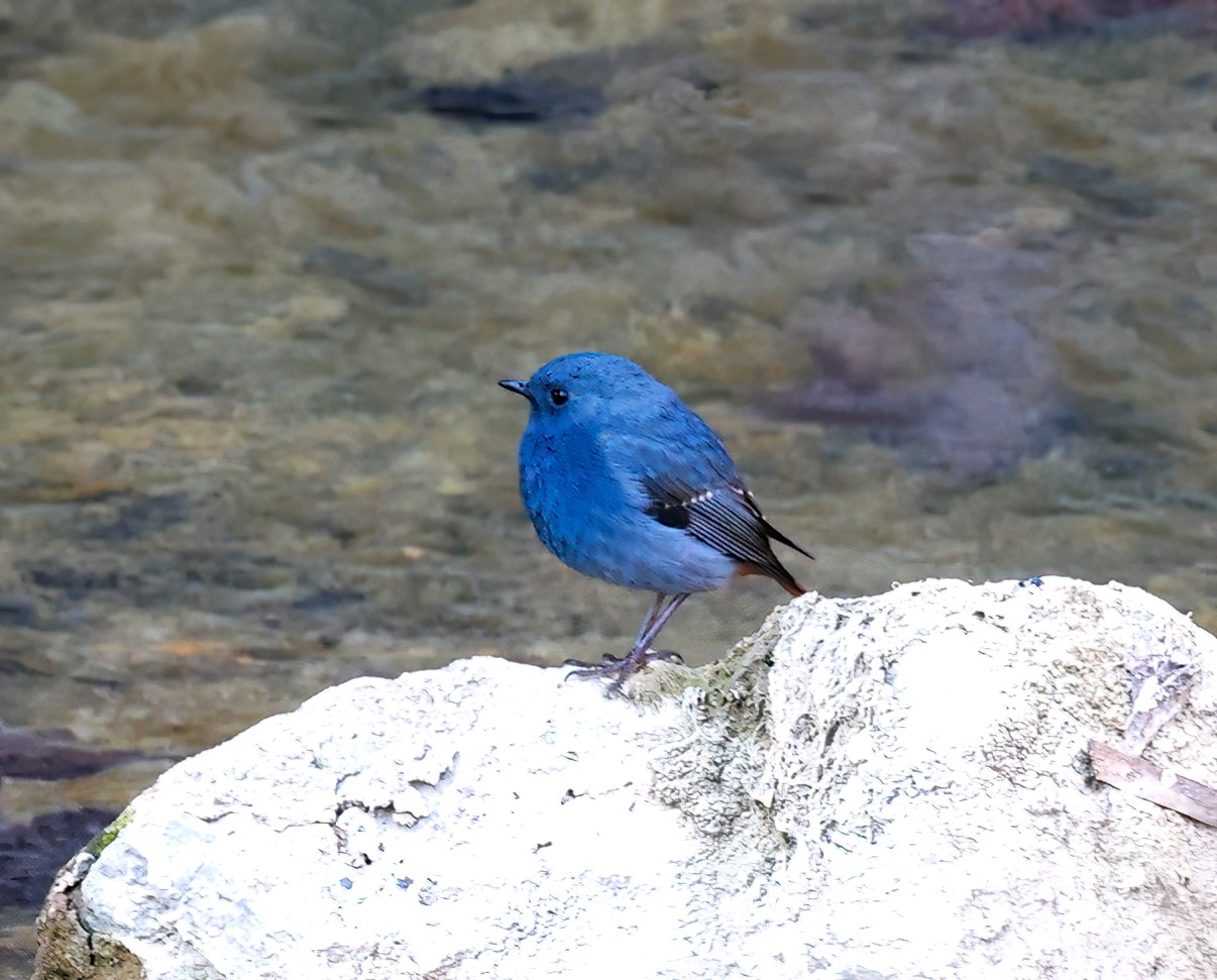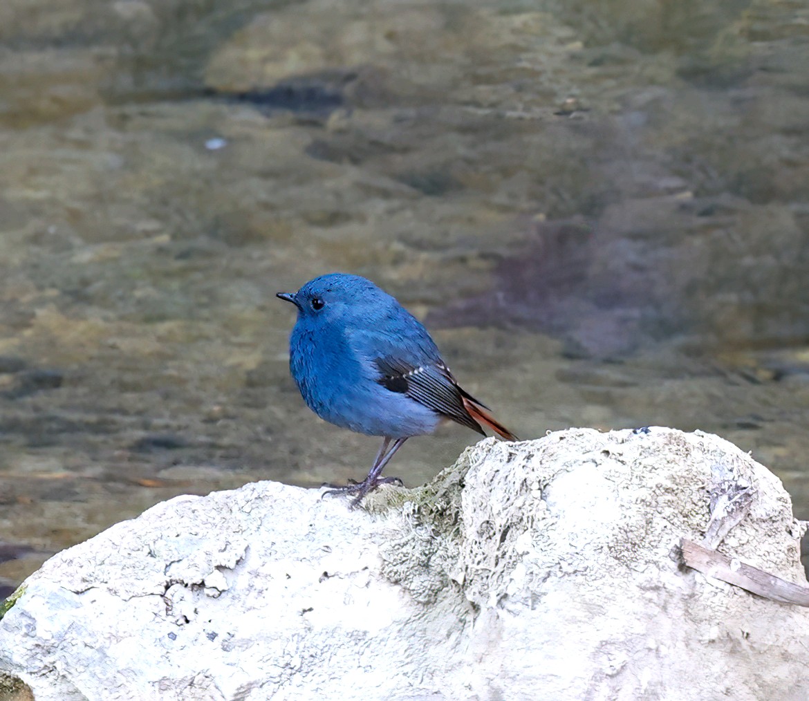 红尾水鸲雄性鸟太艳丽,太好看了!它是溪流边超吸睛的“蓝红小舞者”,体长约14厘米的小型鸣禽 。通体是有金属感的暗灰蓝(石板蓝),两翅偏黑褐;腰、臀、尾羽是鲜亮的栗红色,停栖时尾羽不停上下摆、偶尔扇成扇形,对比极强;喙和脚都是纯黑。