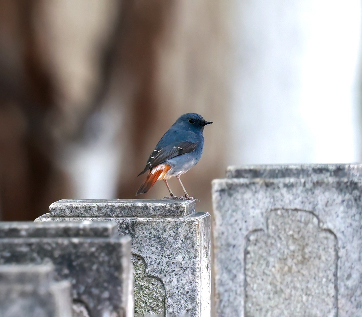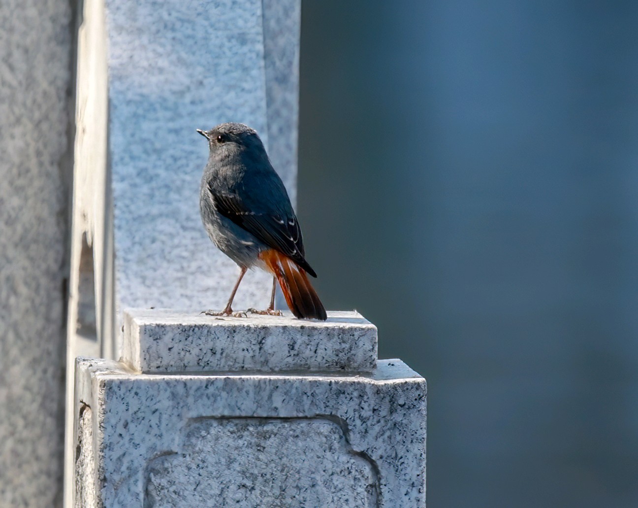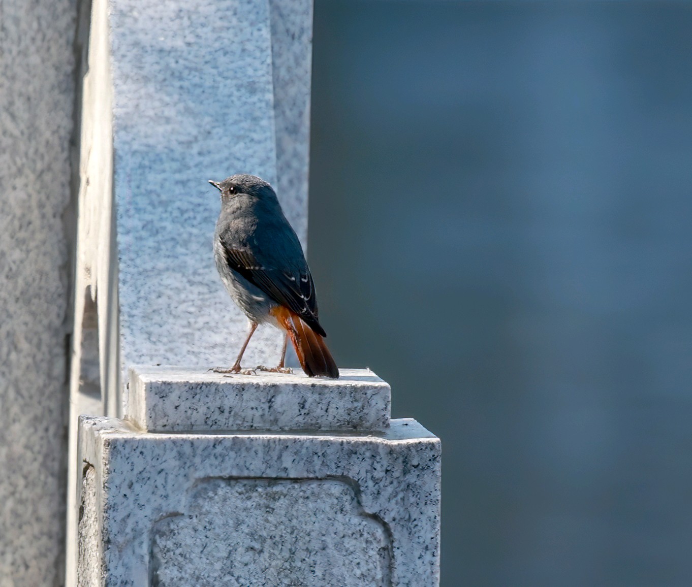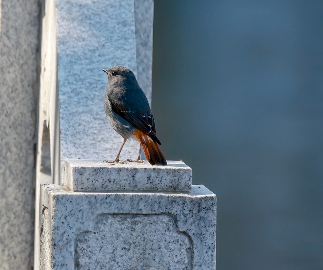 红尾水鸲雄性鸟太艳丽,太好看了!它是溪流边超吸睛的“蓝红小舞者”,体长约14厘米的小型鸣禽 。通体是有金属感的暗灰蓝(石板蓝),两翅偏黑褐;腰、臀、尾羽是鲜亮的栗红色,停栖时尾羽不停上下摆、偶尔扇成扇形,对比极强;喙和脚都是纯黑。