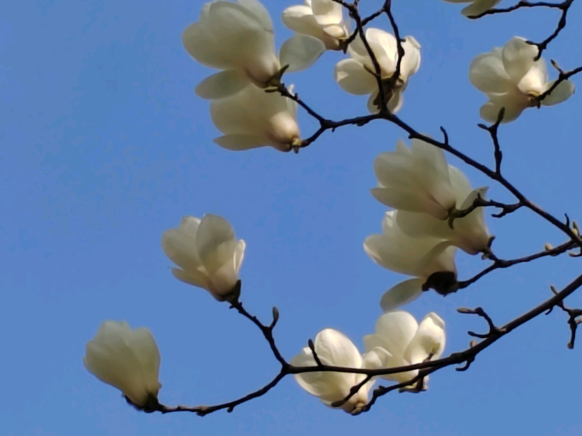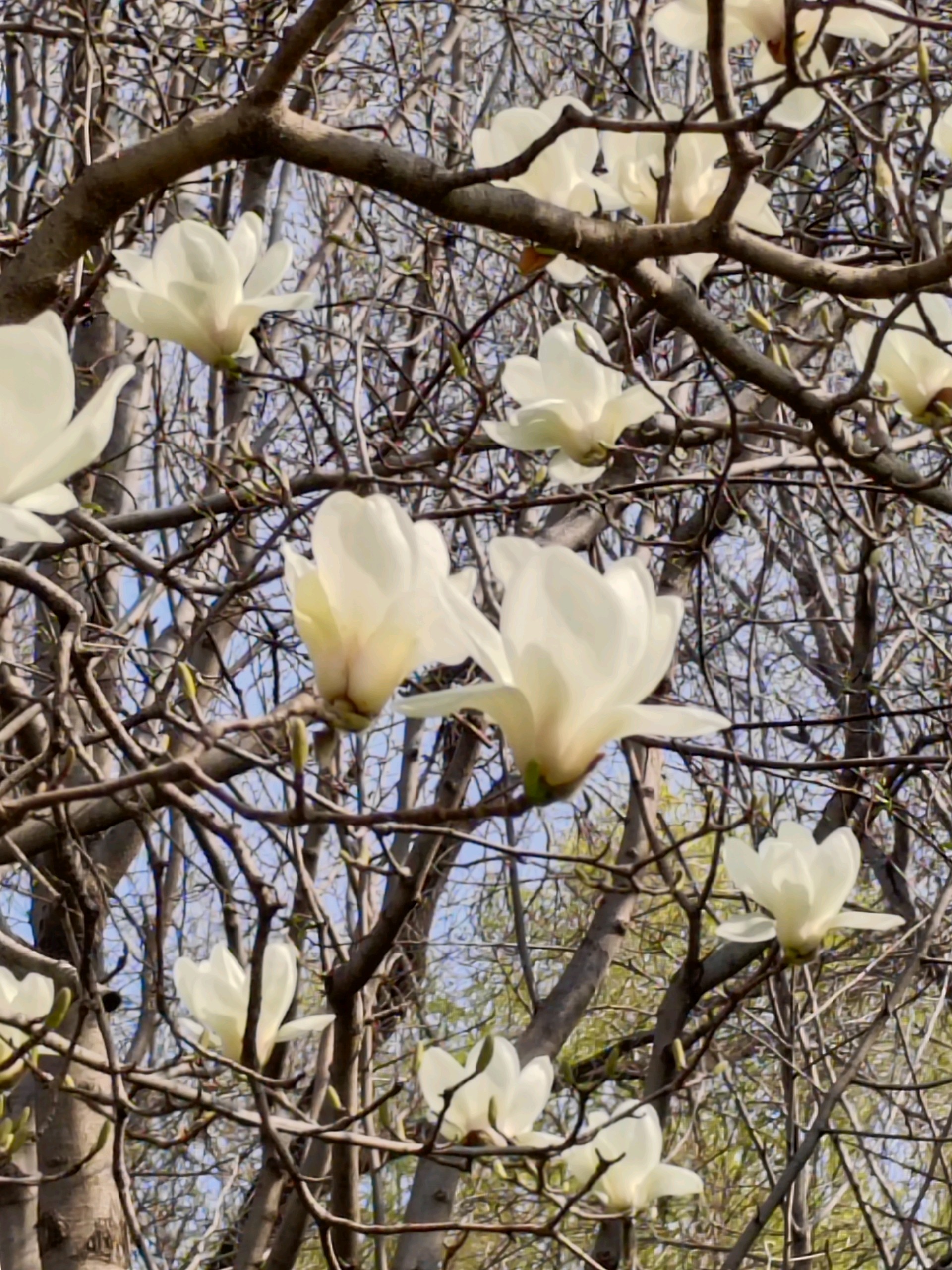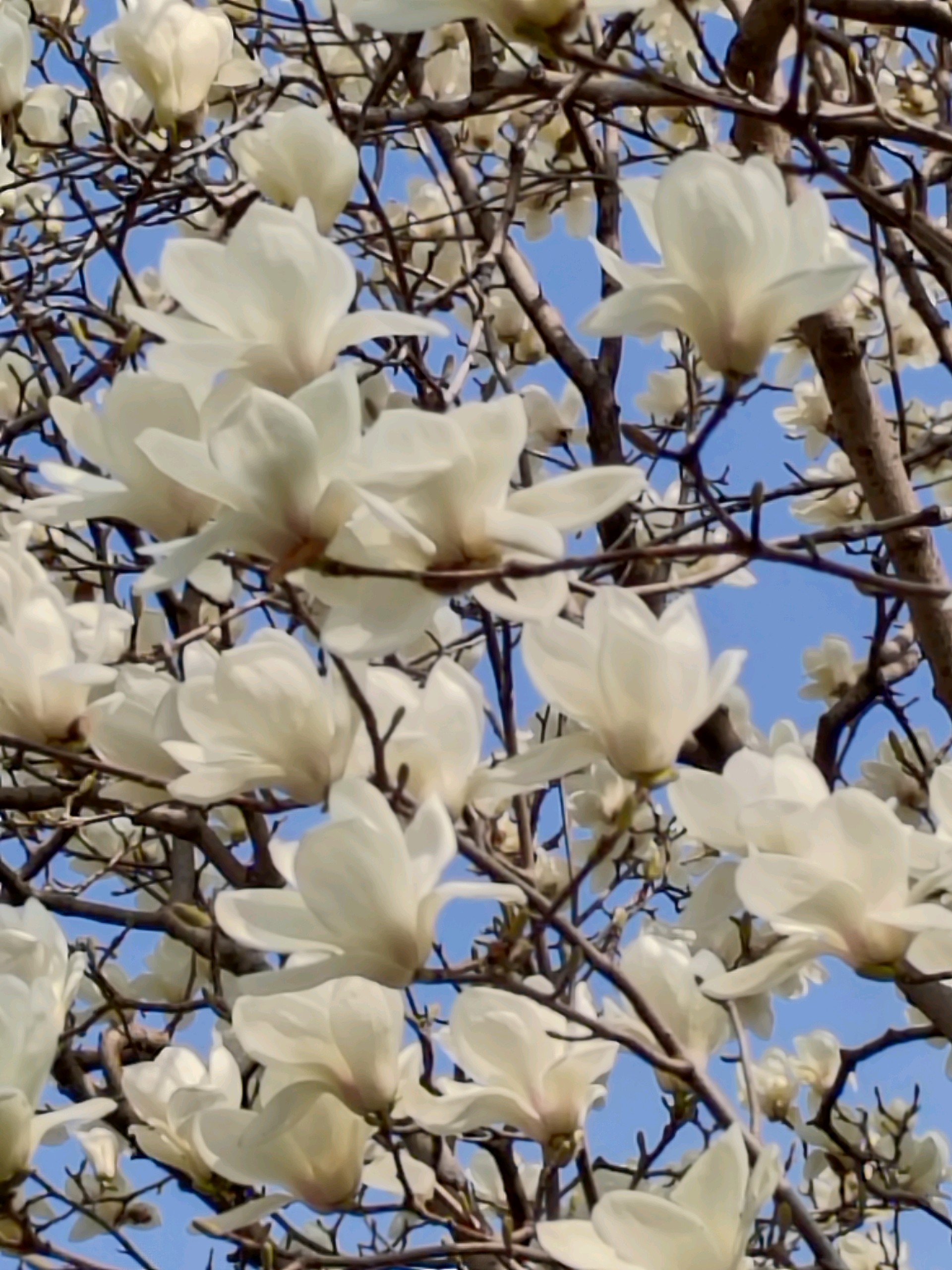 大明湖畔的白玉兰盛花期,蓝天下的玉兰花,洁白如玉。
