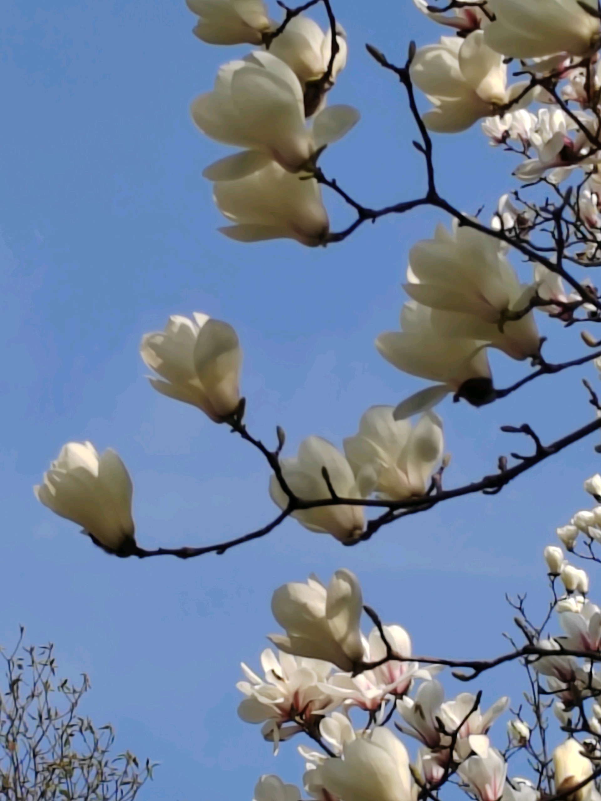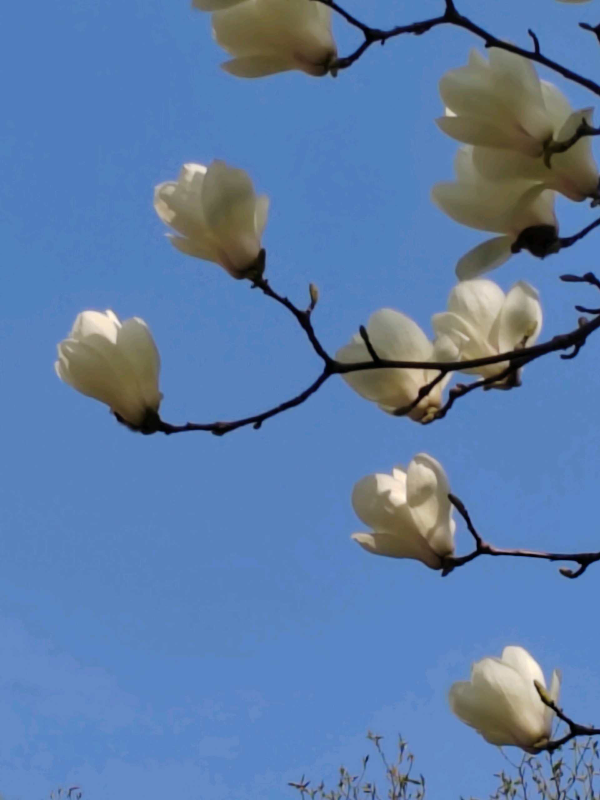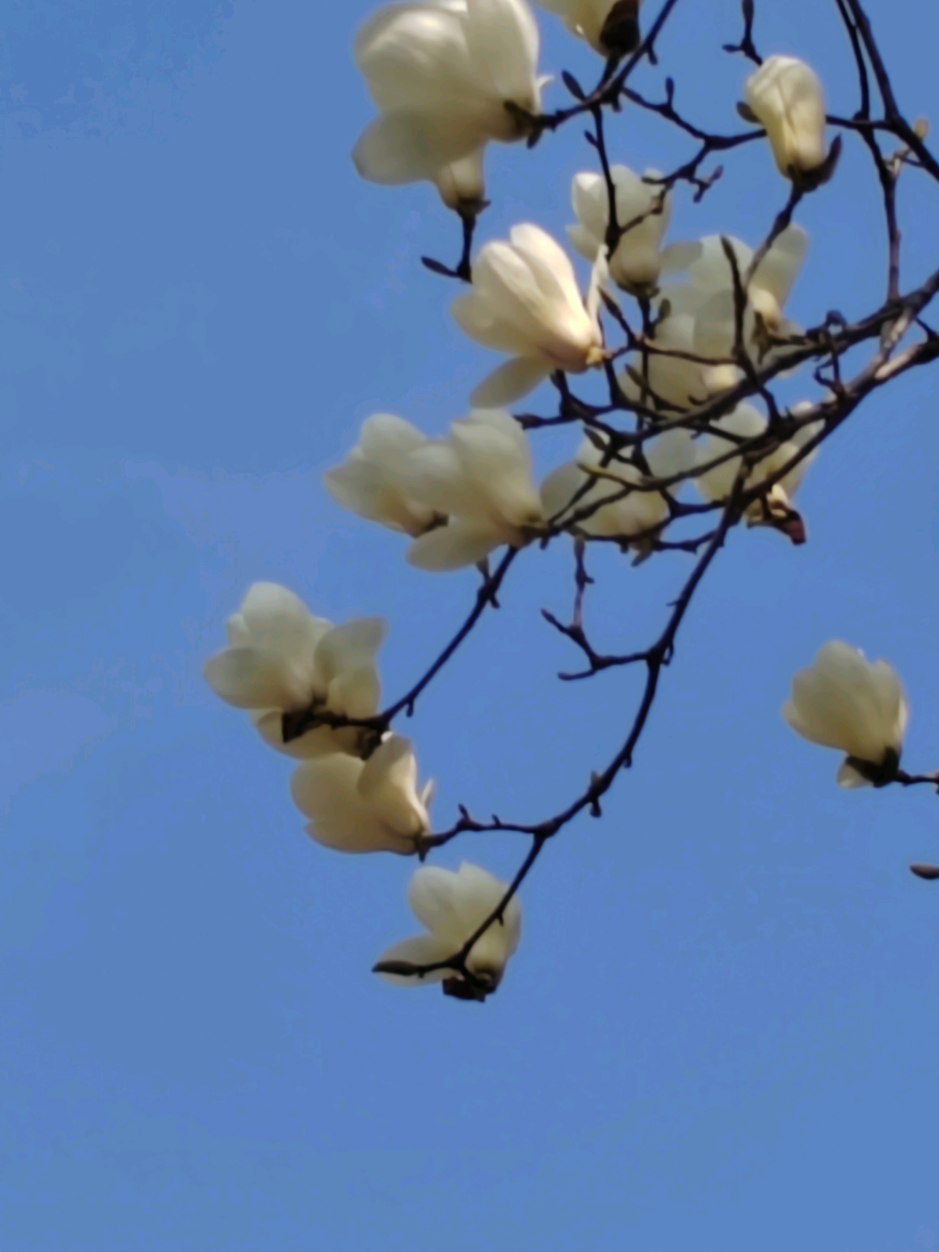 大明湖畔的白玉兰盛花期,蓝天下的玉兰花,洁白如玉。