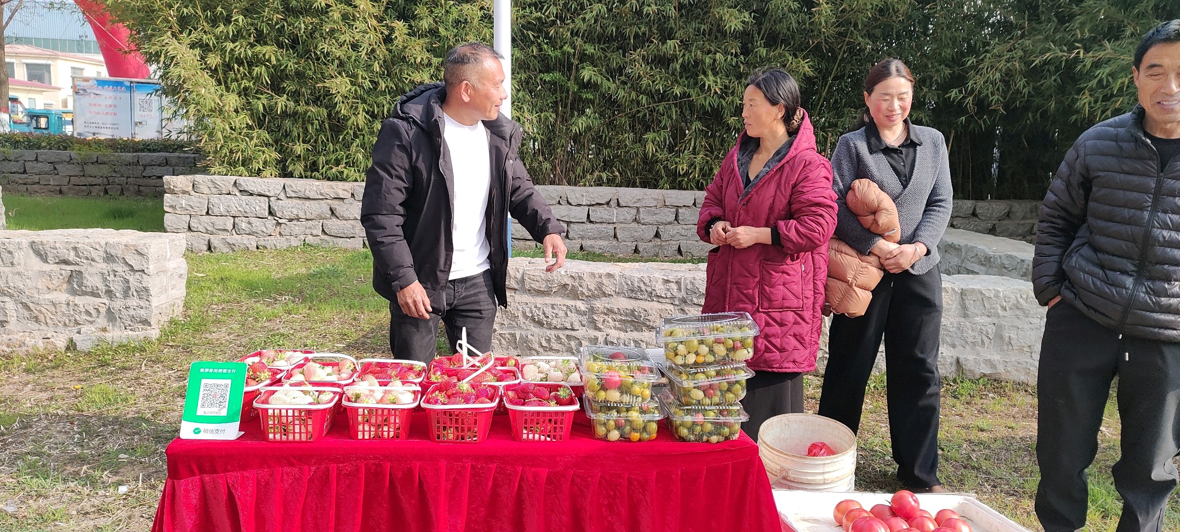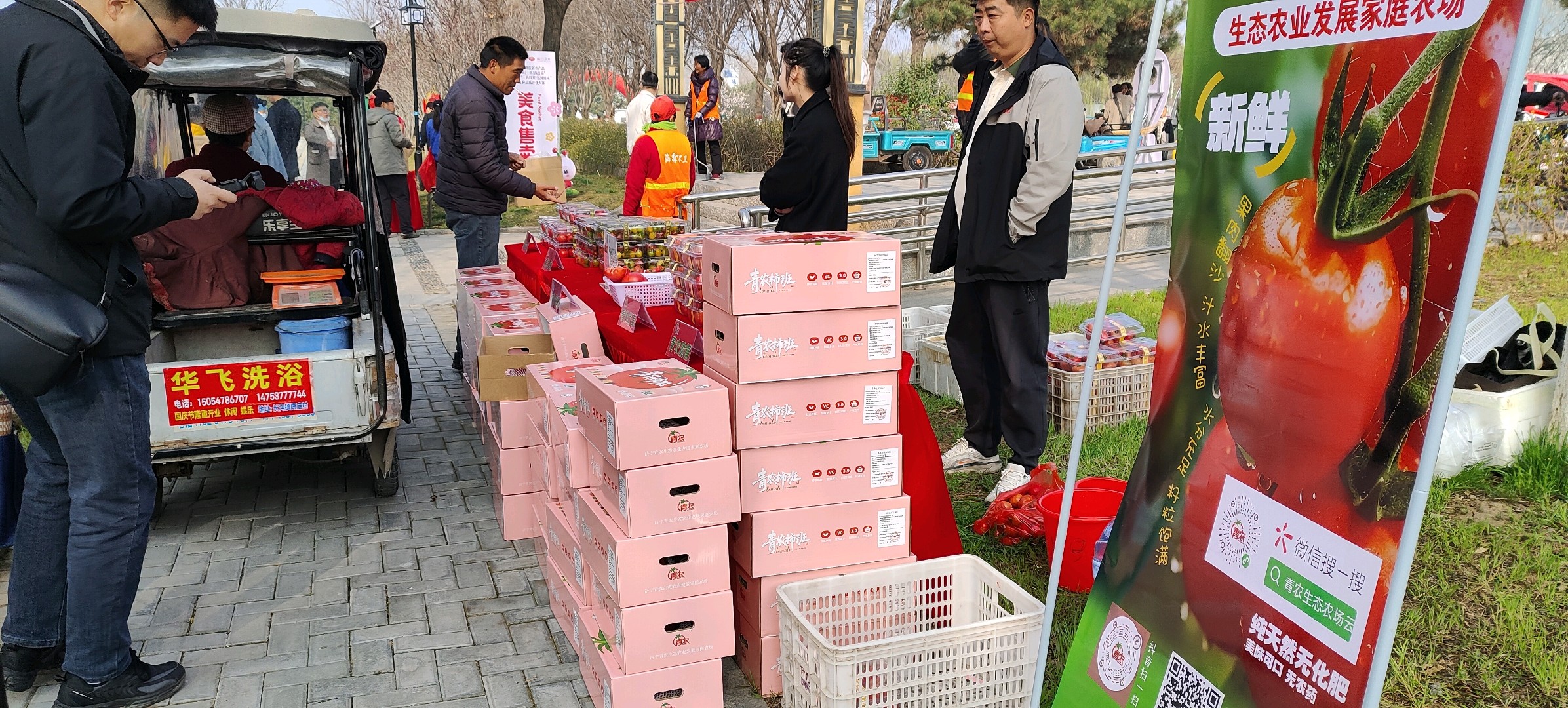 阳光明媚的日子里,公园里热闹非凡。长沟镇西红柿品质评优大赛正在举行,文艺演出的欢乐声、小贩的叫卖声、人们的欢笑声交织在一起,构成了一幅生动的市井画卷。