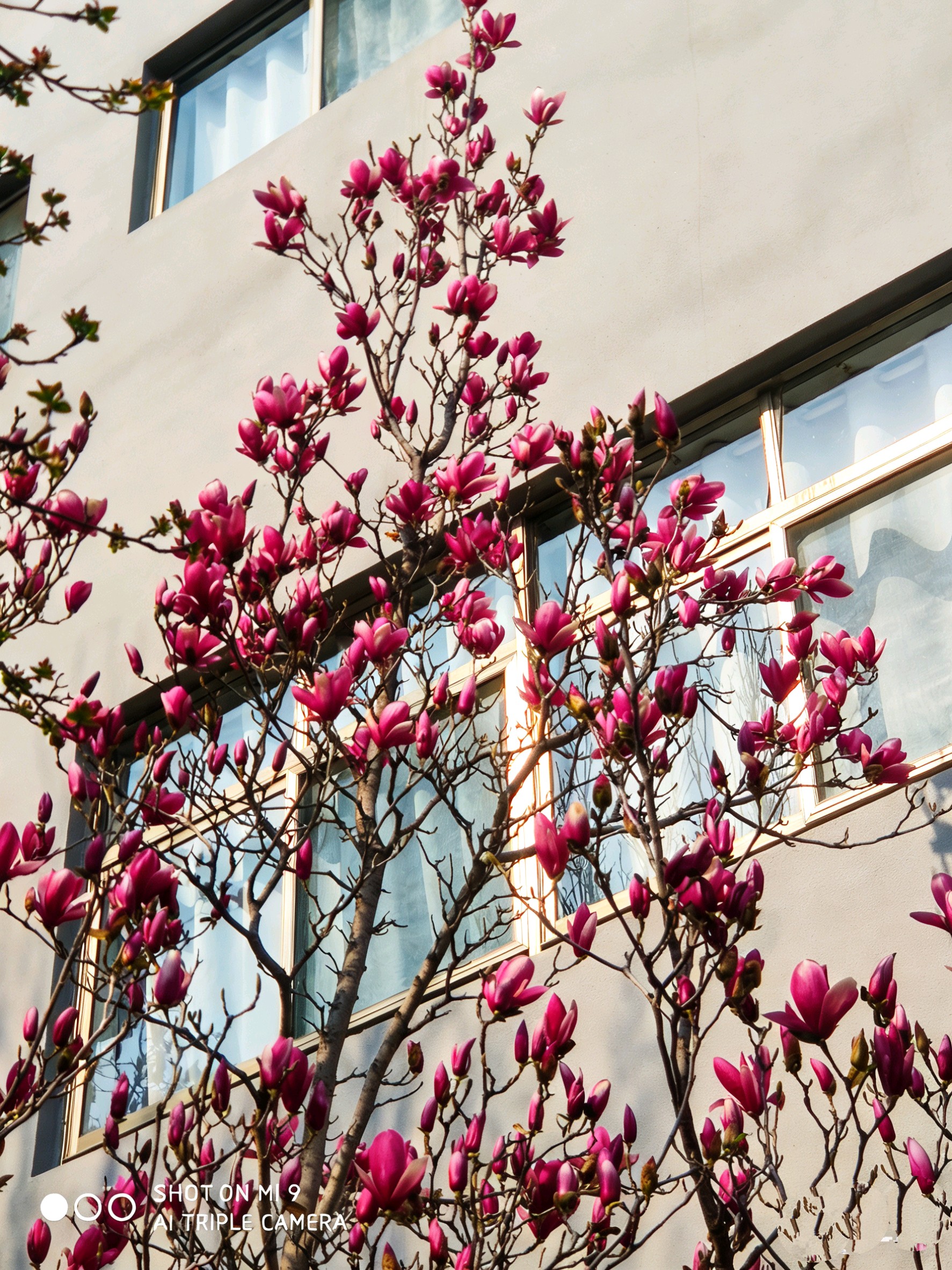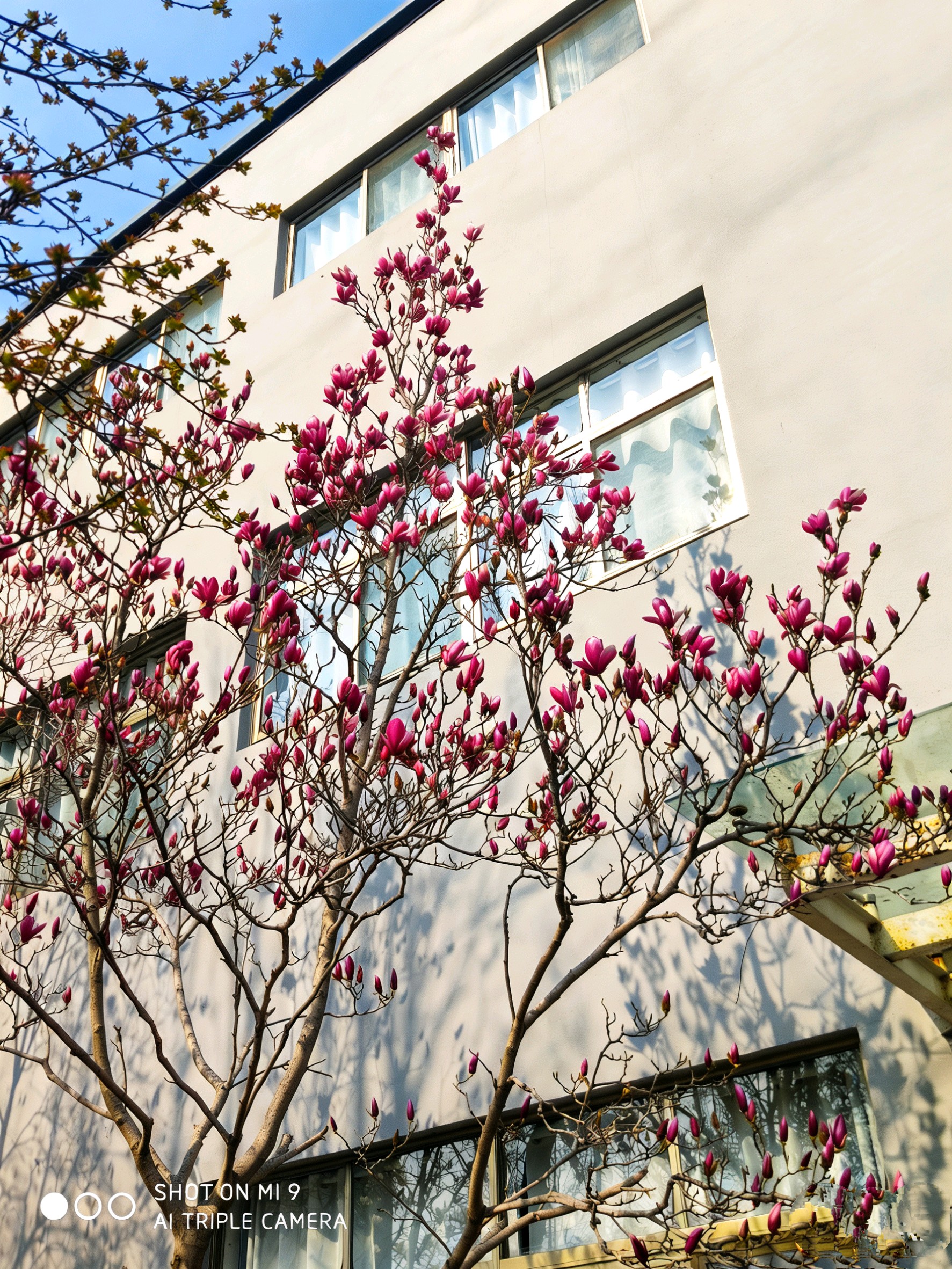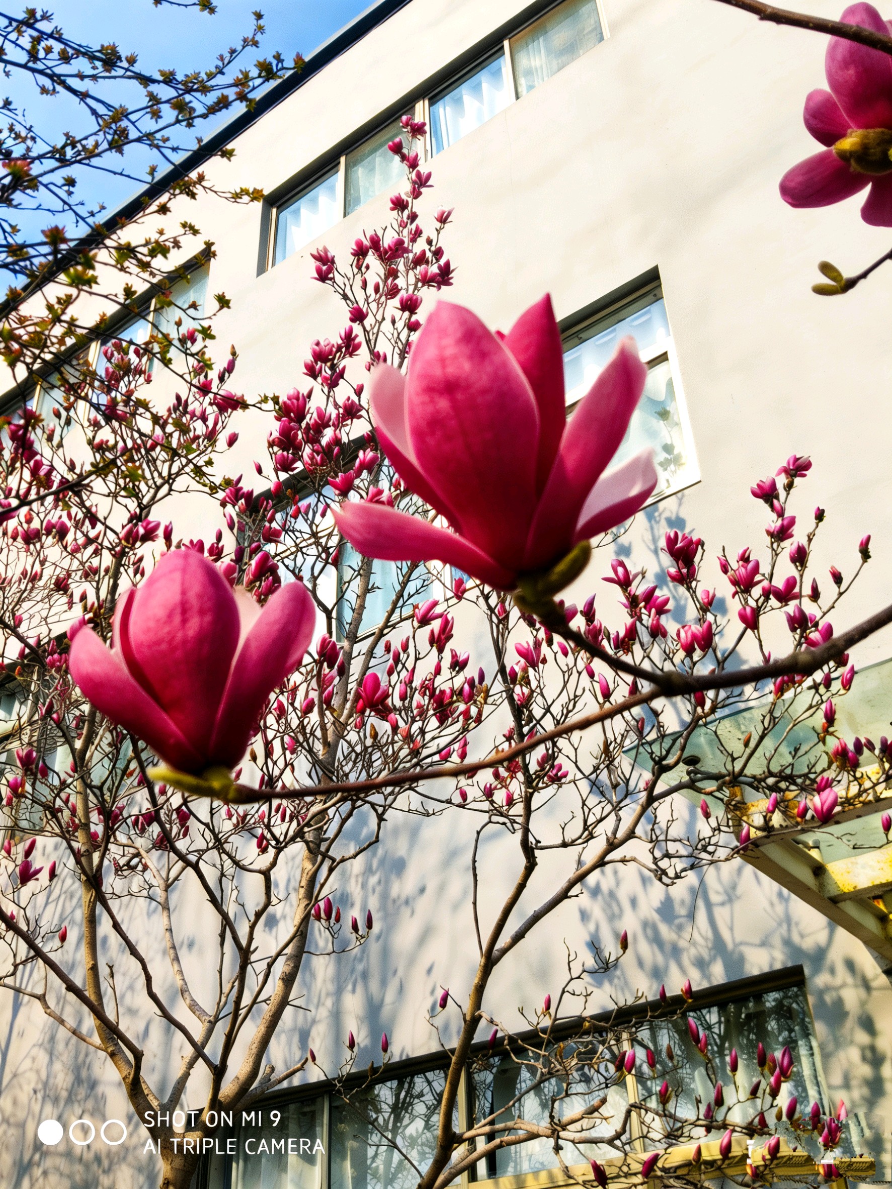 校园的红玉兰,花朵在阳光下显得格外娇艳。春风拂过,花瓣轻轻摇曳,仿佛在欢迎着春天的到来。