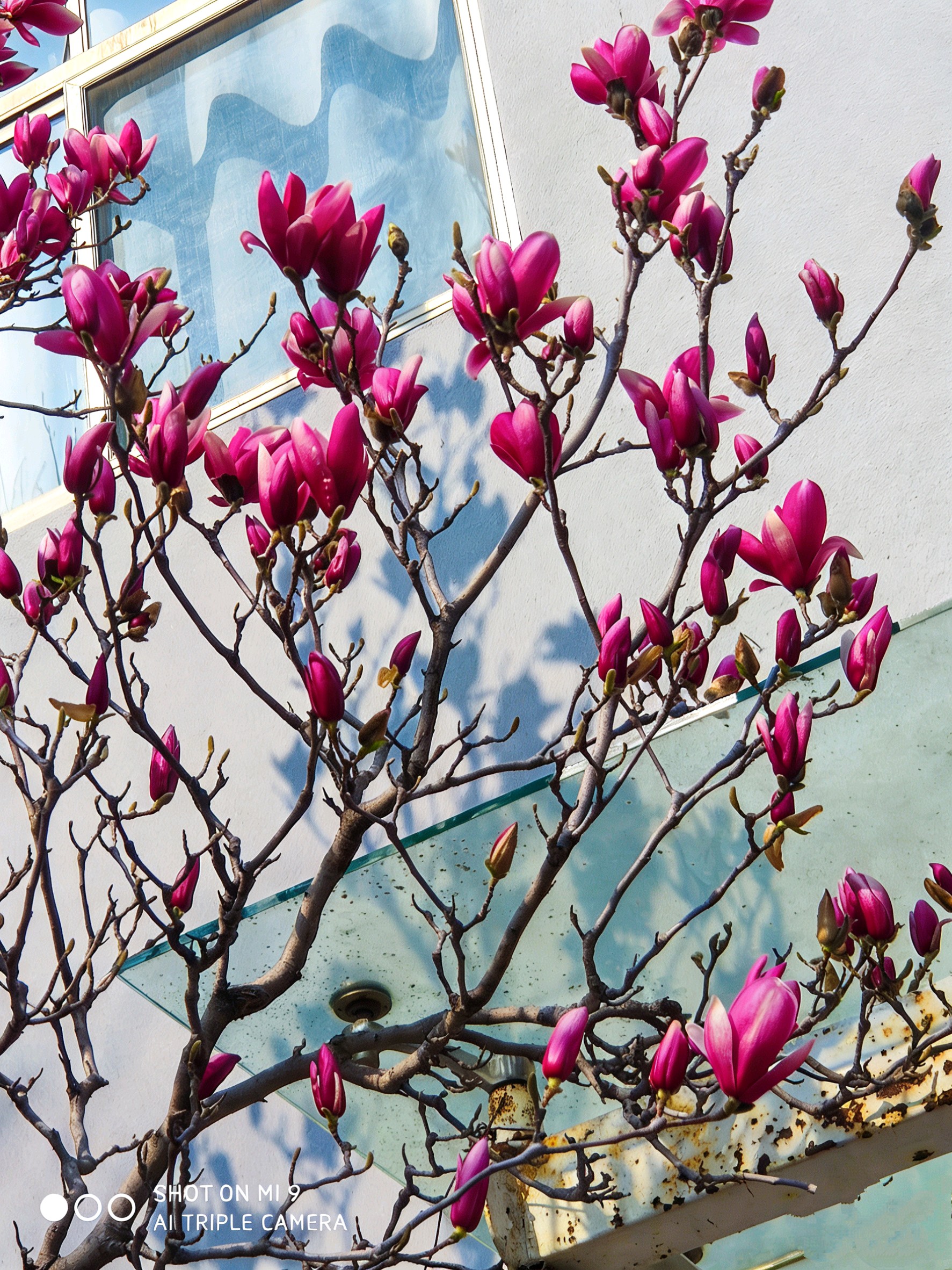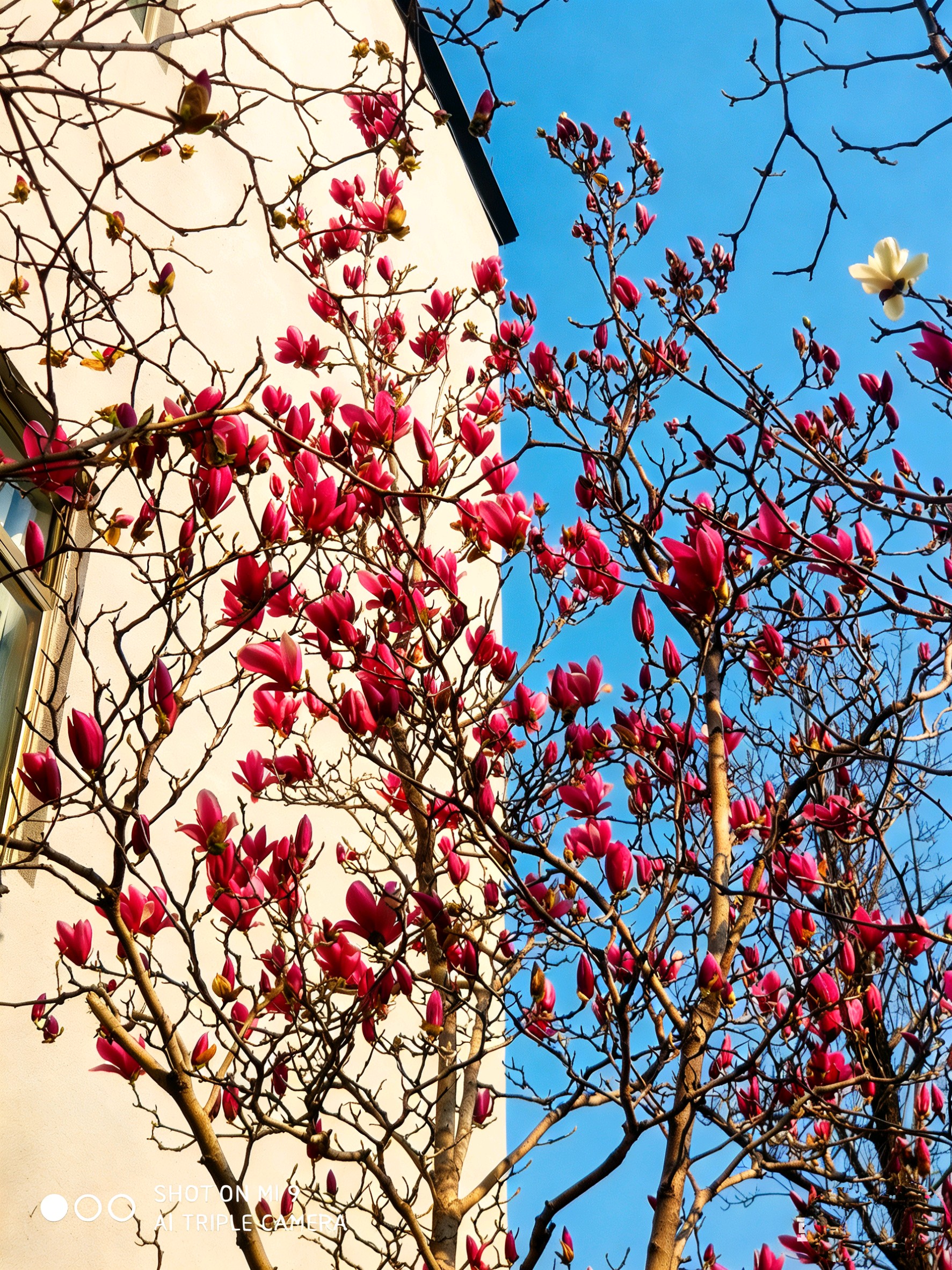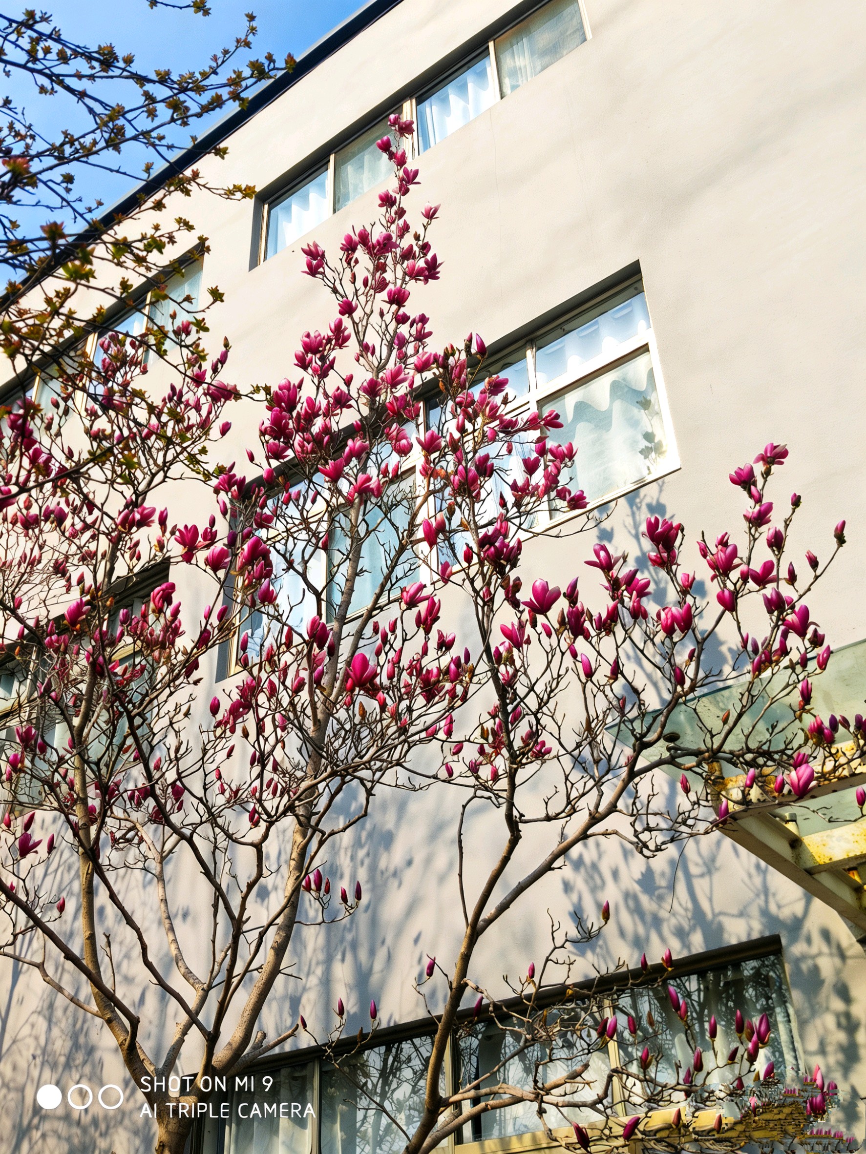 校园的红玉兰,花朵在阳光下显得格外娇艳。春风拂过,花瓣轻轻摇曳,仿佛在欢迎着春天的到来。