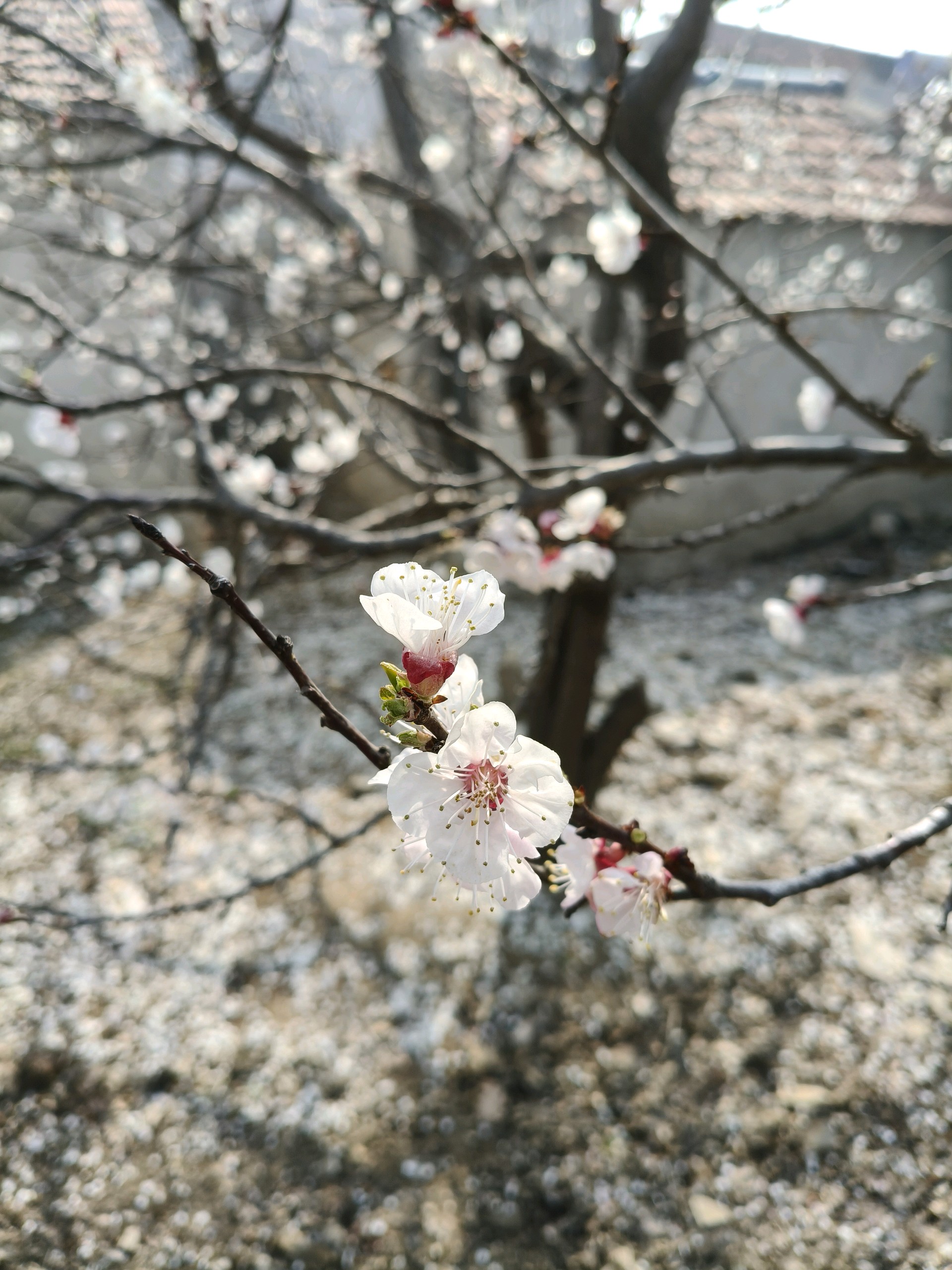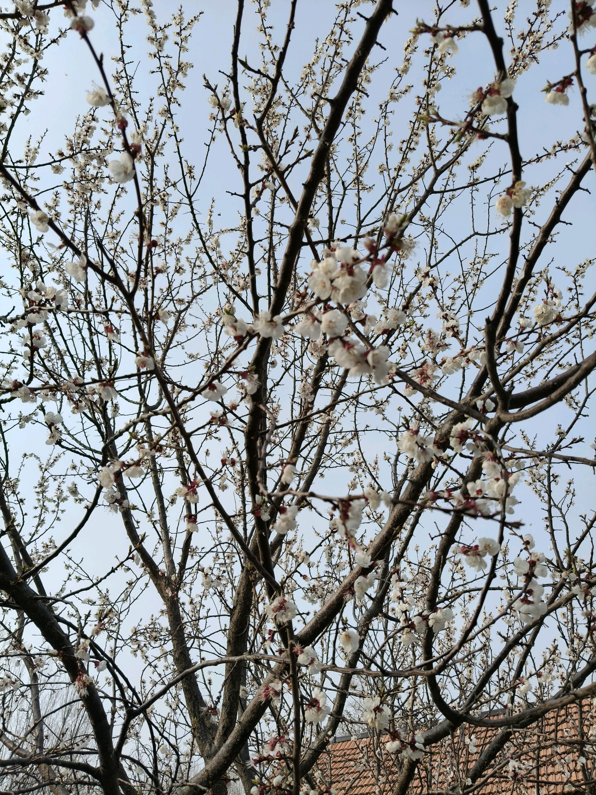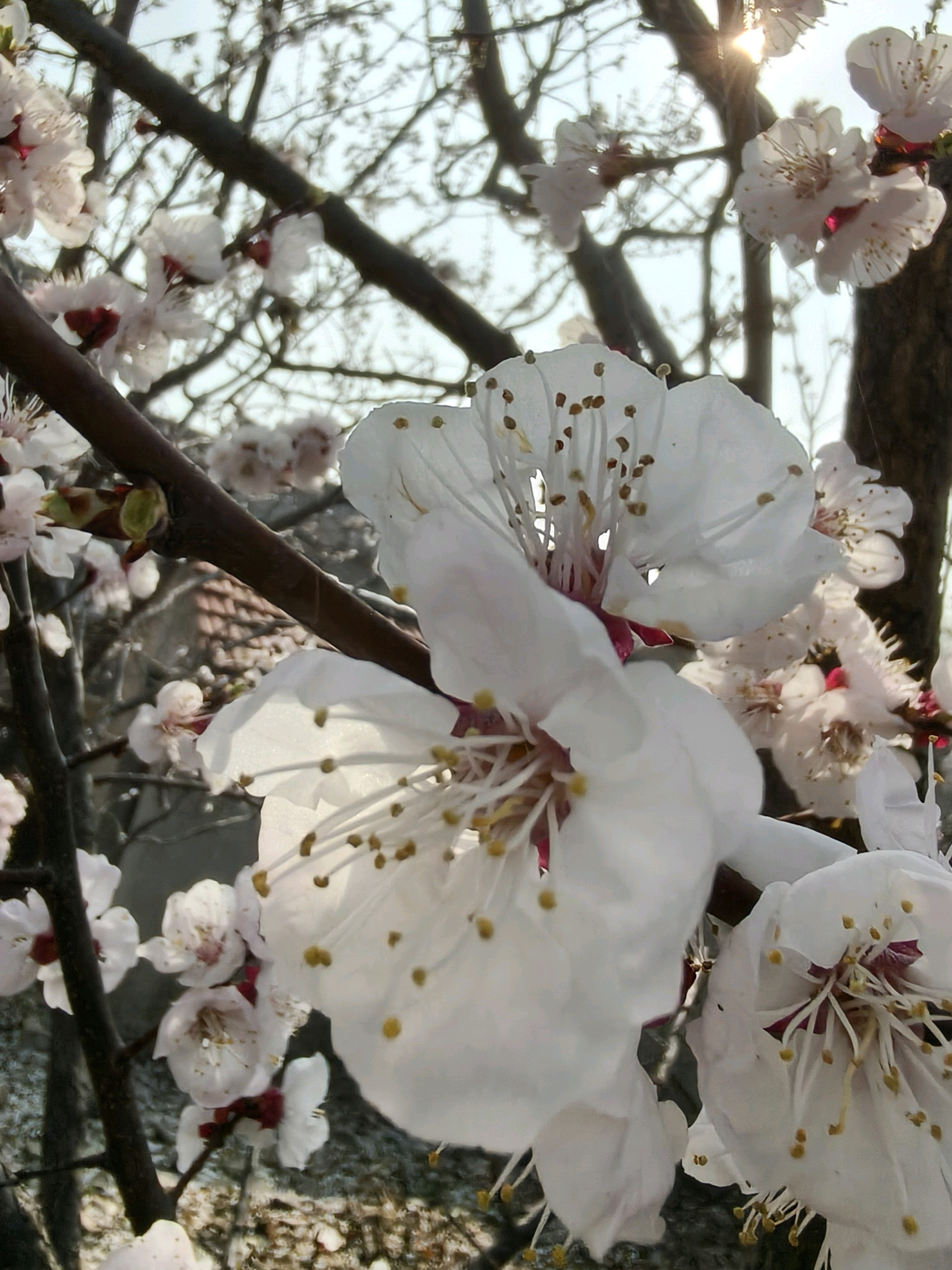 今天又和老父亲回老家看看老院子,前几天还含苞待放,花苞发红的杏花已是落英缤纷,花瓣满地,像一层白雪覆盖在树下,树上还有少量的杏花,杏花吸引的大量蜜蜂来采花蜜,嗡嗡的声音特别大,阳光明媚的春天,生机勃勃的小院,呆在自己的院子里心里特别的亲切和踏实。