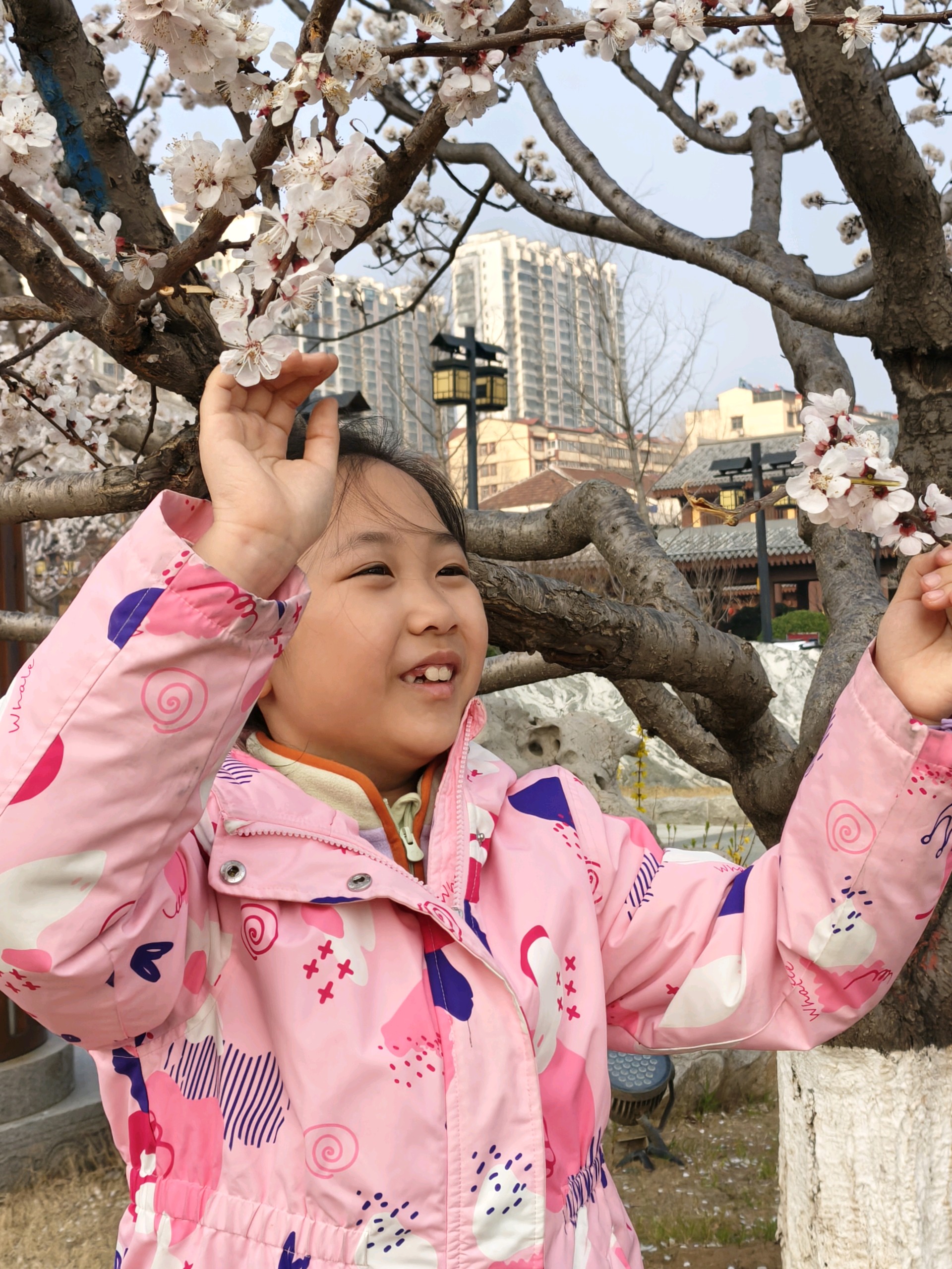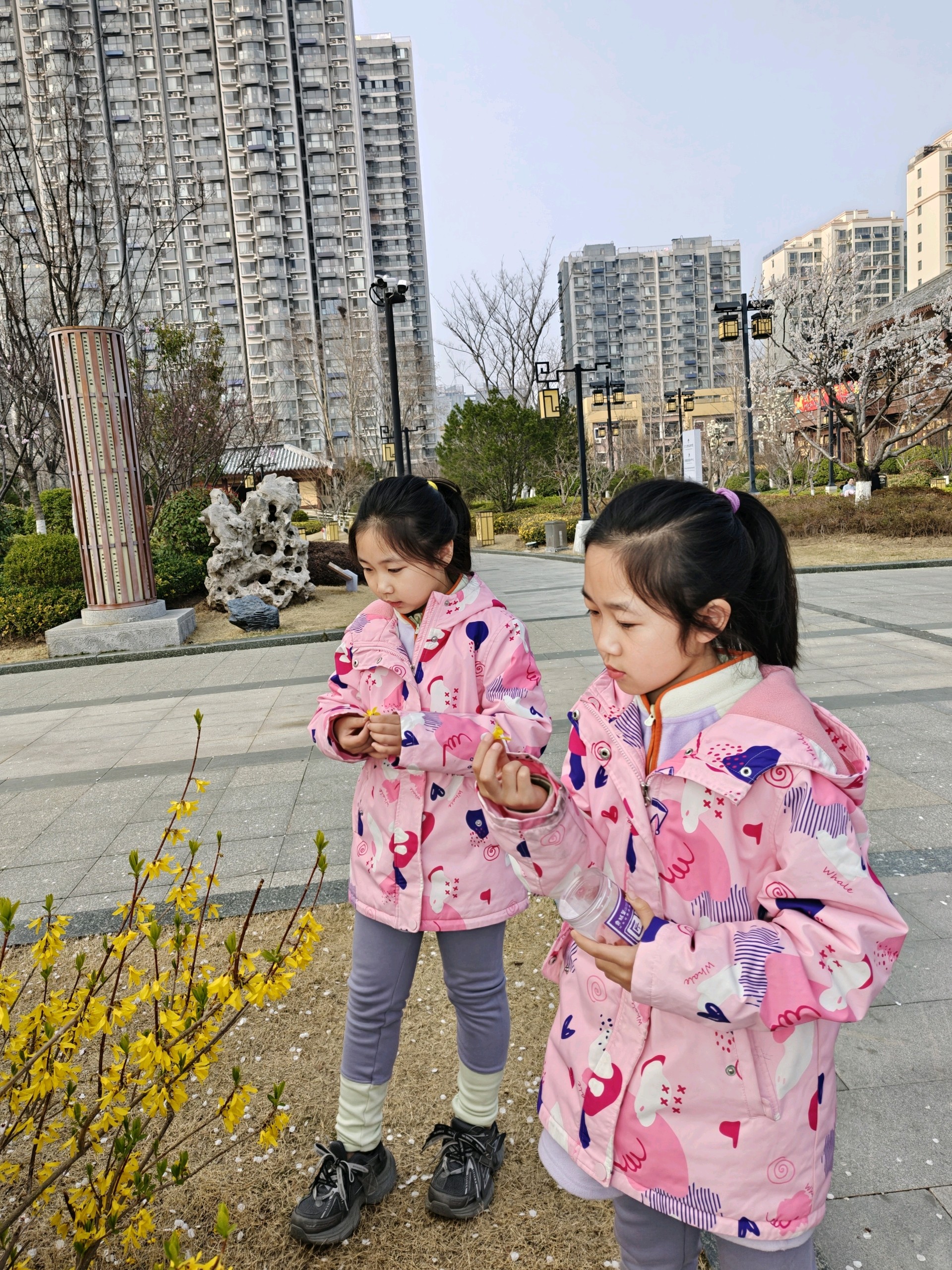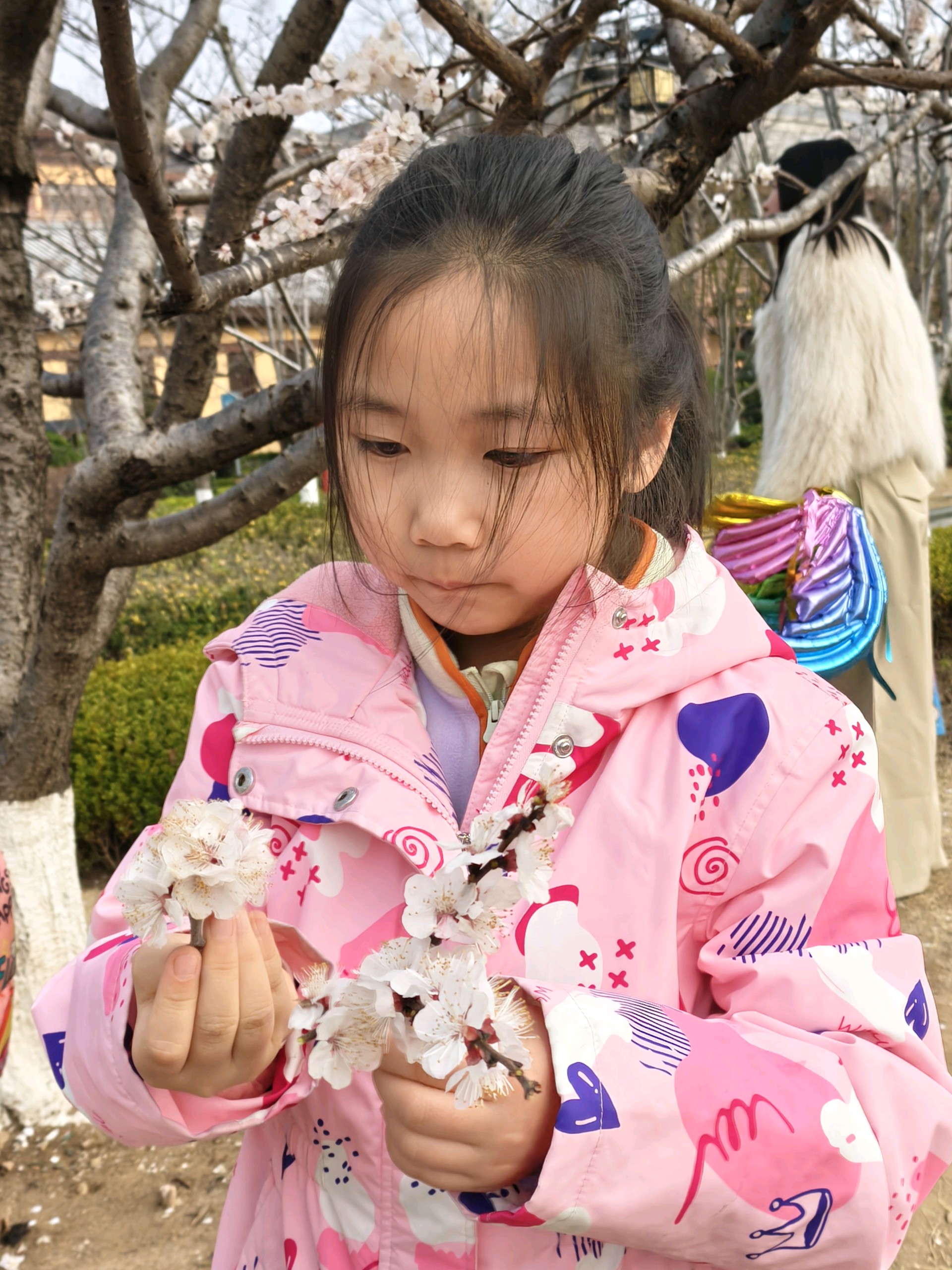 姐俩踮着脚,指尖刚触到那片软,花香便漫进了鼻尖——不是浓烈的香,是清浅的、带着阳光味道的甜,像把整个春天都攥在了手心里。不必等桃李争艳,杏花先醒了。