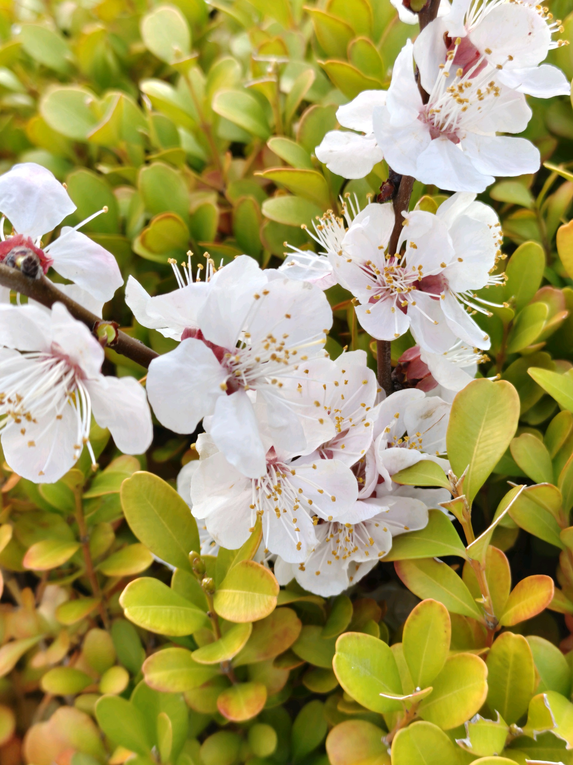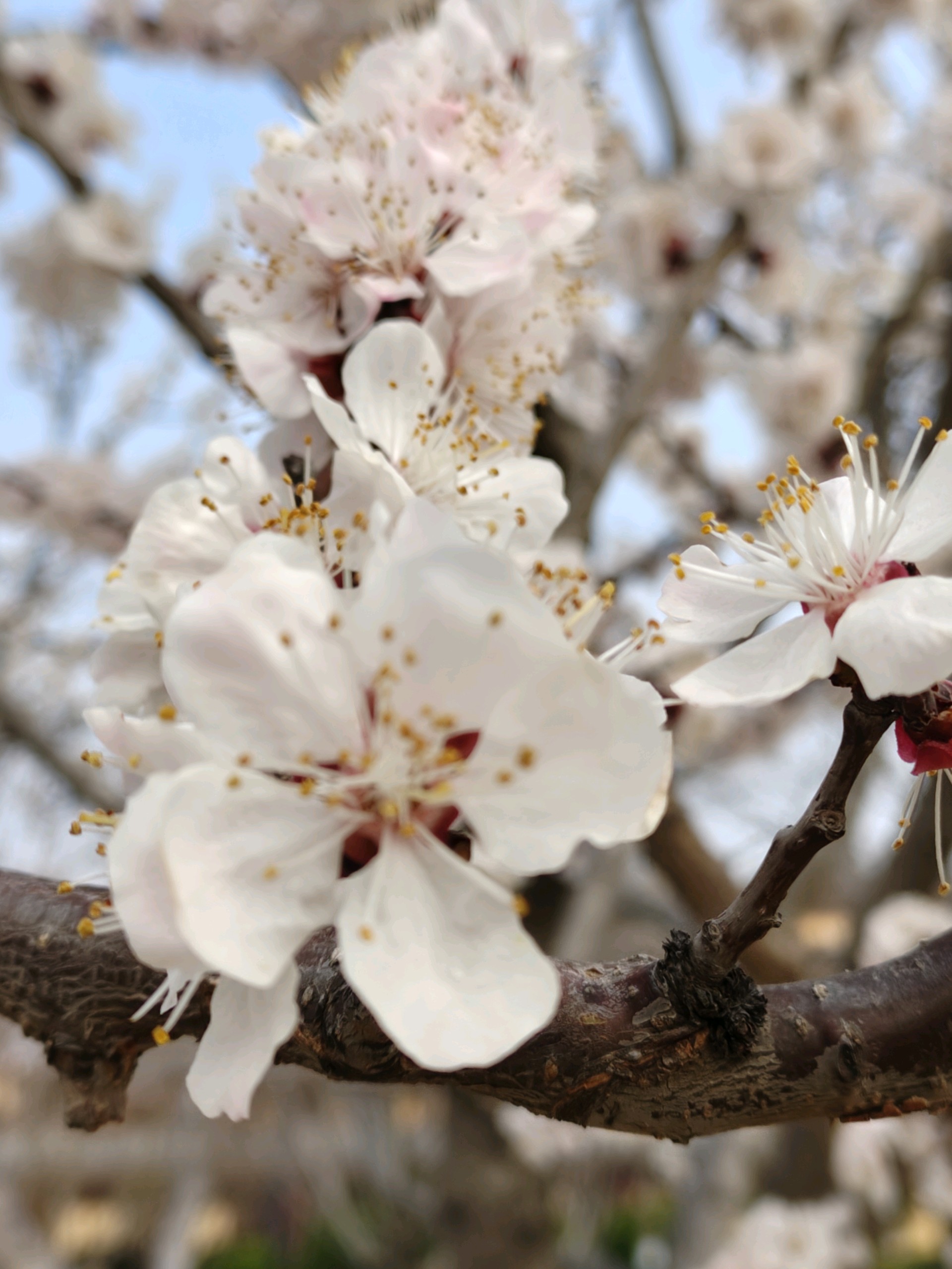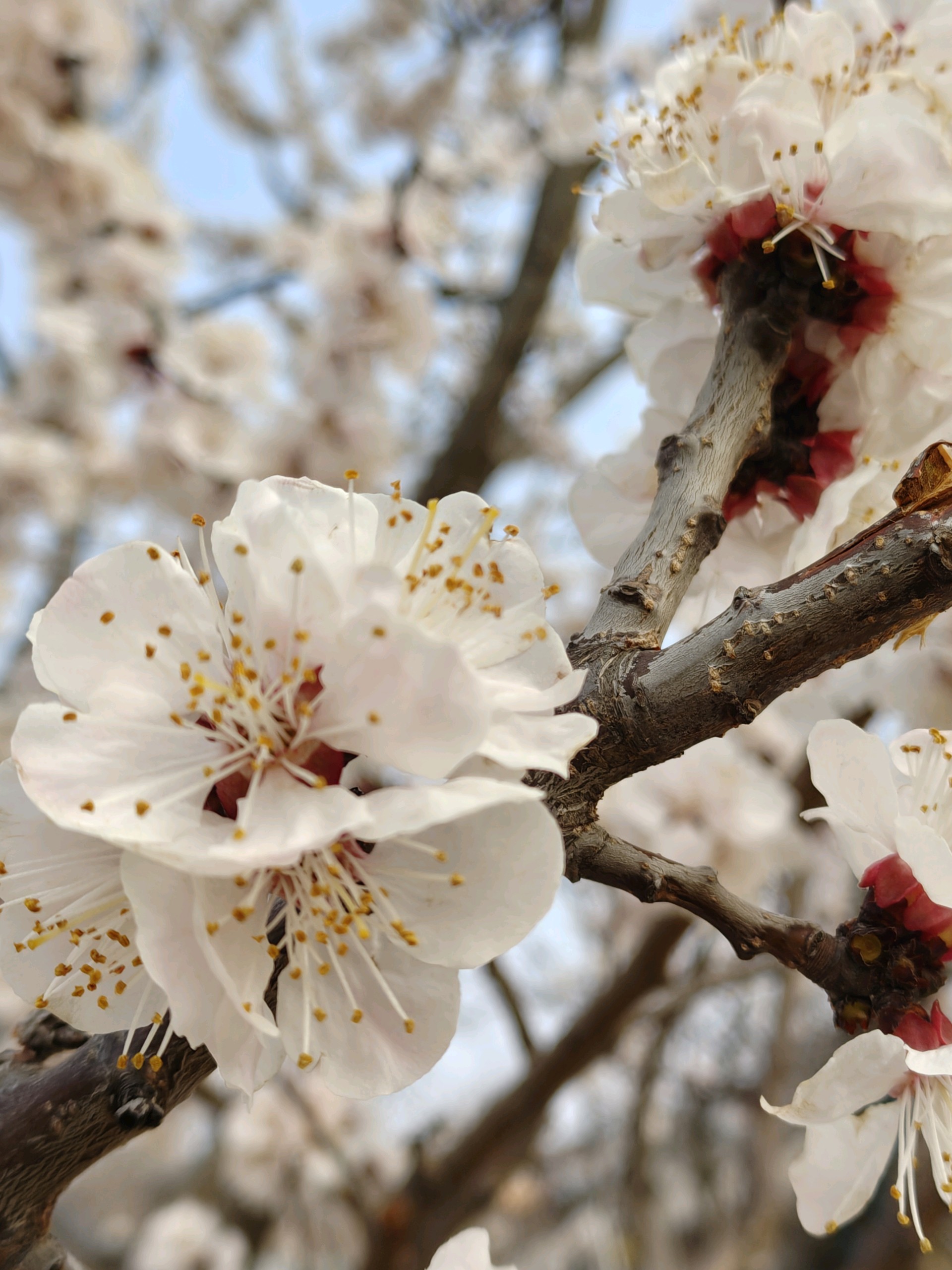满树的白,晕着淡淡的粉,像被春阳吻过的脸颊,细碎的瓣儿叠在虬劲的枝上,把冬日的枯瘦都揉成了温柔。