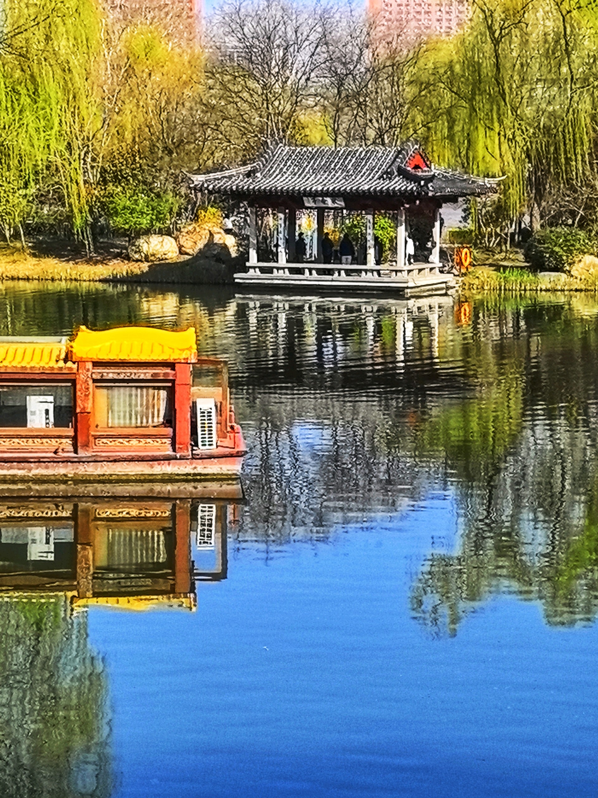 春风拂过济南的眉眼,石坊藏着“龙华相雨”的旧韵,明湖的碧波映着亭台楼阁,连翘与垂柳把春日染成了金黄与嫩绿。红廊黛瓦间,是老济南的烟火与诗意,一步一景,皆是温柔的人间三月天。