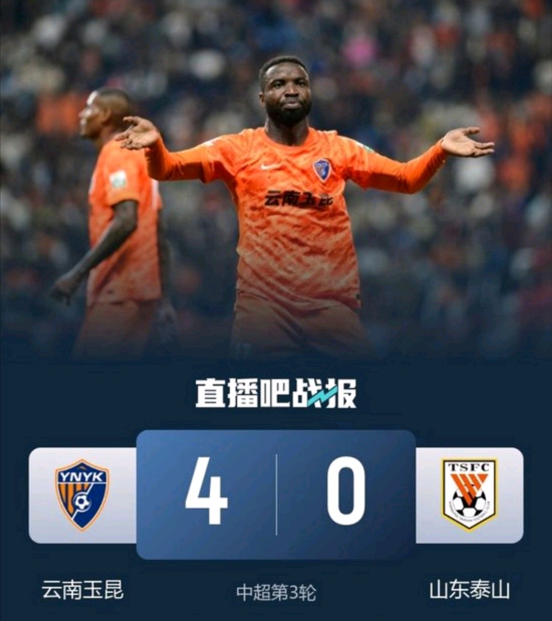 昨晚的中超对决,山东泰山客场0-4不敌云南玉昆,爆出超级冷门。云南开局闪击、半场三球打崩泰山防线,泰山攻防混乱、毫无章法,多次失误送机会。下半场谢文能恶意蹬踏直红离场,球队状态跌至谷底,惨败暴露多重问题,亟需深刻反思整改。(常青看球)