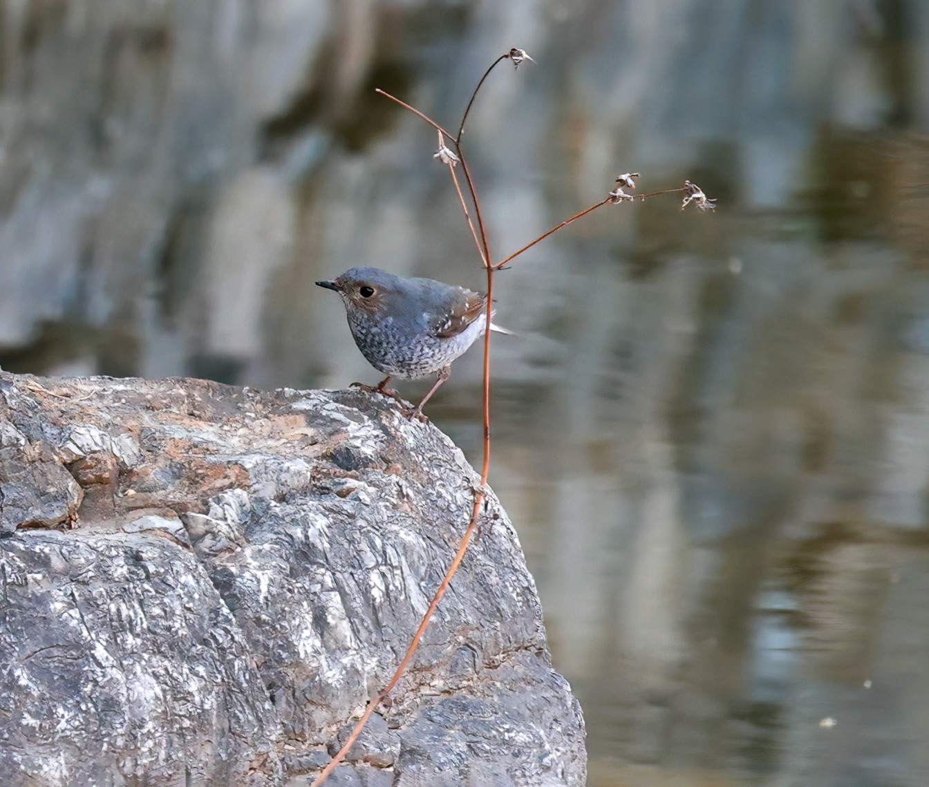 红尾水鸲雌鸟有着独特的素雅之美红尾水鸲雌鸟与雄鸟鲜艳的栗红色尾巴不同,雌鸟整体呈优雅的灰蓝色或灰褐色。最显著的特征是尾基部和臀部的白色,以及翅膀上密布的白色圆点斑,像撒了层细雪。它们通常单独或成对活动在清澈的山溪、河谷,喜欢站在水中的石头上,不停上下扇动尾巴。雌鸟虽没有雄鸟那般夺目,却以低调的斑点羽衣诠释了溪流间的灵动。